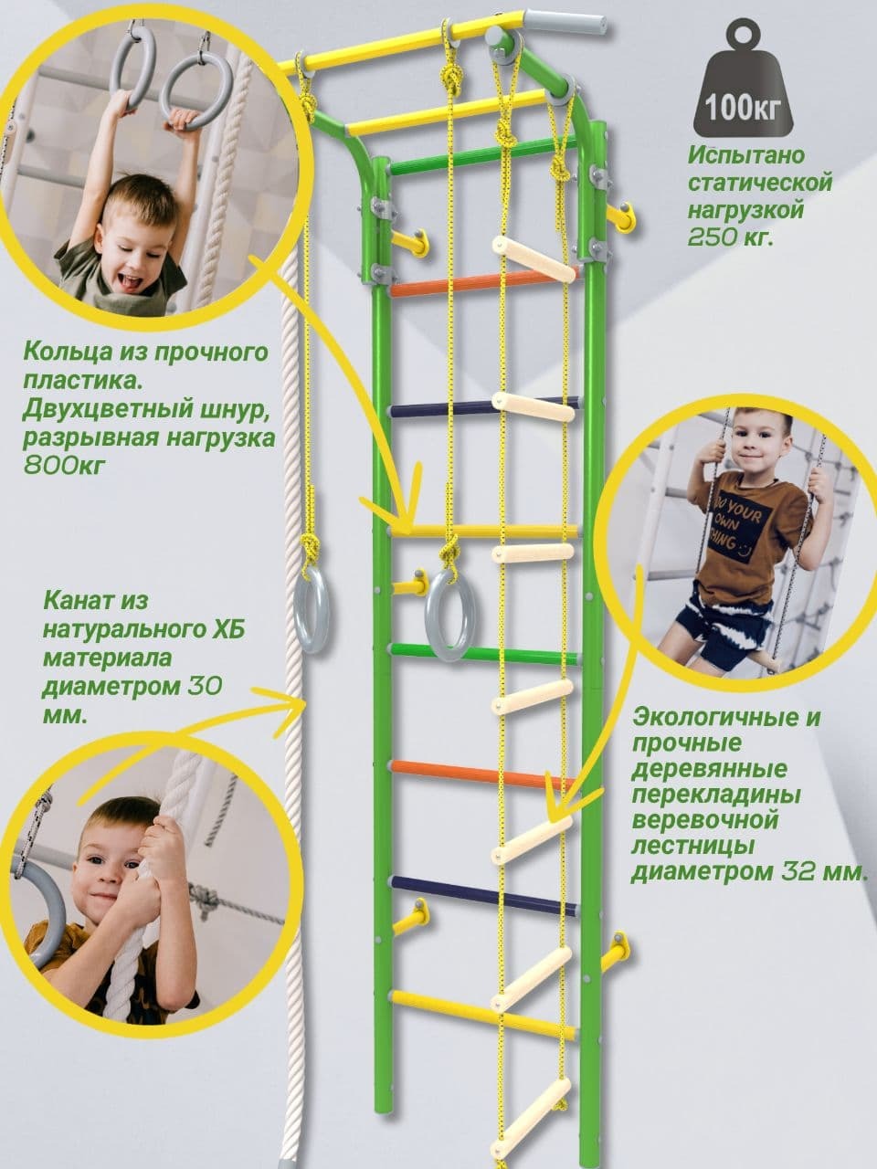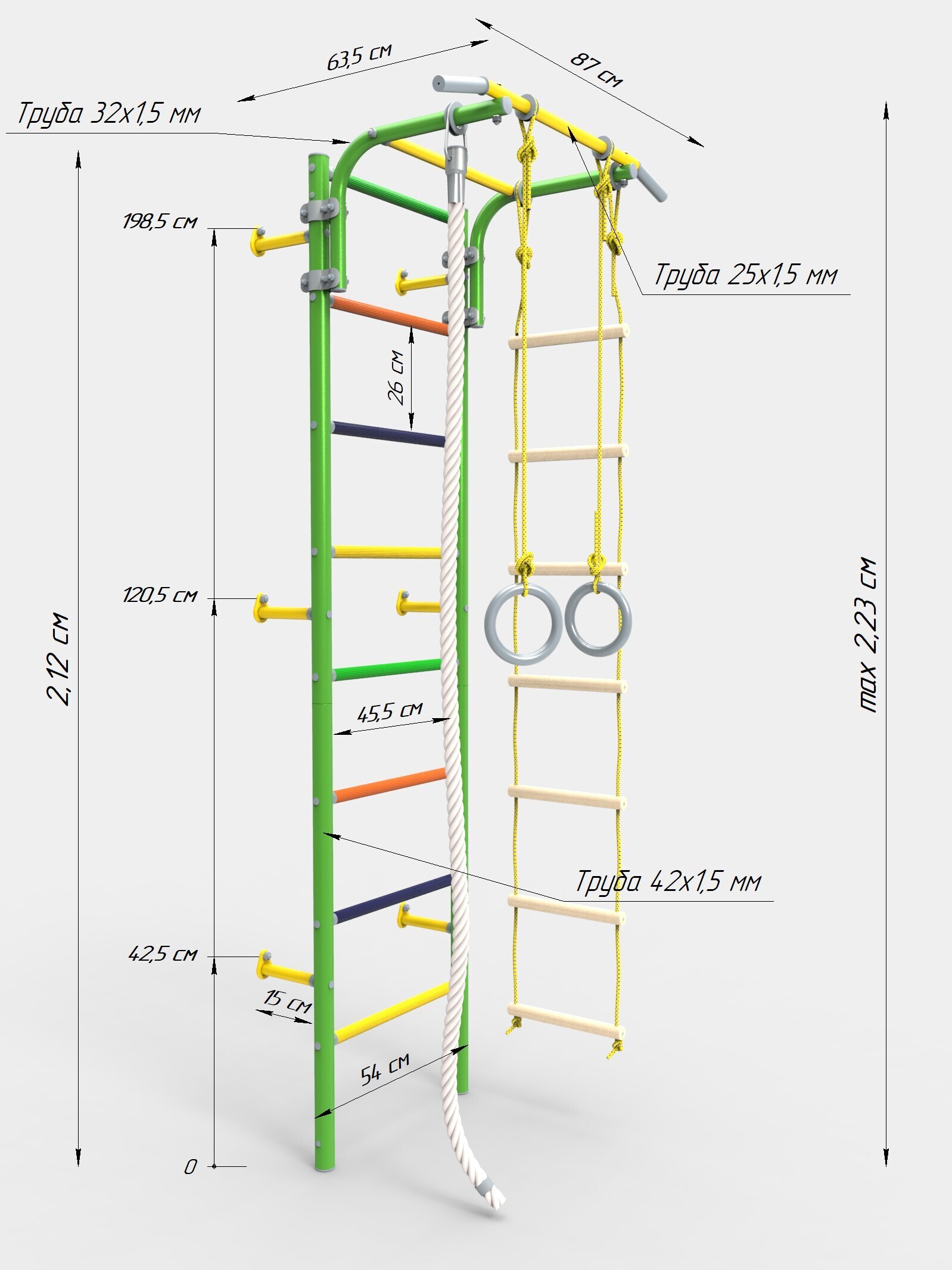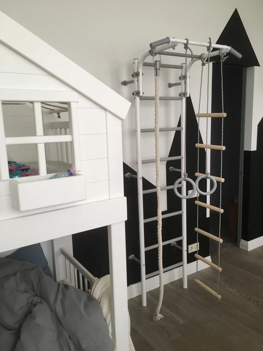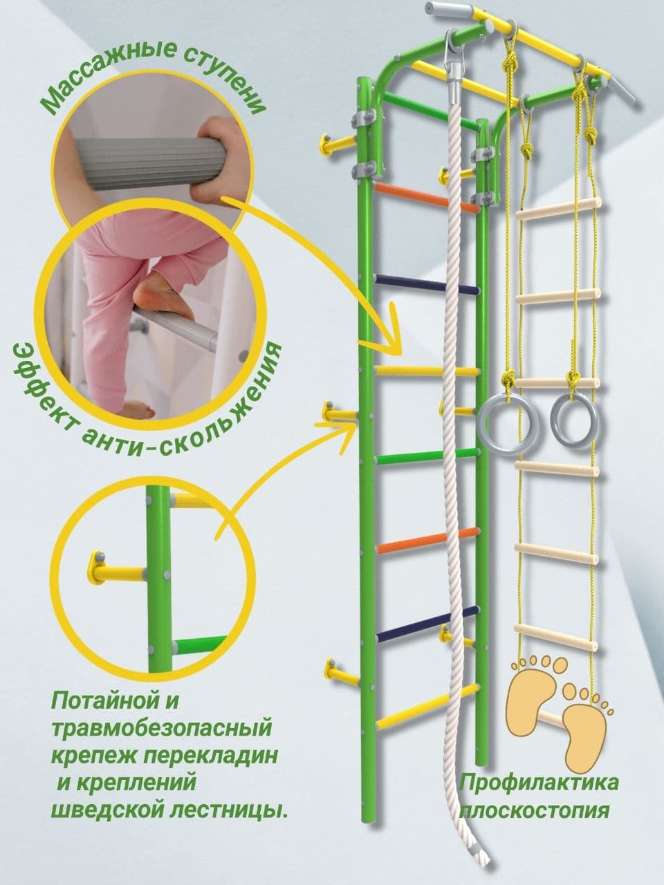 Турник настенный с навесным оборудованием белый Лестница веревочная, канат, кольца гимнастические