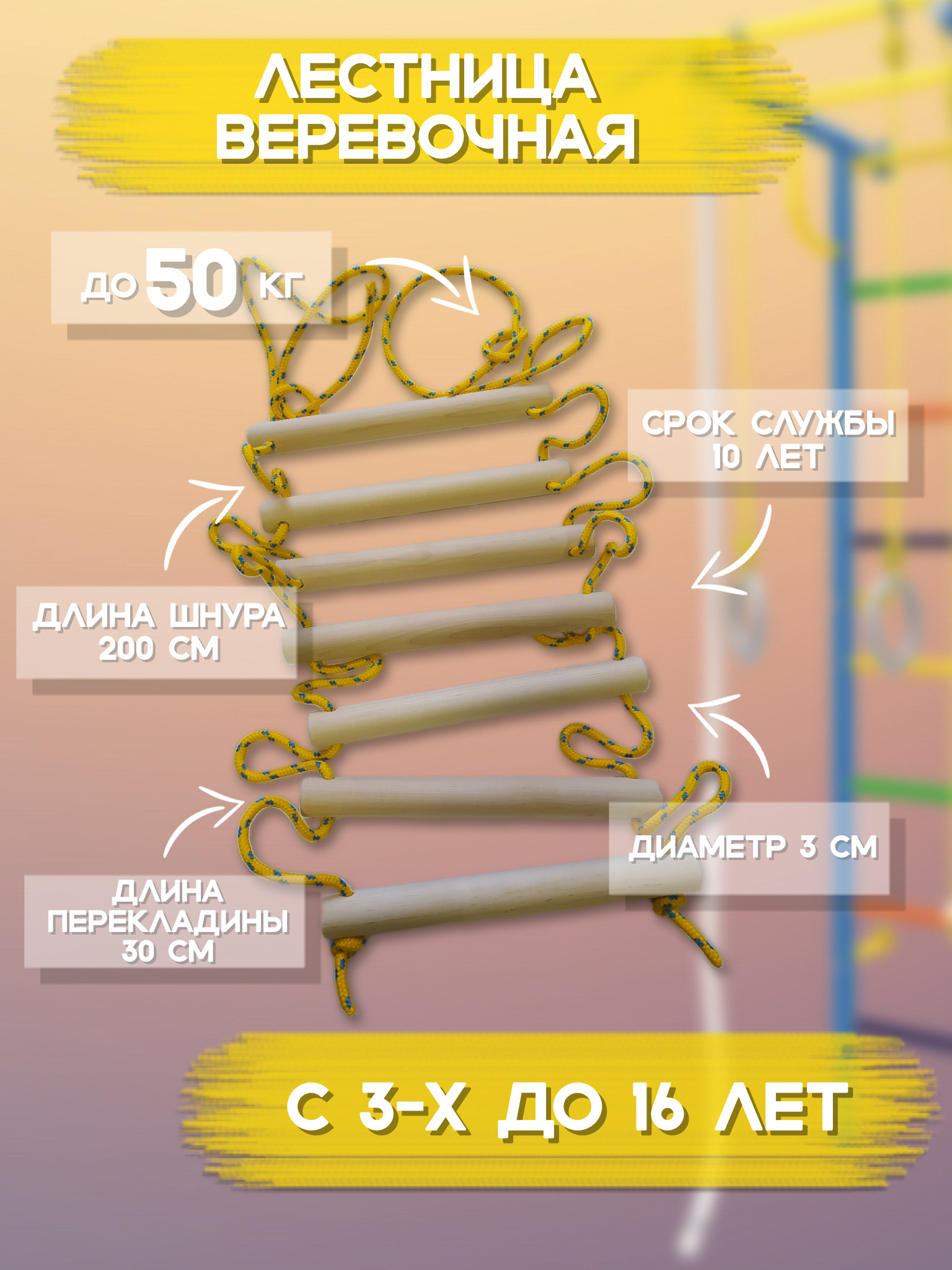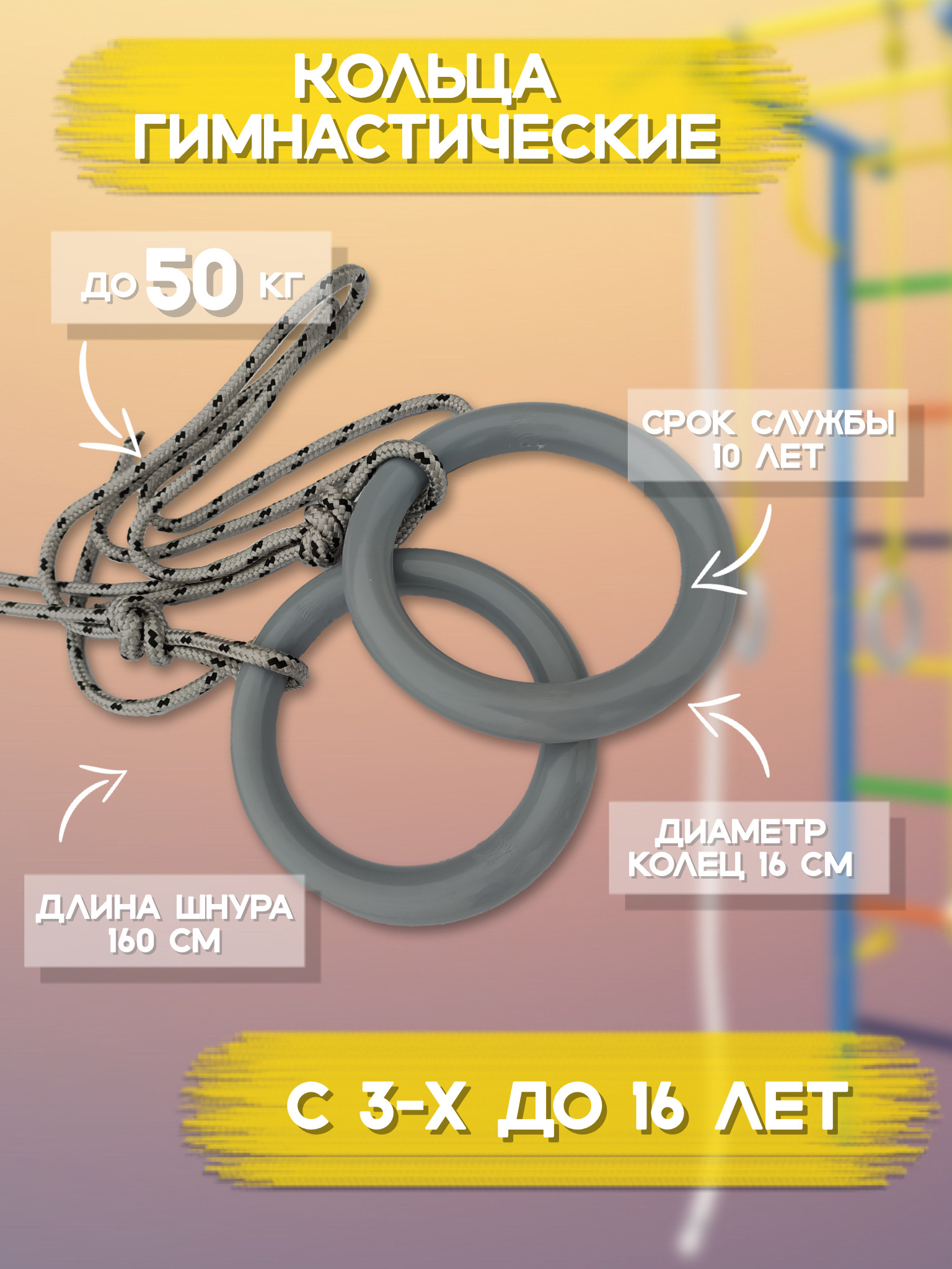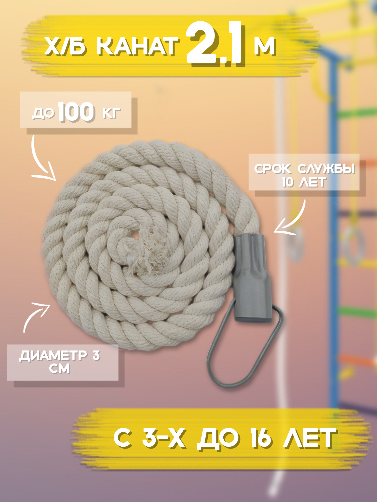 Канат Детский для Шведской Стенки ROKIDS / Хлопчатобумажный - белый / гильза-кольцо - серый