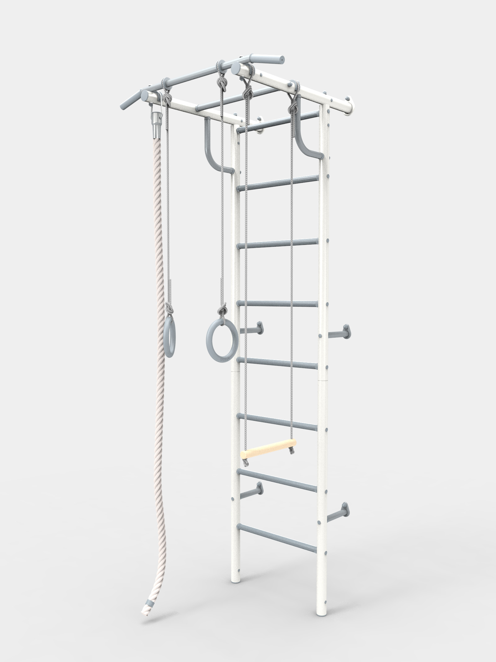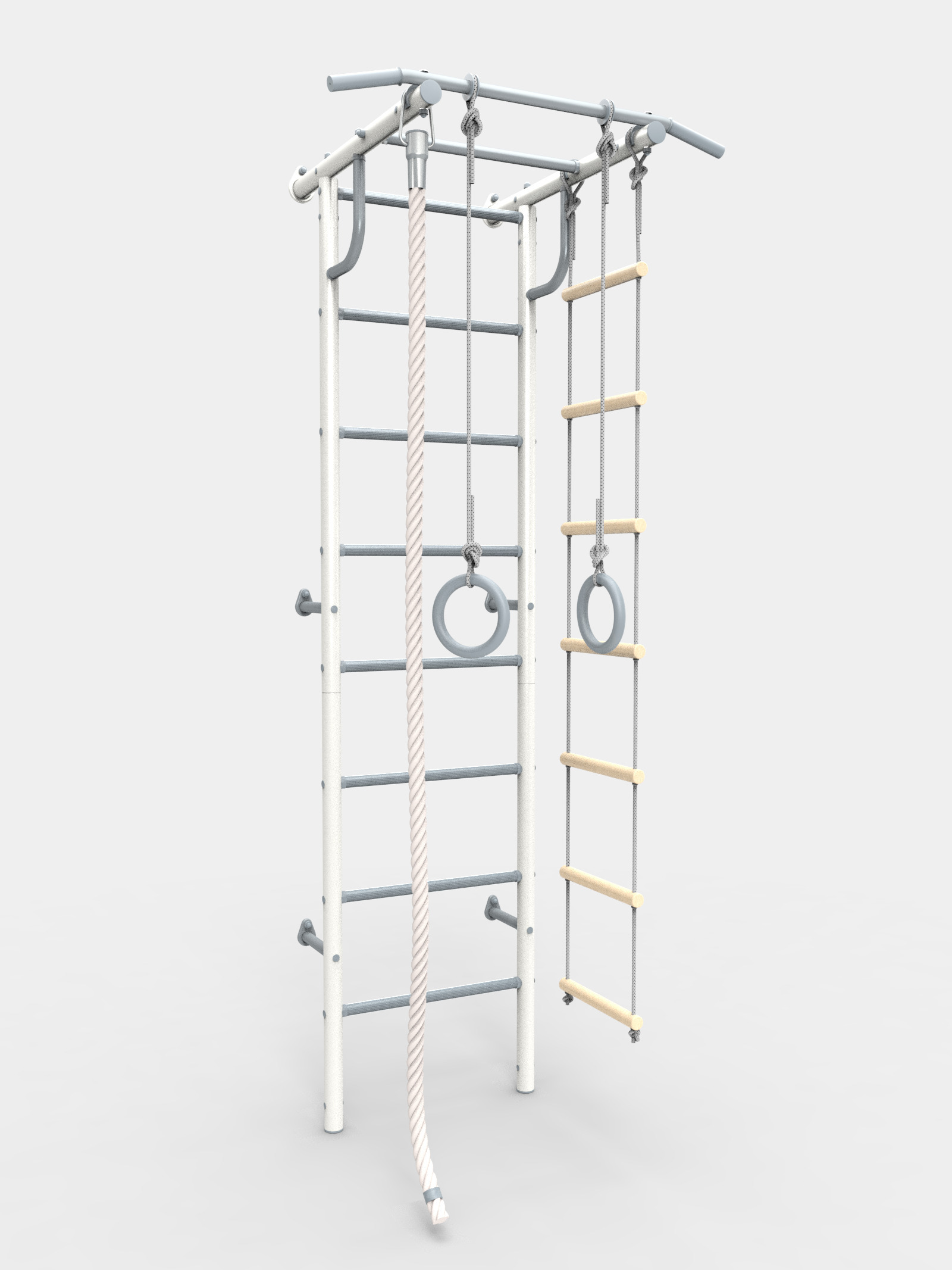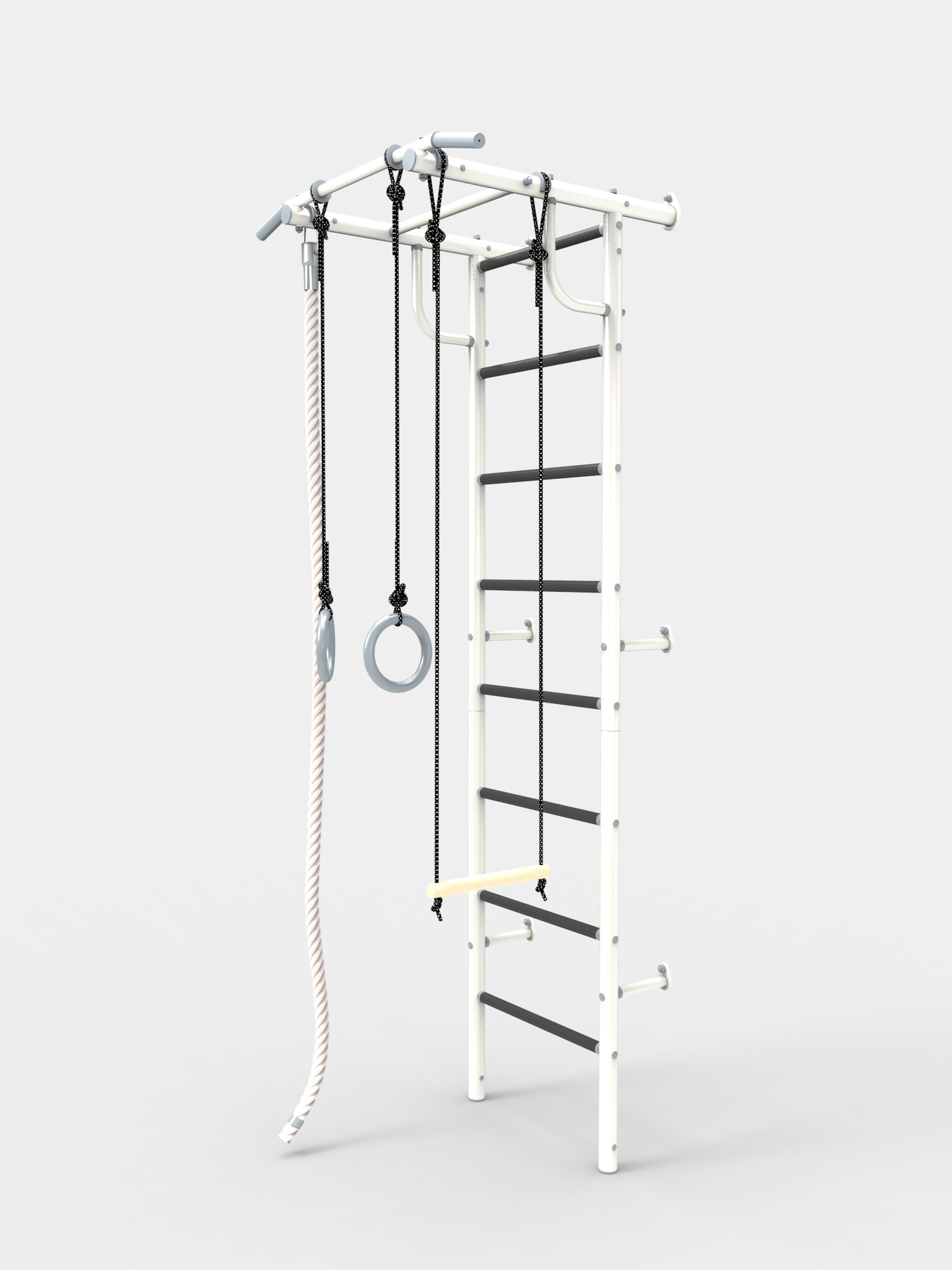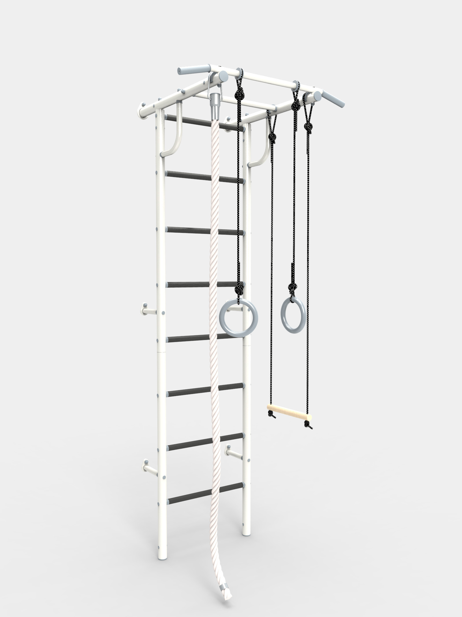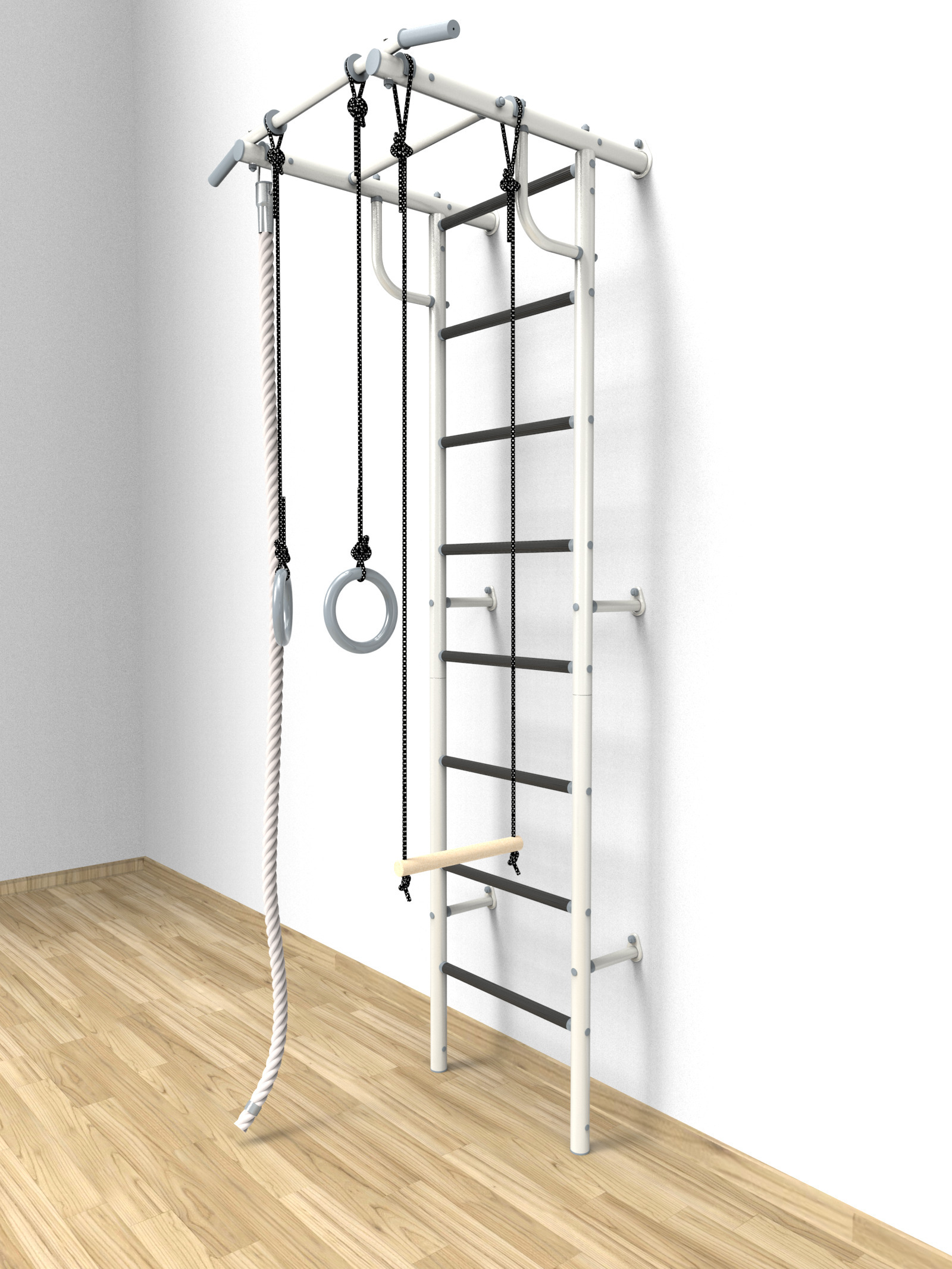 Турник настенный с навесным оборудованием белый Лестница веревочная, канат, кольца гимнастические