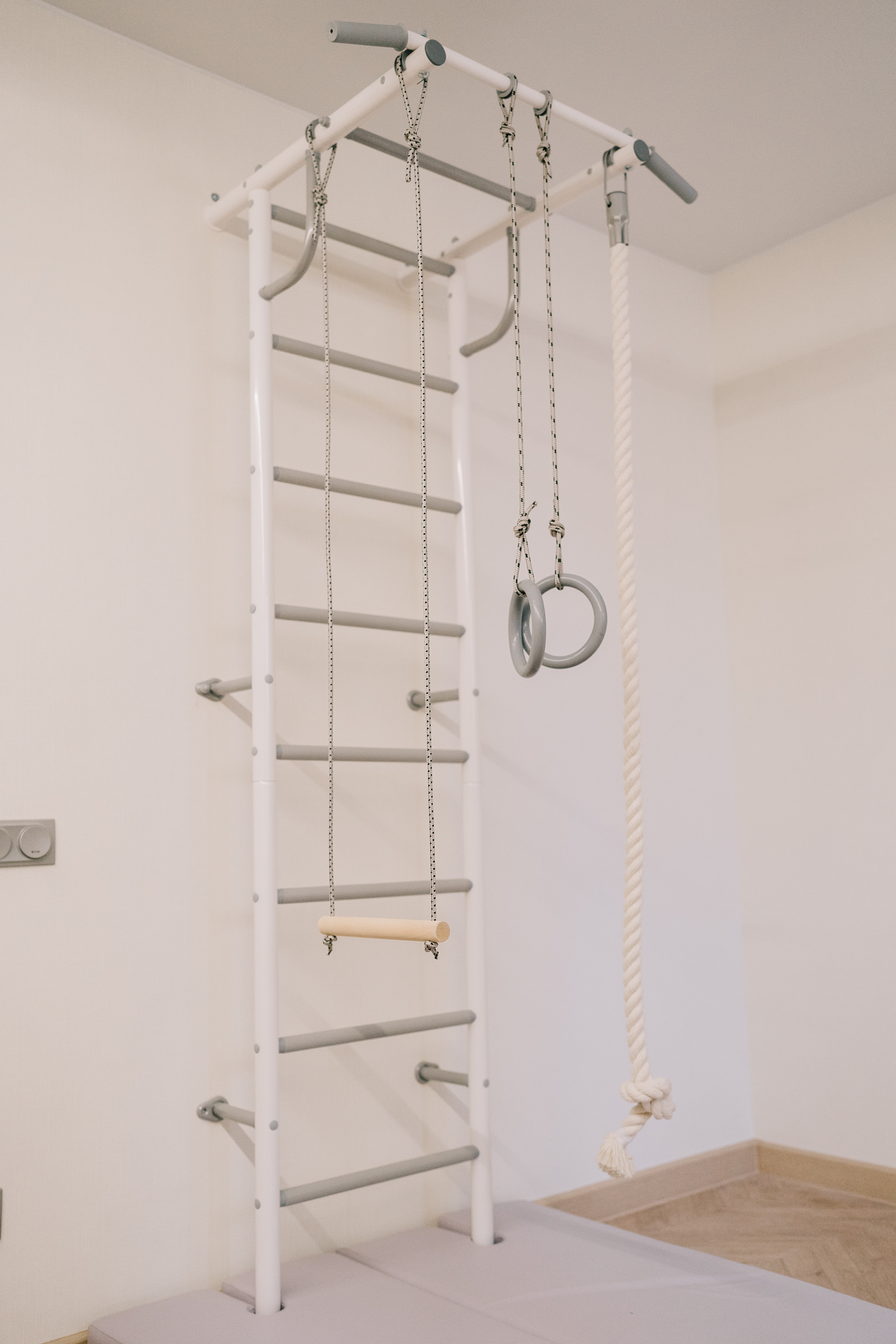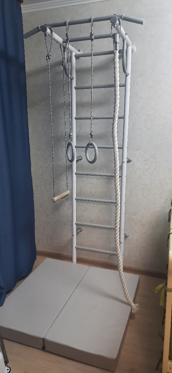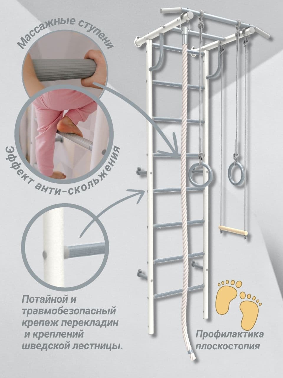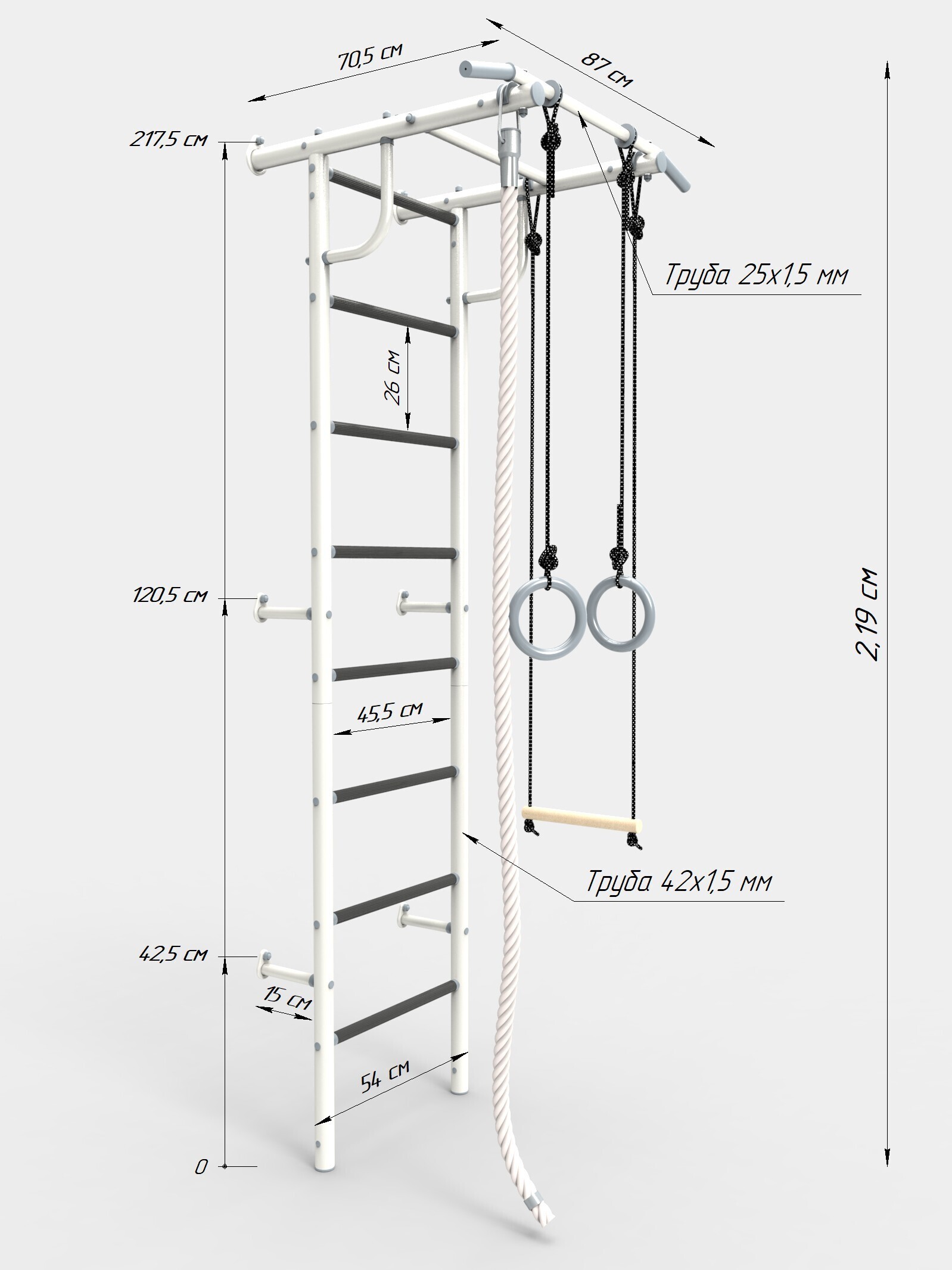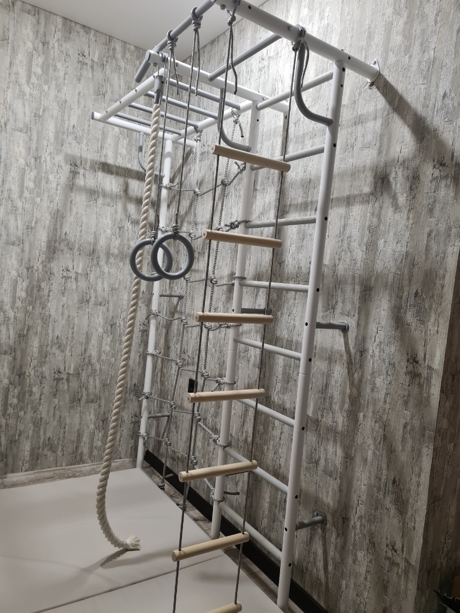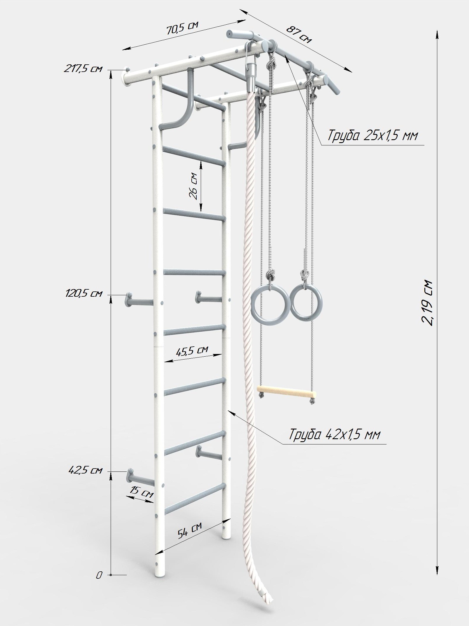 Турник настенный с навесным оборудованием белый Лестница веревочная, канат, кольца гимнастические