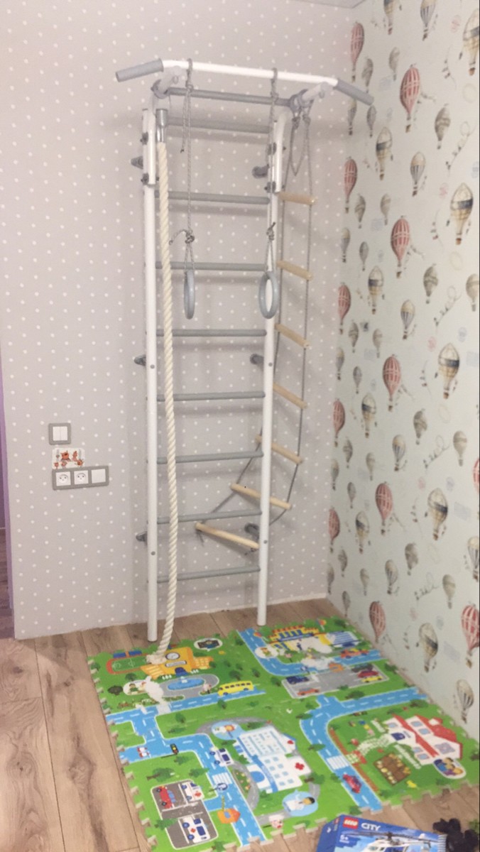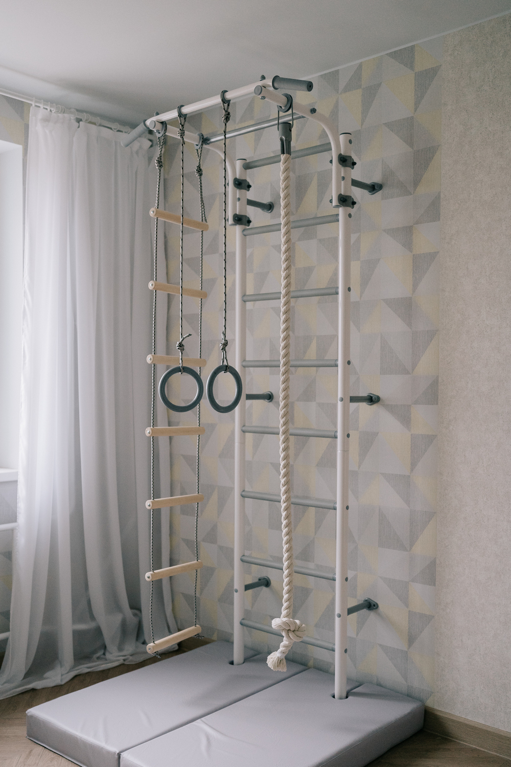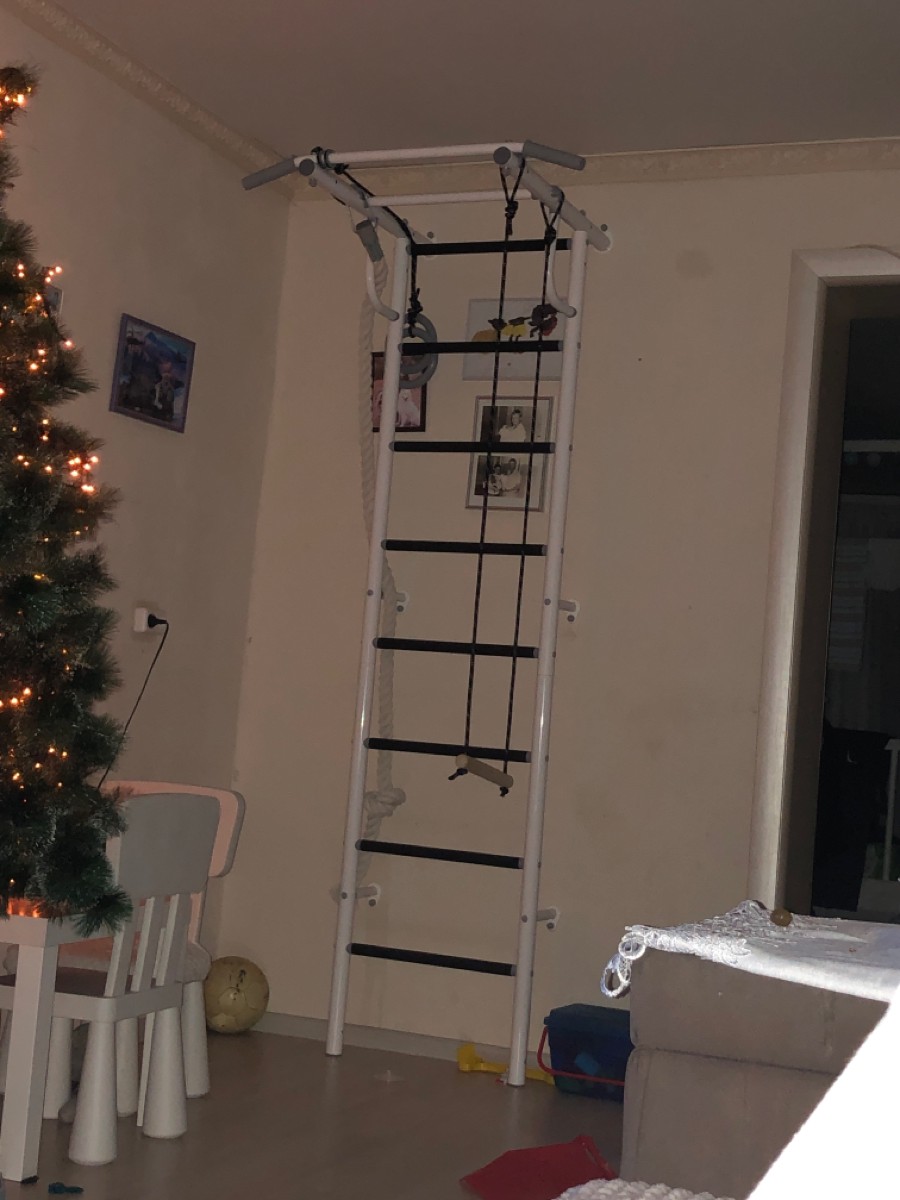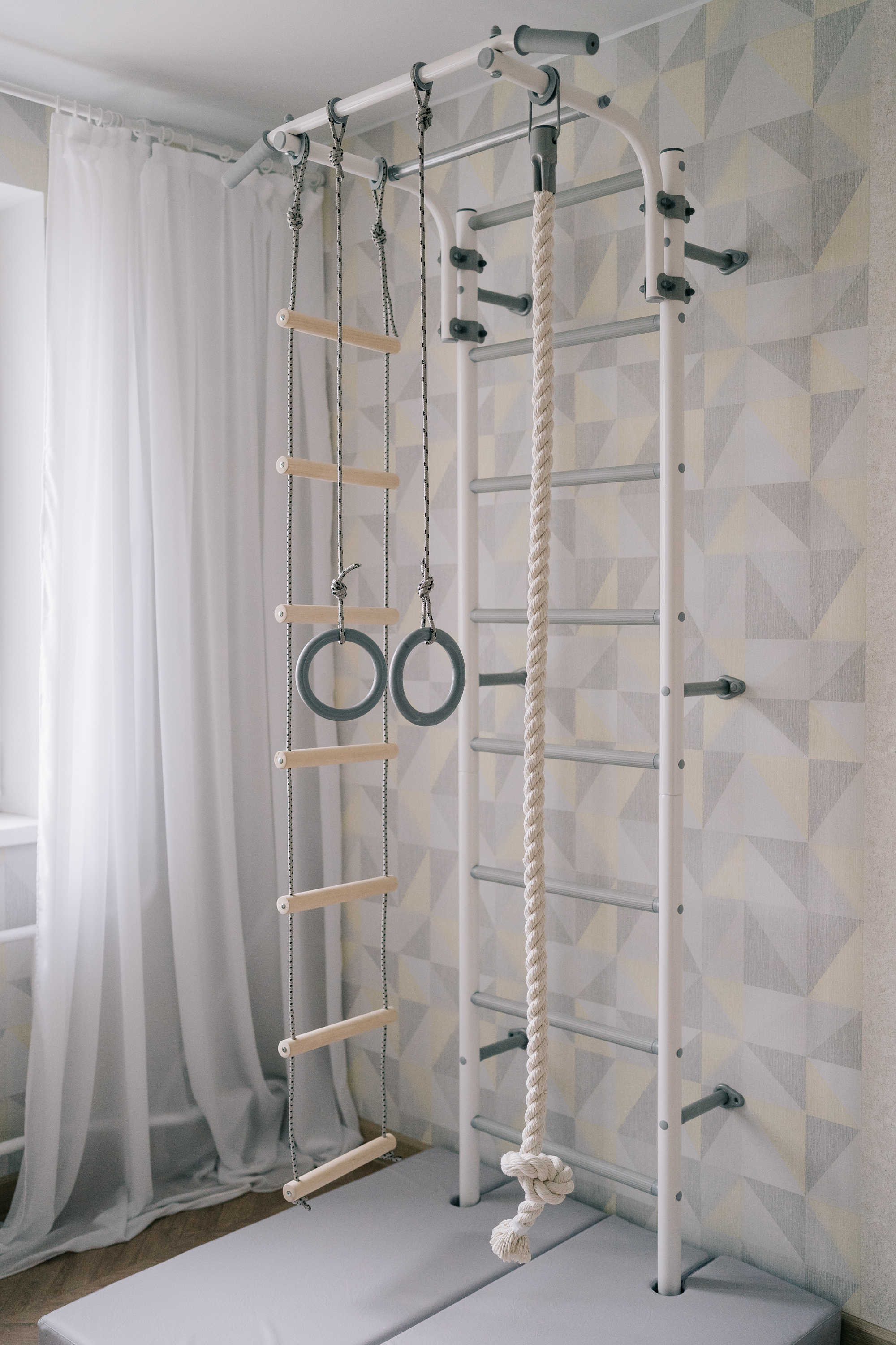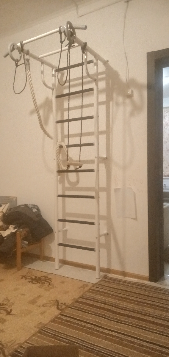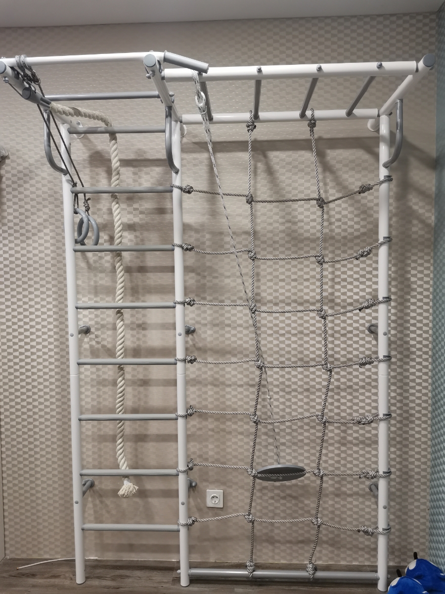 Турник настенный с навесным оборудованием белый Лестница веревочная, канат, кольца гимнастические
