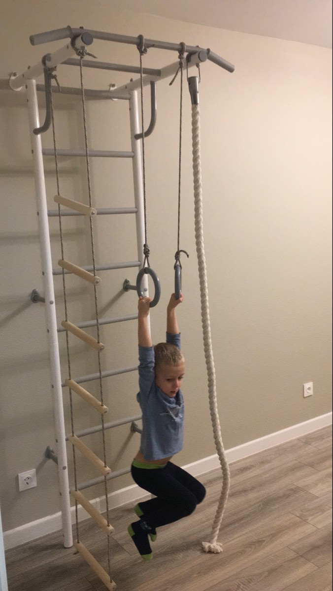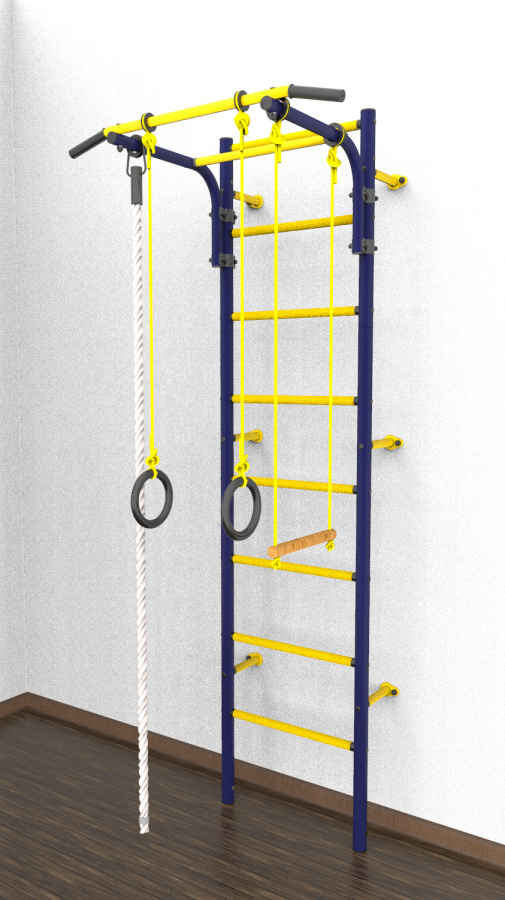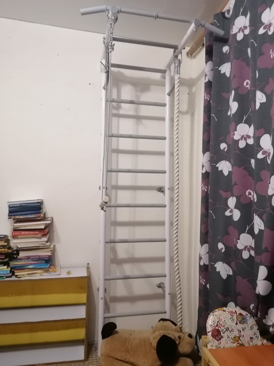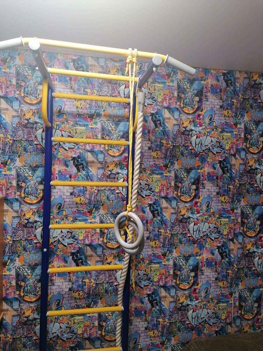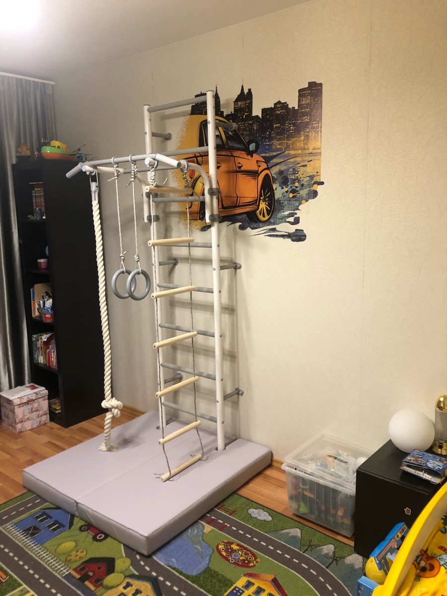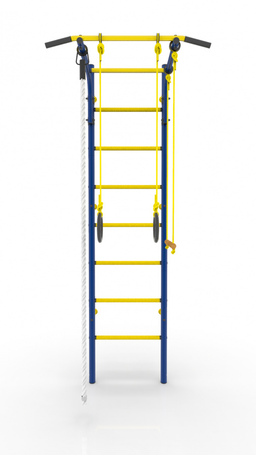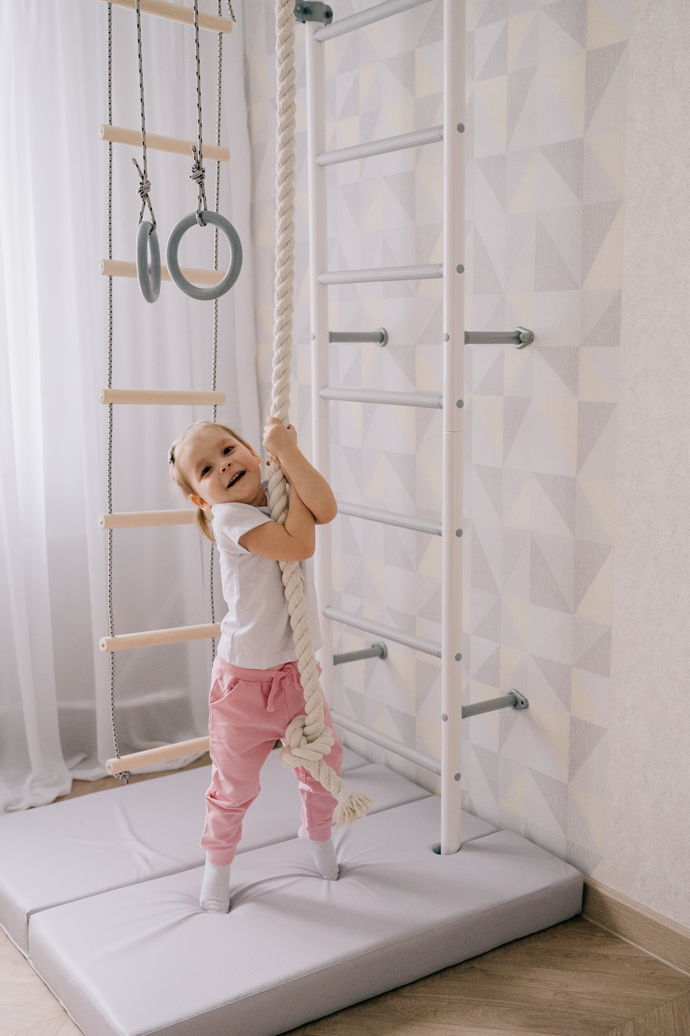 Турник настенный с навесным оборудованием белый Лестница веревочная, канат, кольца гимнастические