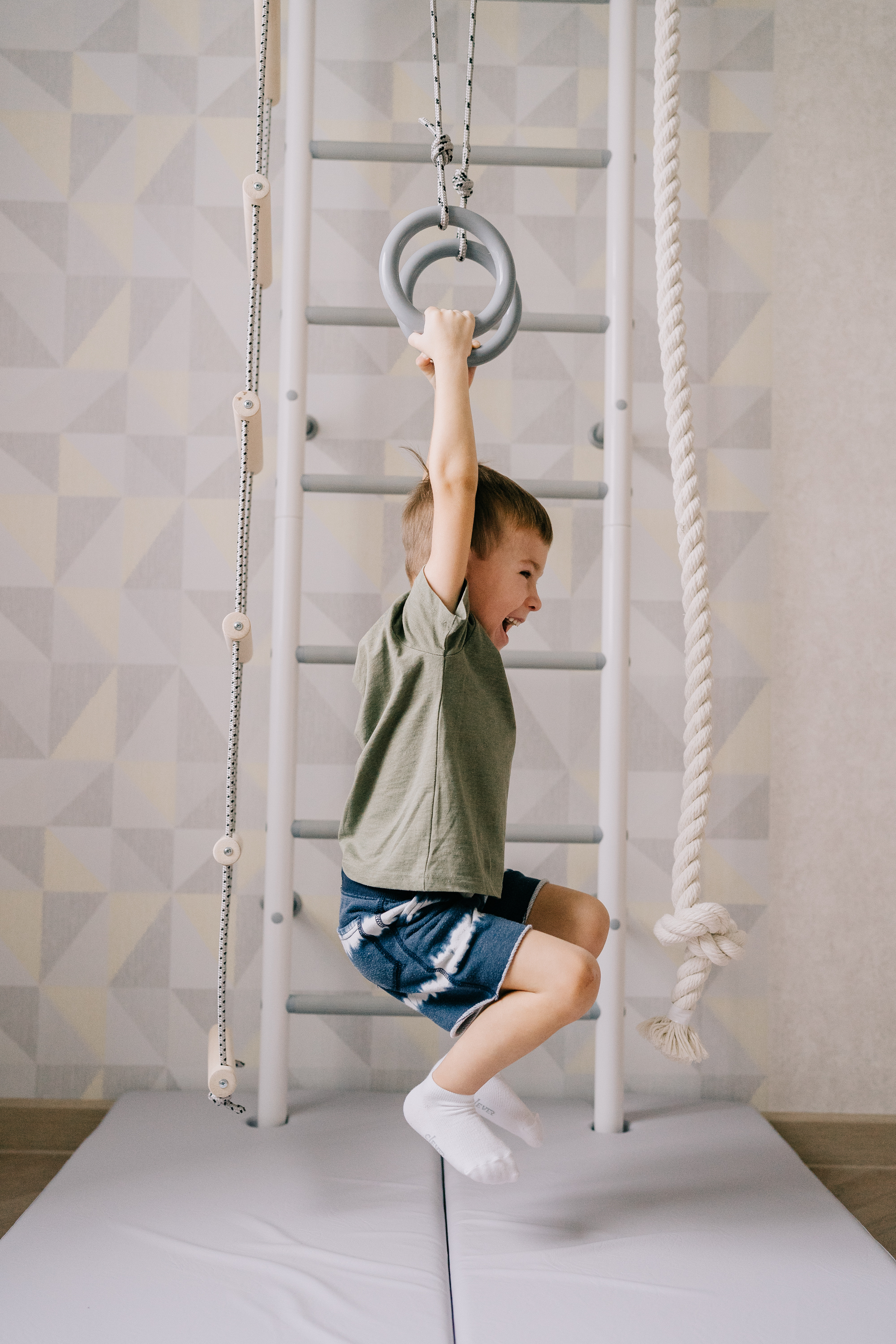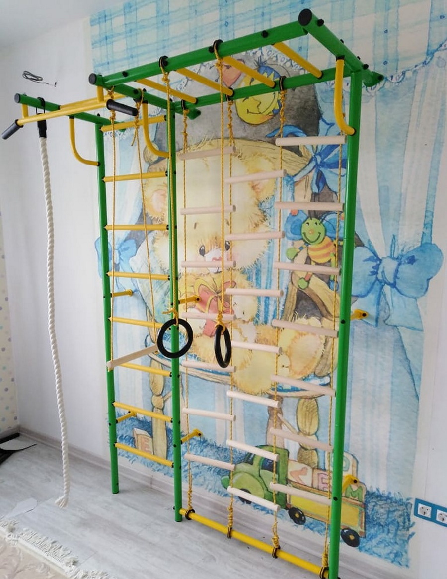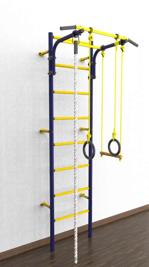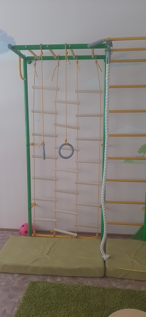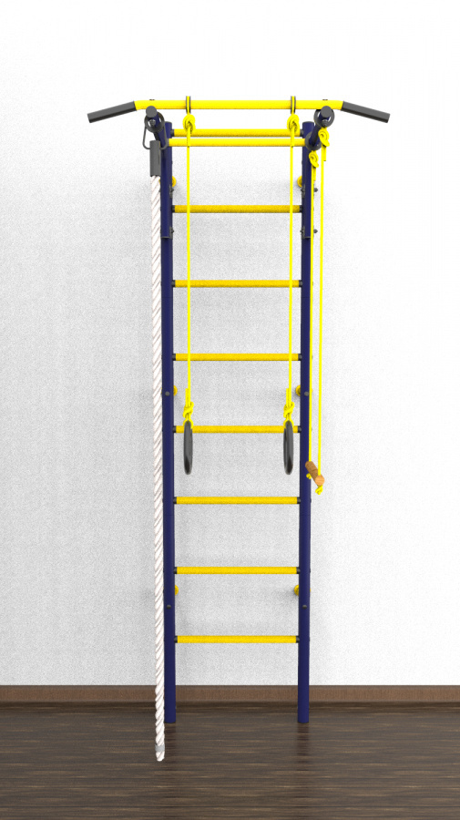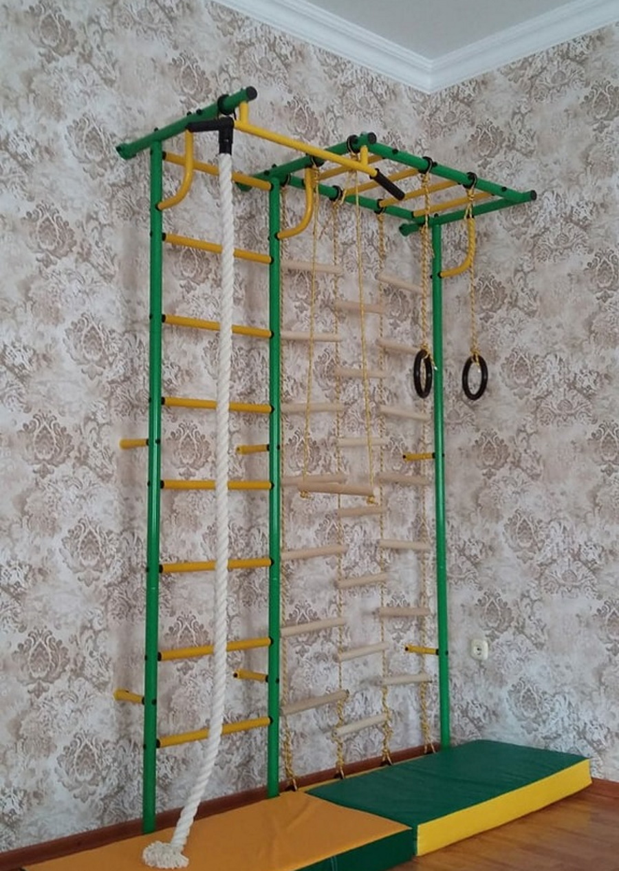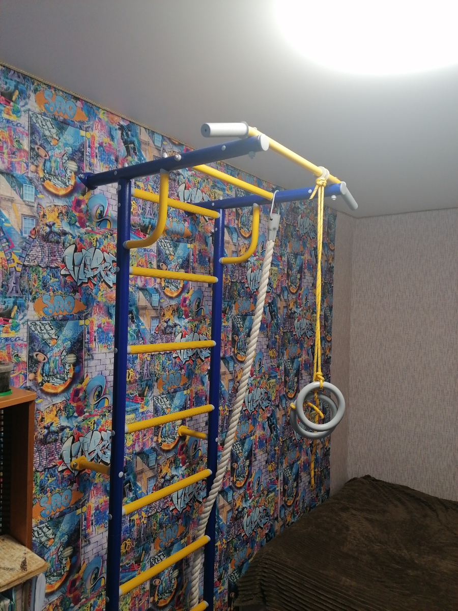 Турник настенный с навесным оборудованием белый Лестница веревочная, канат, кольца гимнастические