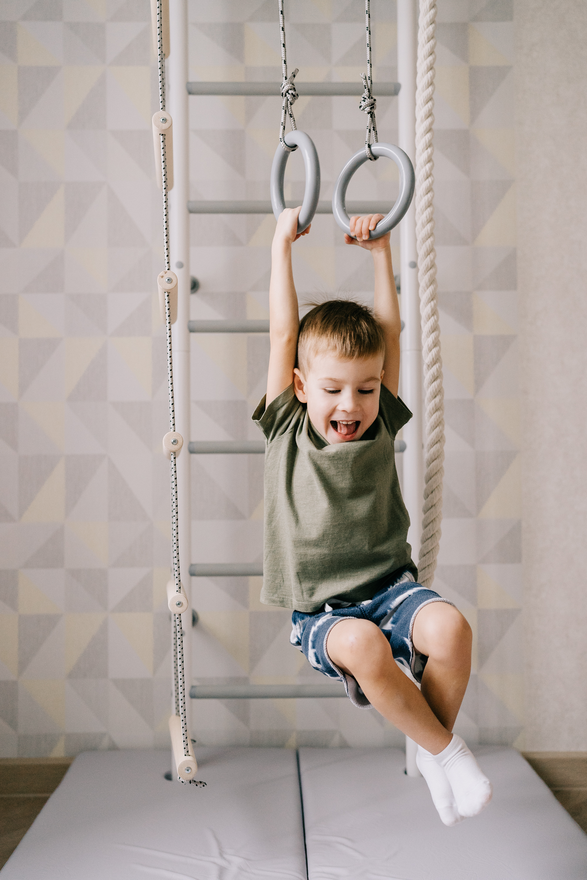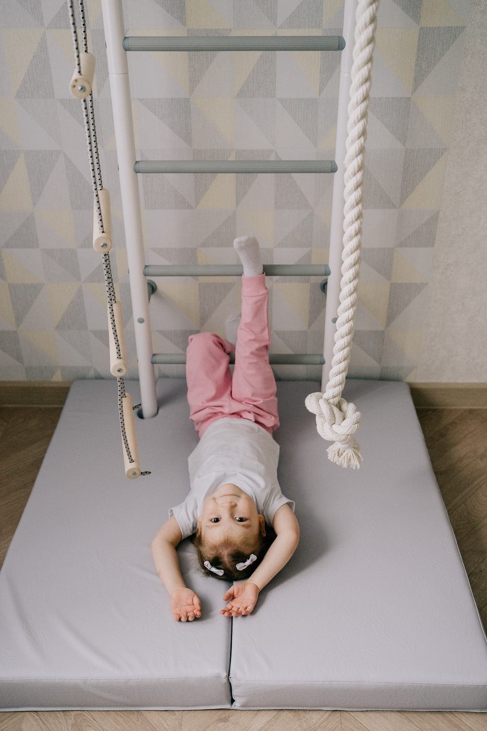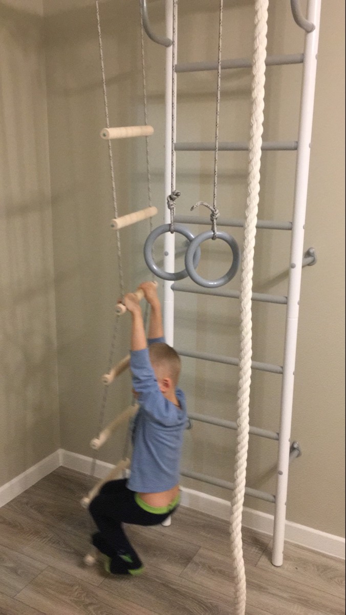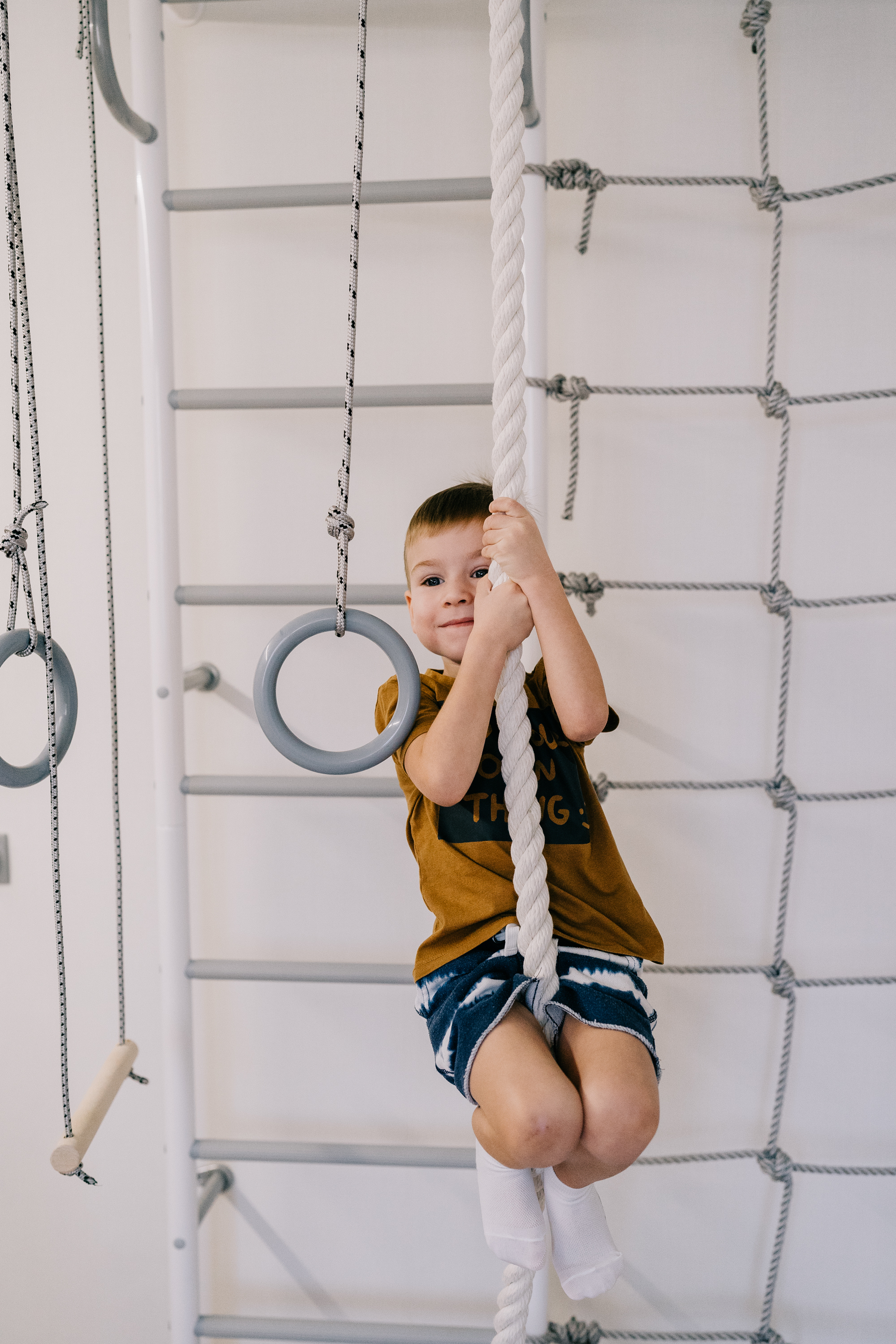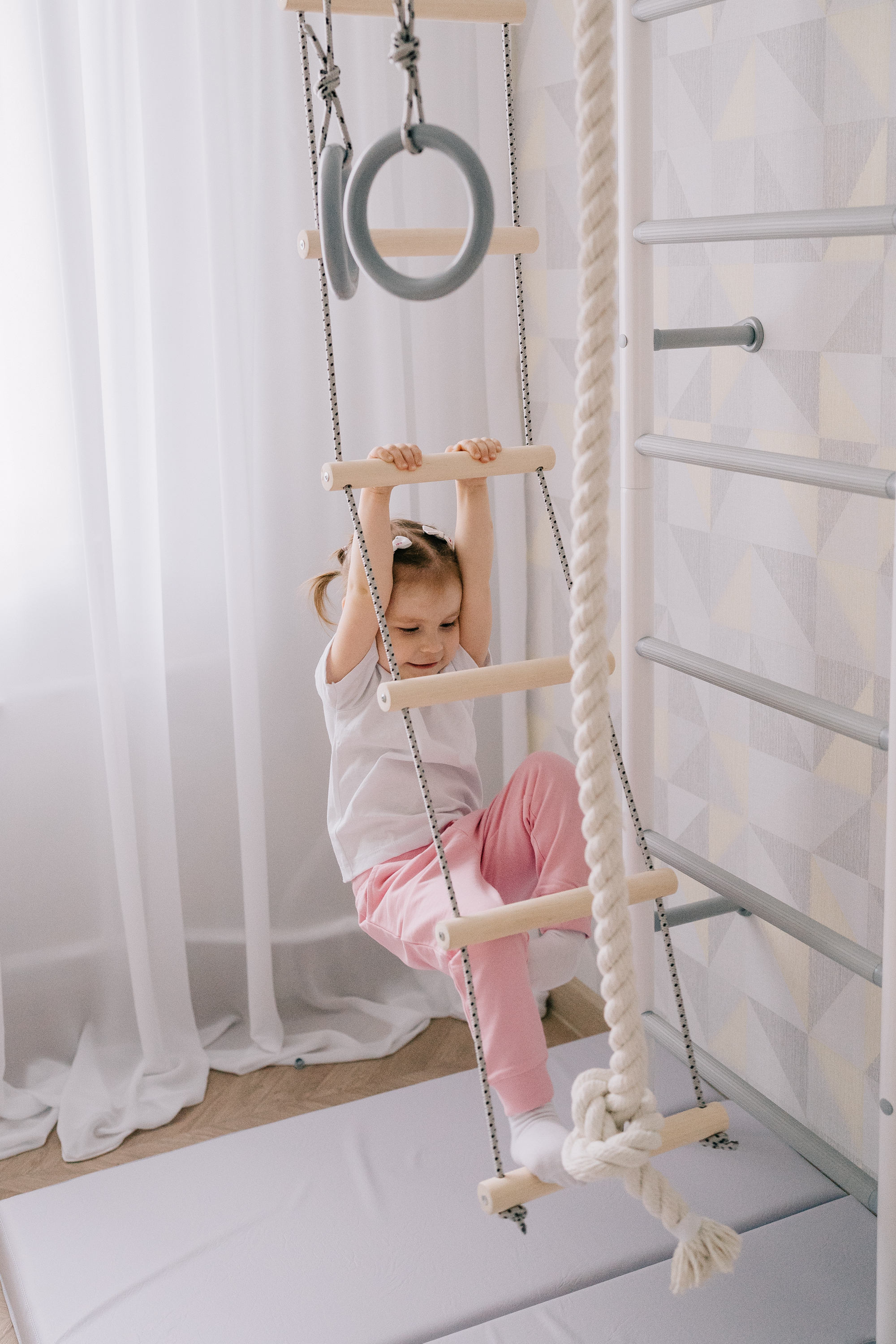 Турник настенный с навесным оборудованием белый Лестница веревочная, канат, кольца гимнастические