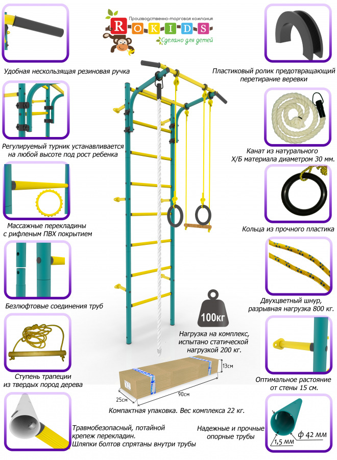 Доп. деревянная сетка с рукоходом Rokids, цвет зелено-желтый