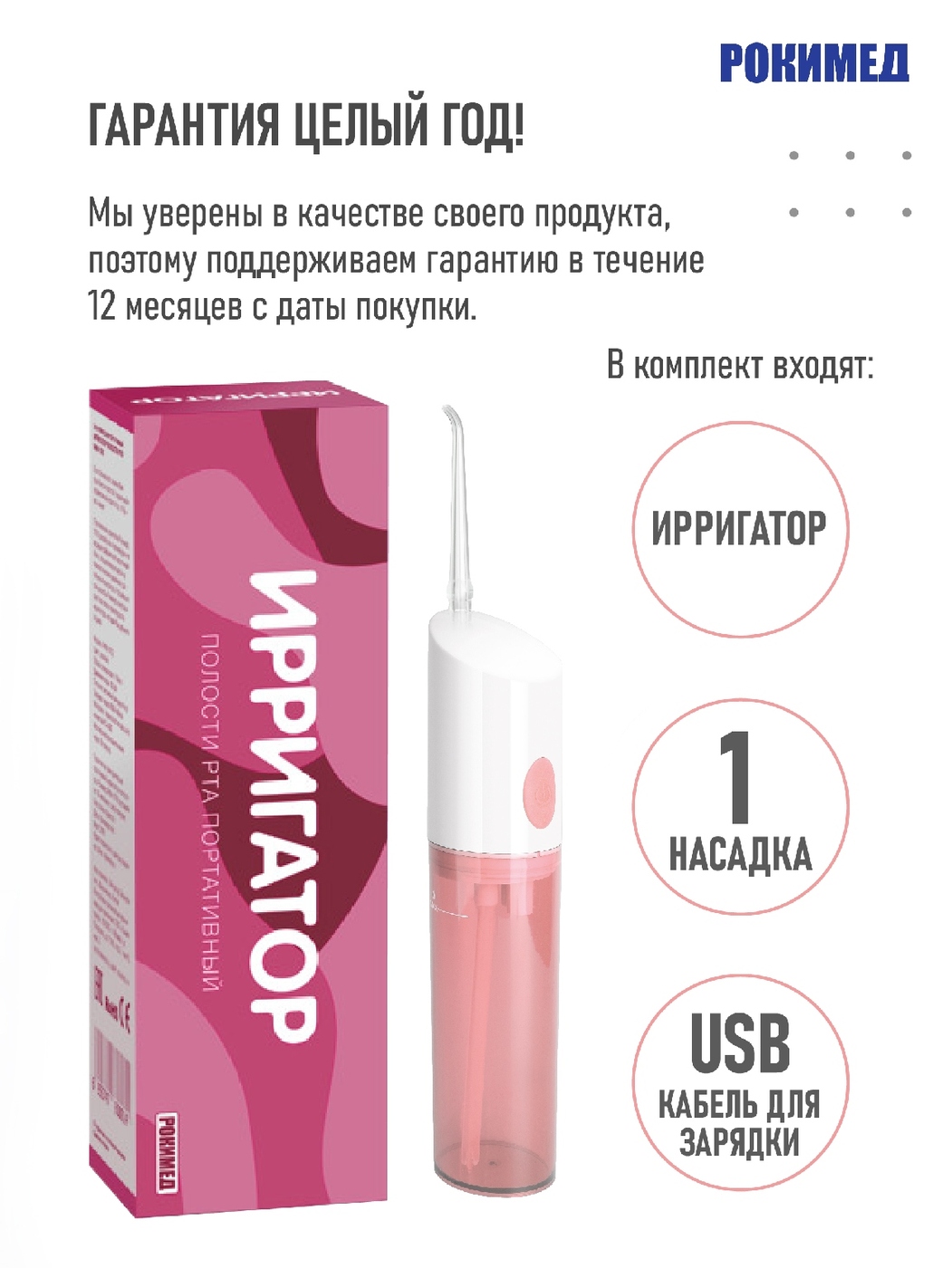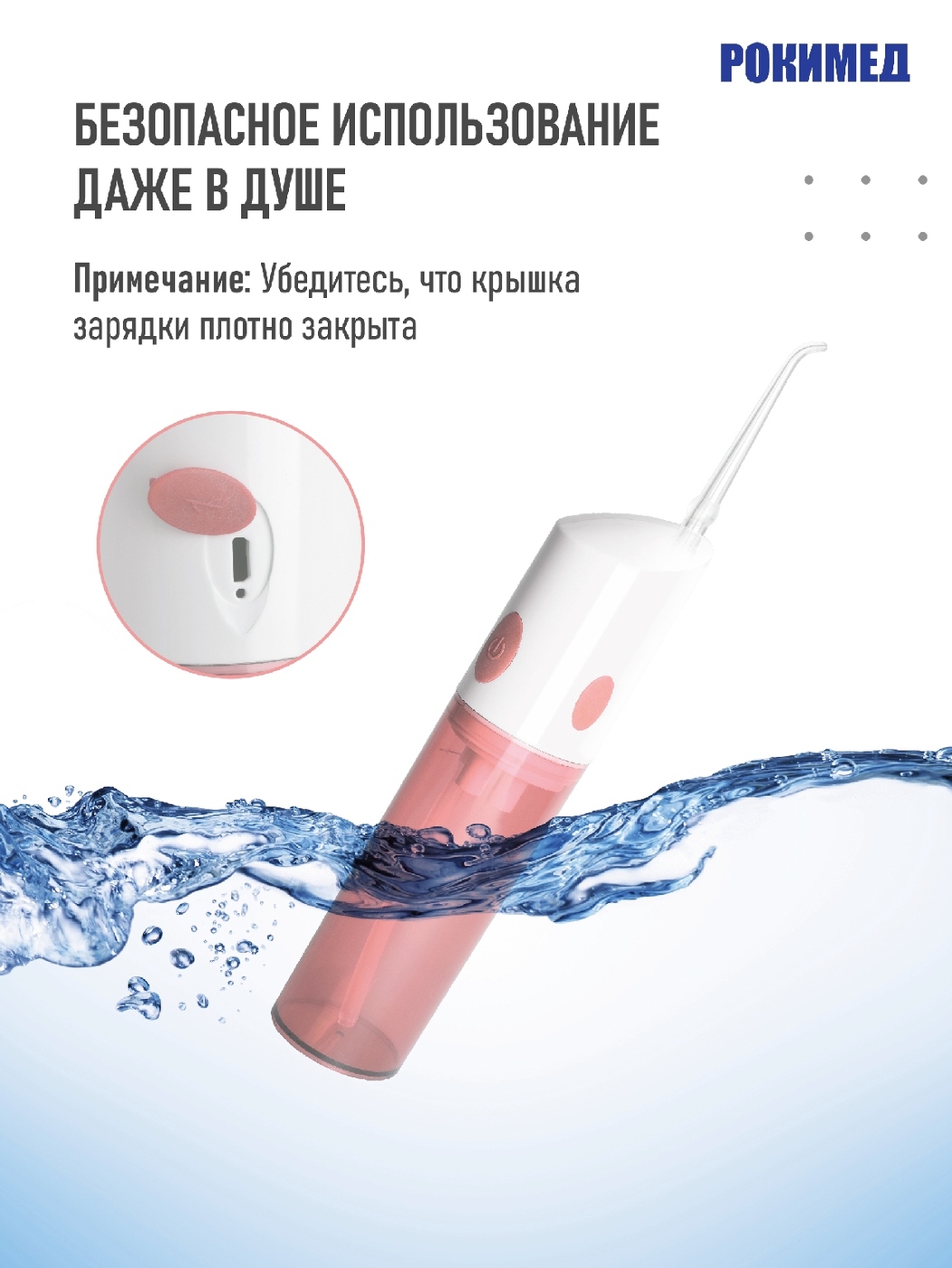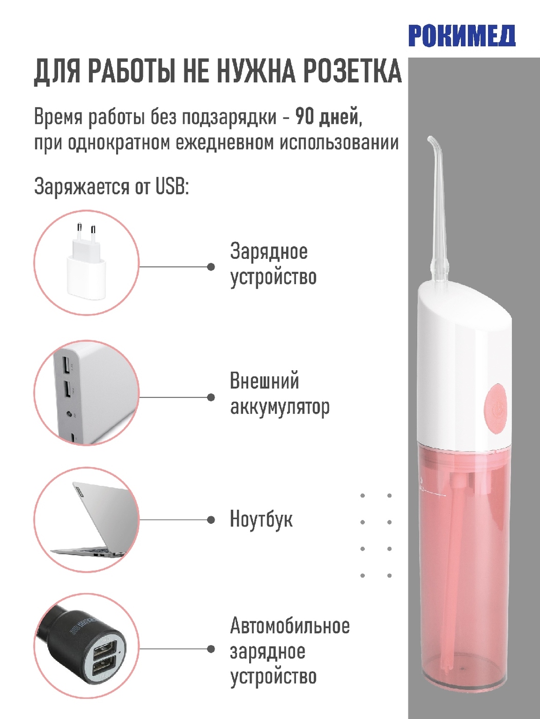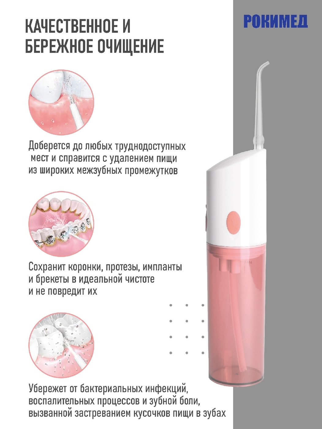 Рокимед/Портативный электрический ирригатор RKM-1702 розовый.