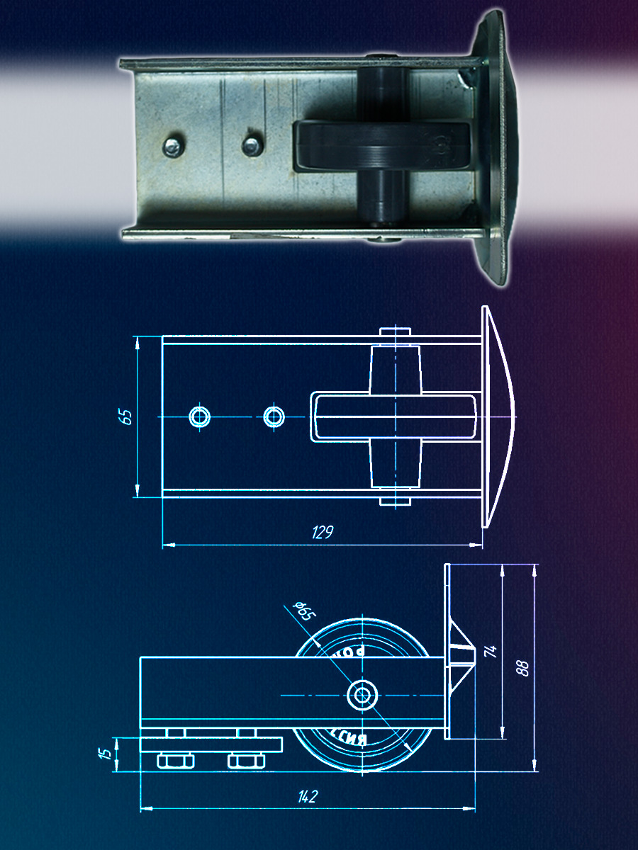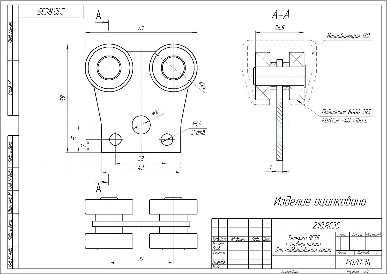 Комплектующие для ворот. Тележка с отверстиями для подвешивания груза Ролтэк 210.RC35