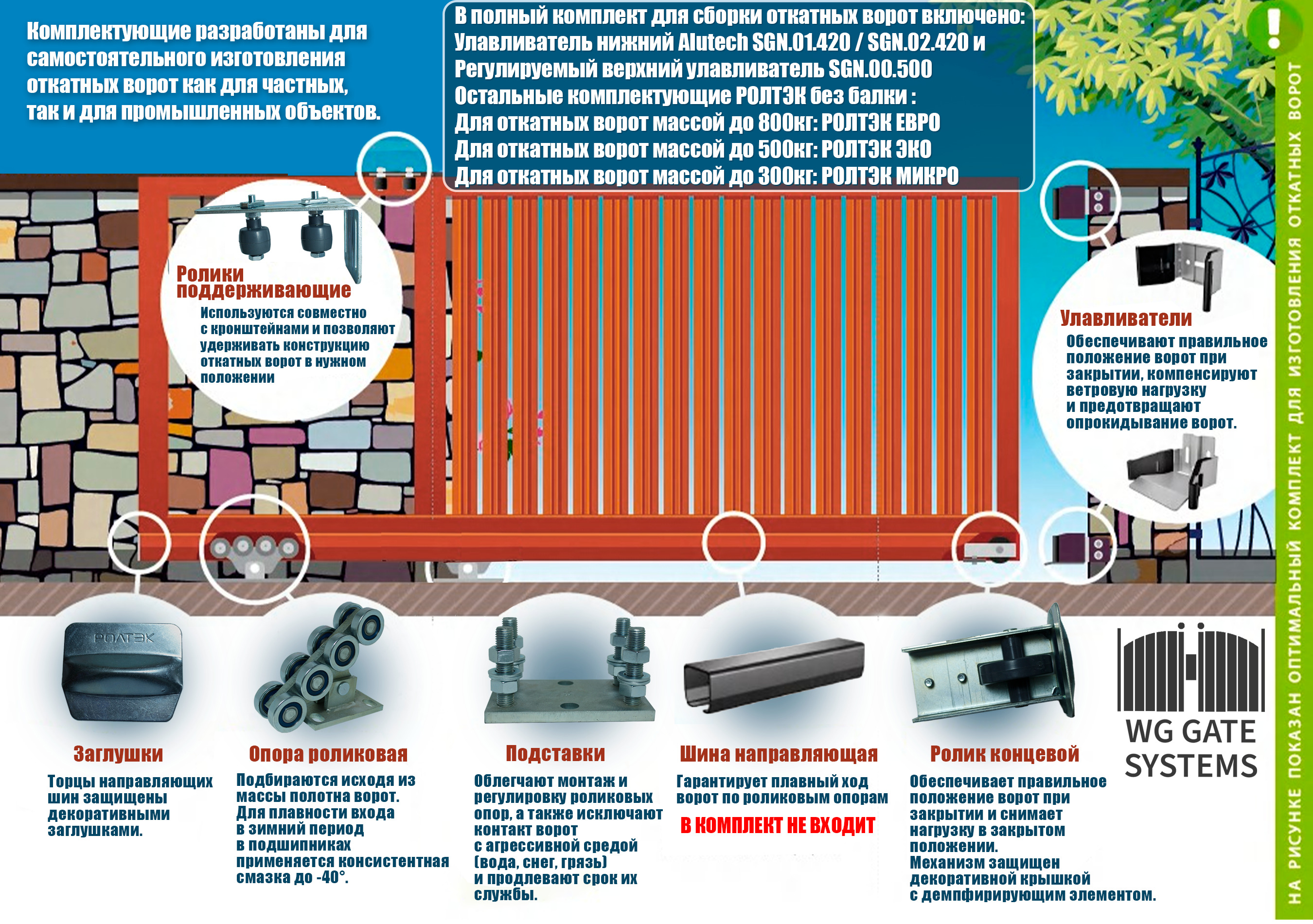 Комплектующие для откатных ворот Ролтэк ЭКО ловитель нижний роликовый
