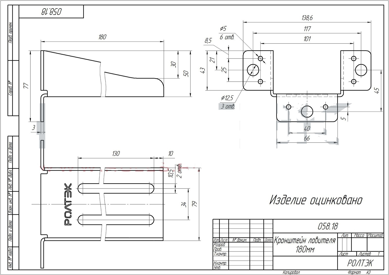 Кронштейн ловителя усиленный 180мм Ролтэк