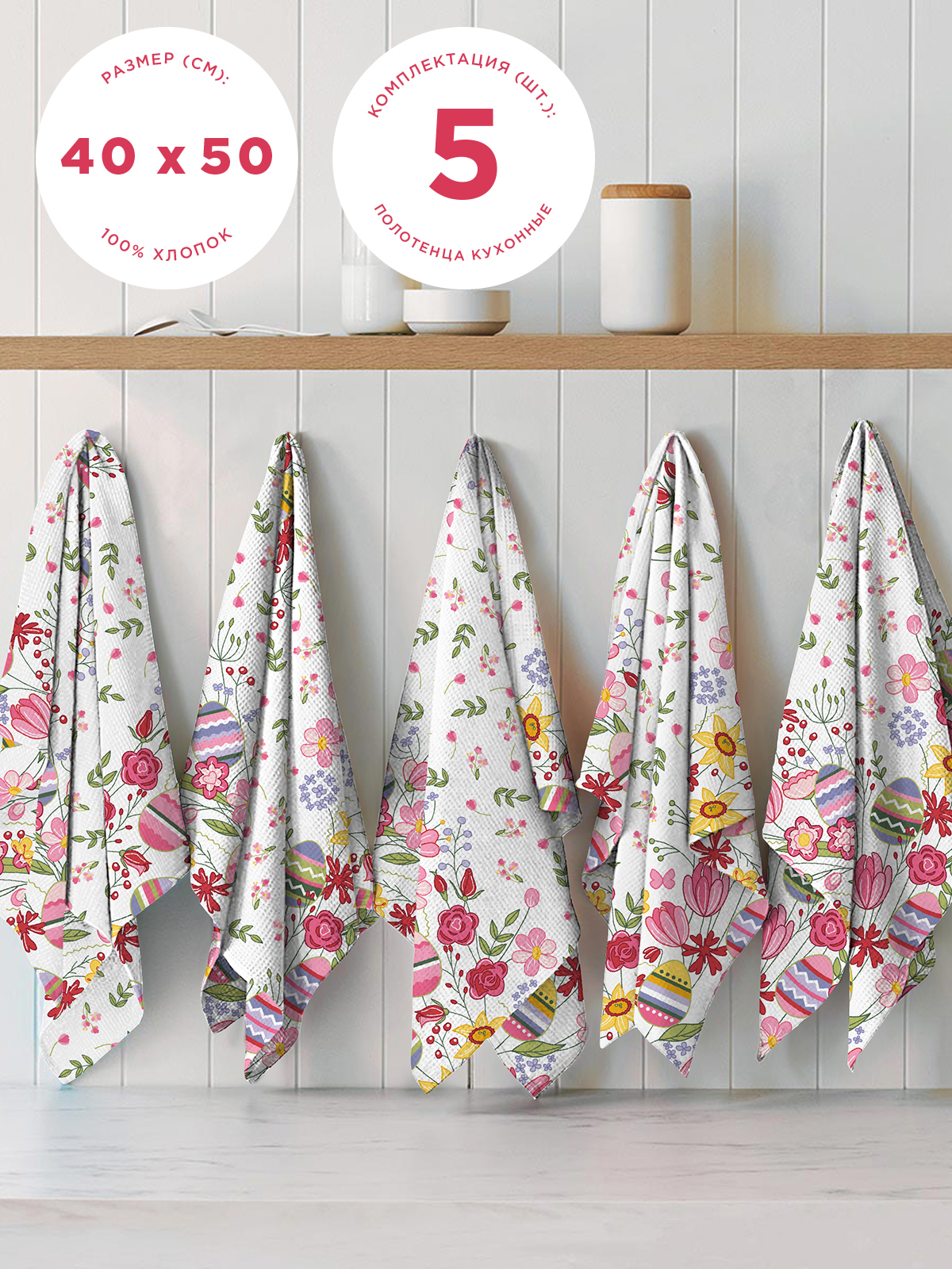 Набор полотенец для лица, рук или ног Романтика Цветы Хлопок 40x50 см, 5 шт.