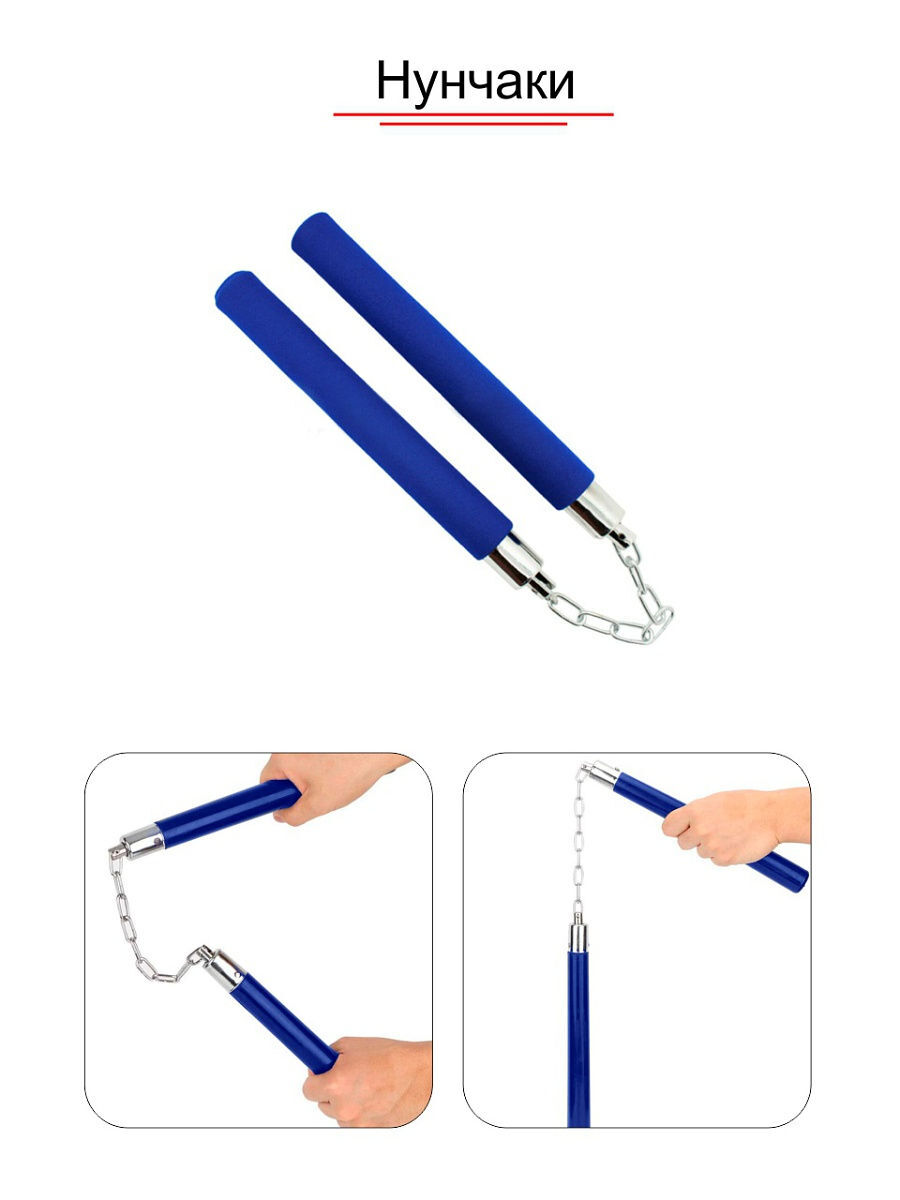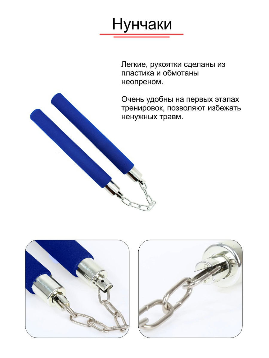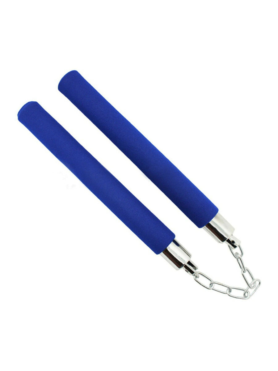 Тренировочные нунчаки на цепи, внеопреновой оболочке, облегченные, синие, 28 см