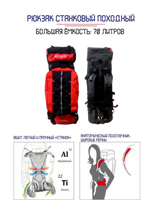 Рюкзак туристический Ronin C049 черный, красный, 70 л