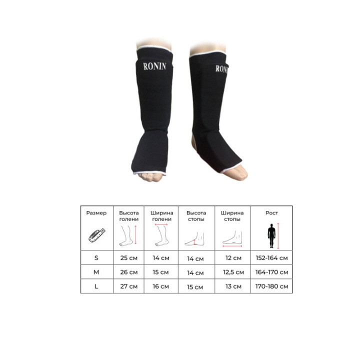 Щитки для защиты голени и стопы Ronin F162 юниорская, защита ног для единборств, размер M