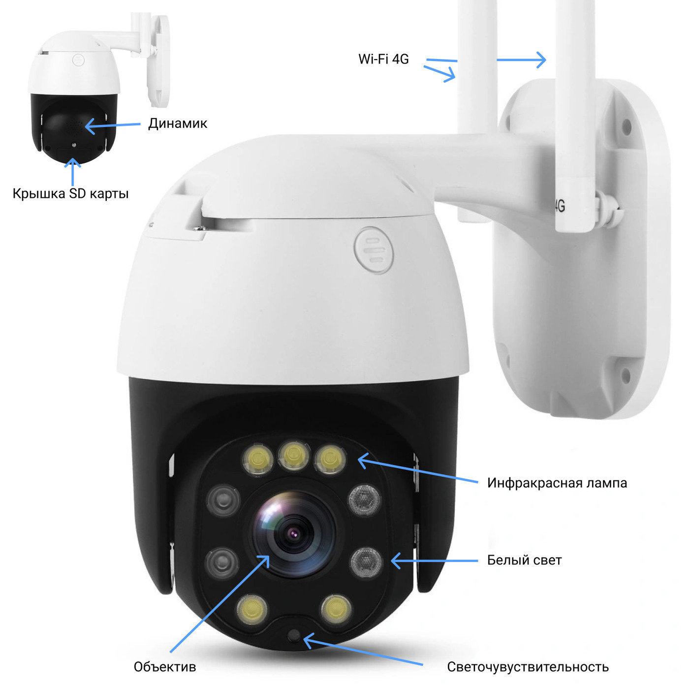 Беспроводная уличная поворотная 4G камера RN-20WF4GPTZ-4X 1080p