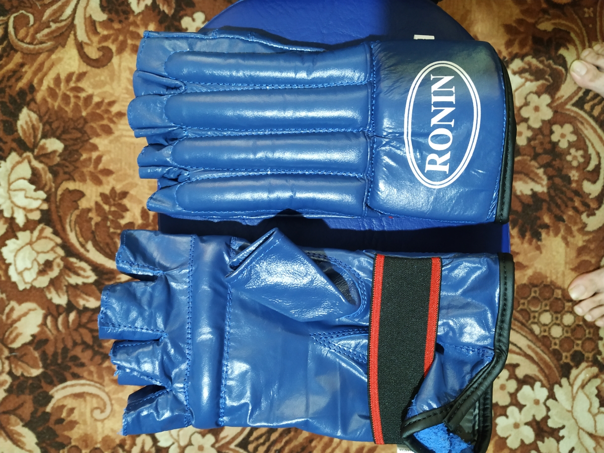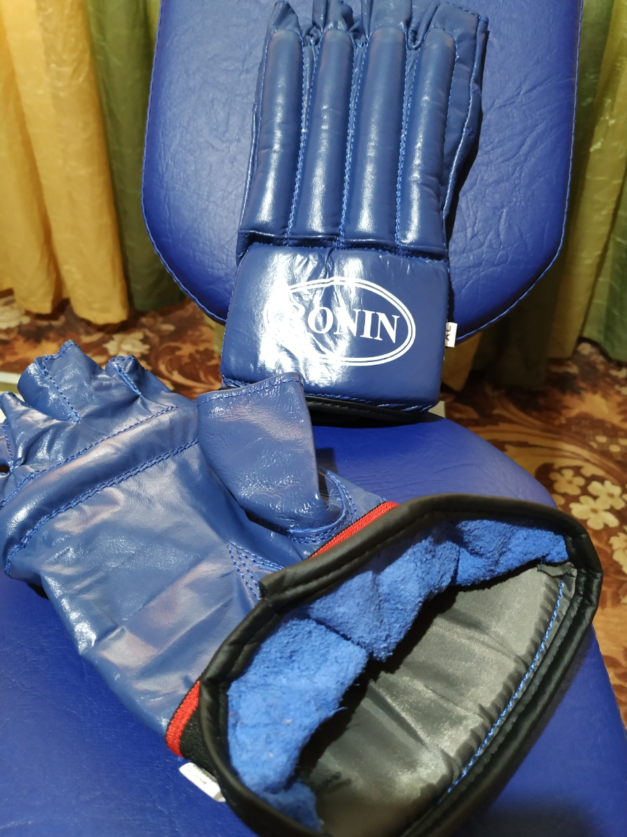 Накладки спаринговые для тренировок и реального боя синие, загнутые