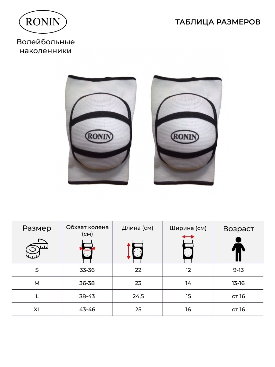 Наколенники профессиональные RONIN для спорта, для волейбола, для роликов, для танцев, для велосипеда, размер XL, белые
