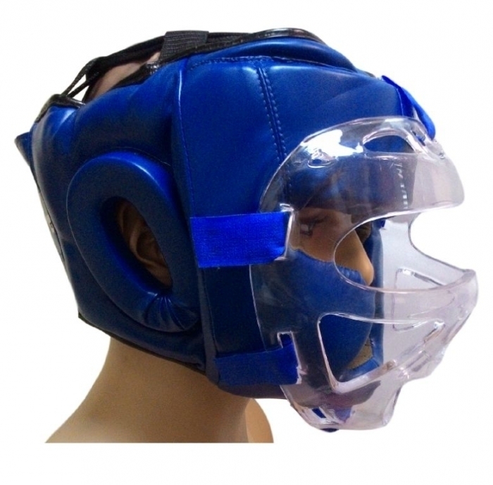 Шлем для бокса тренировочный синий, закрытый, размер L