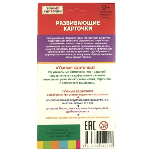 Набор карточек РОСМЭН Умные карточки. Времена года 17x9.5 см 36 шт.