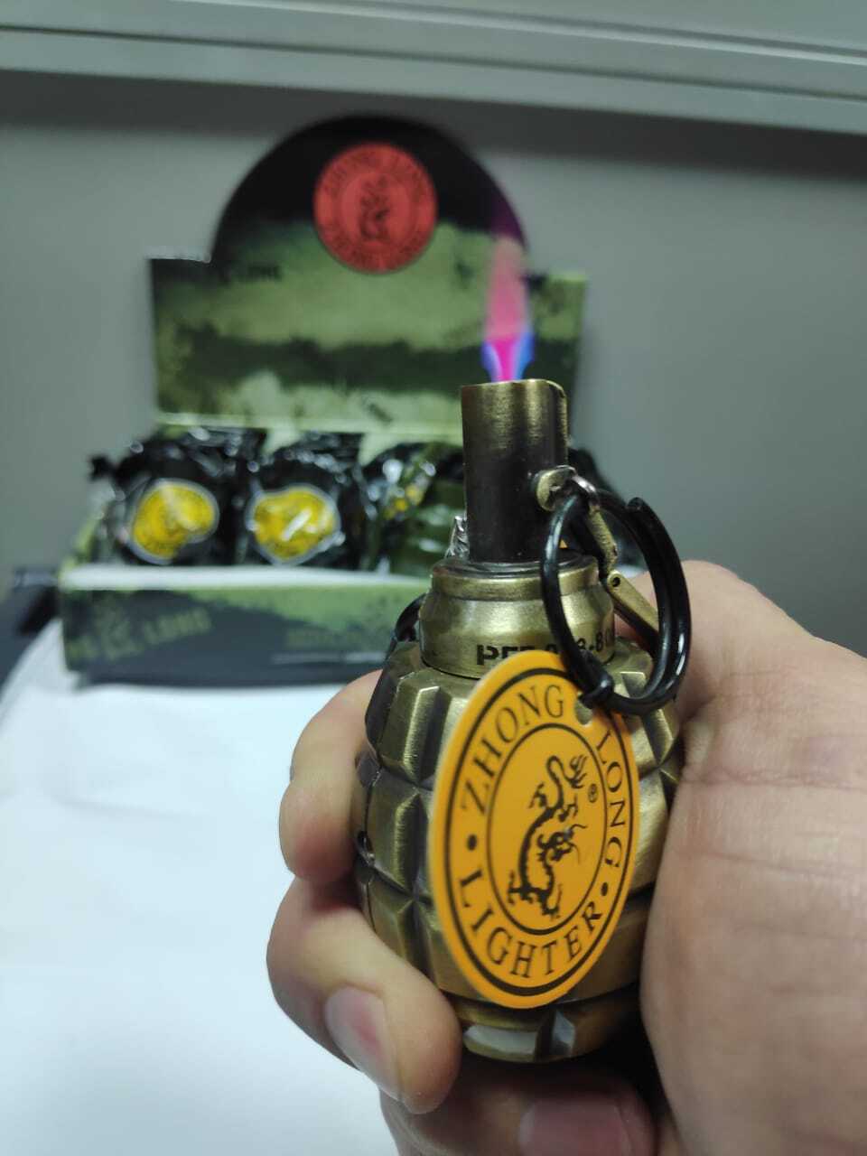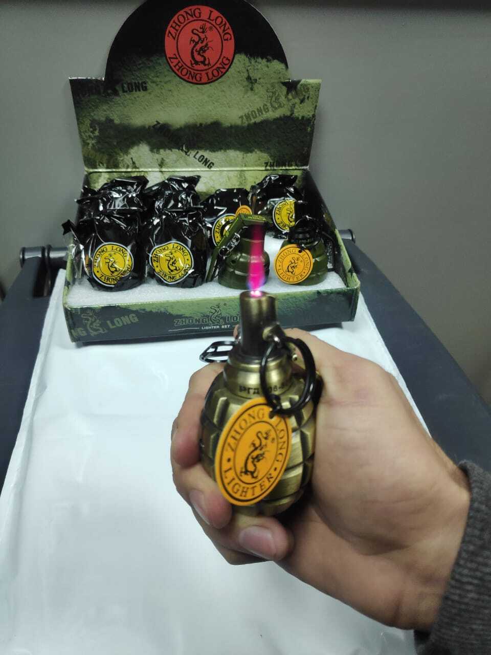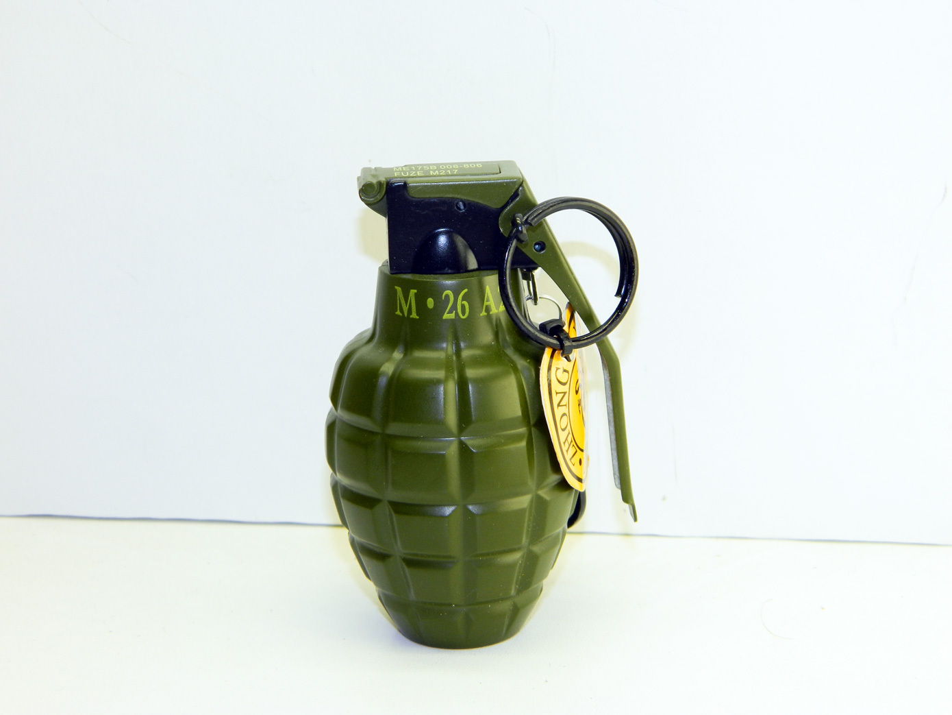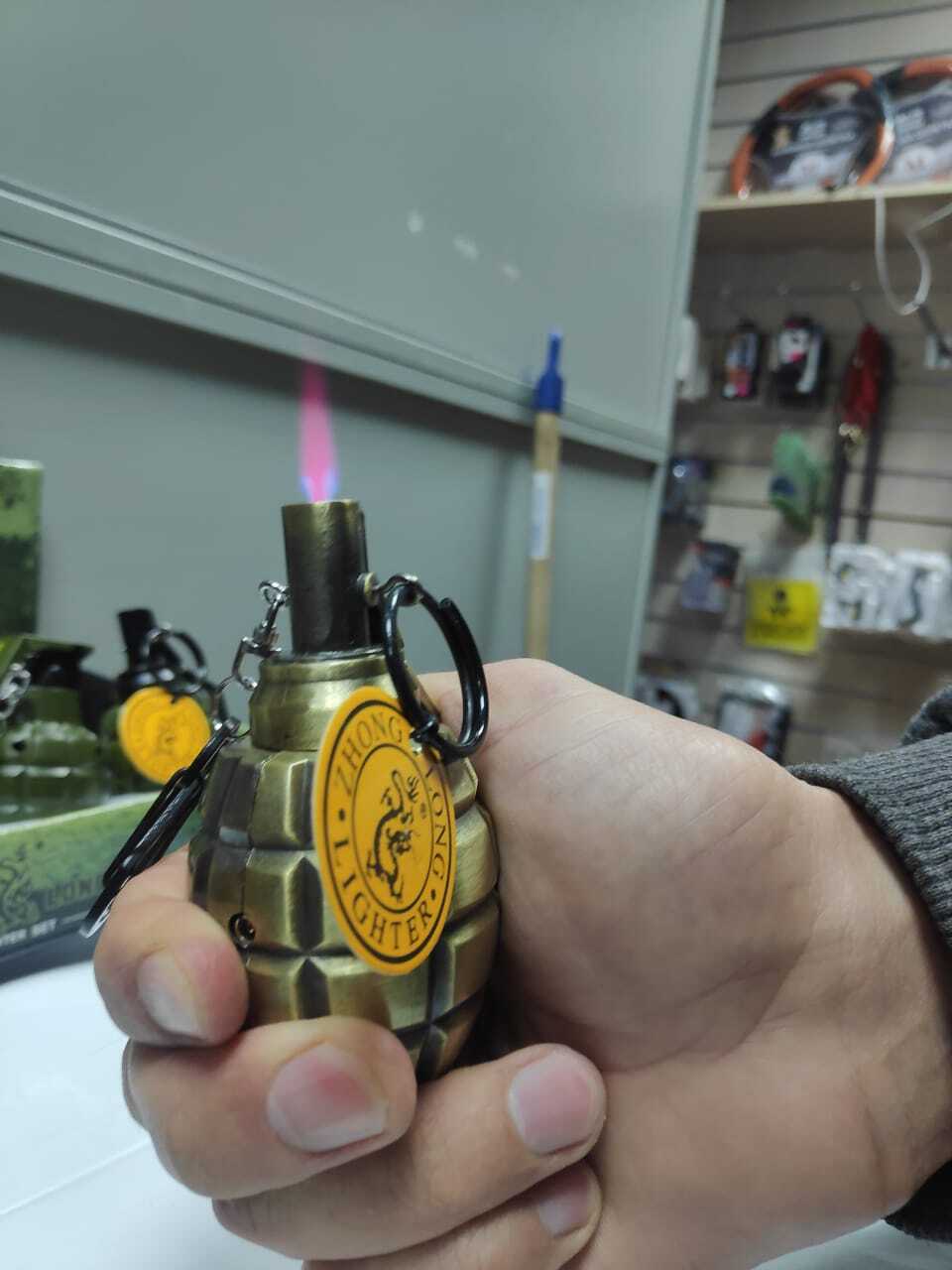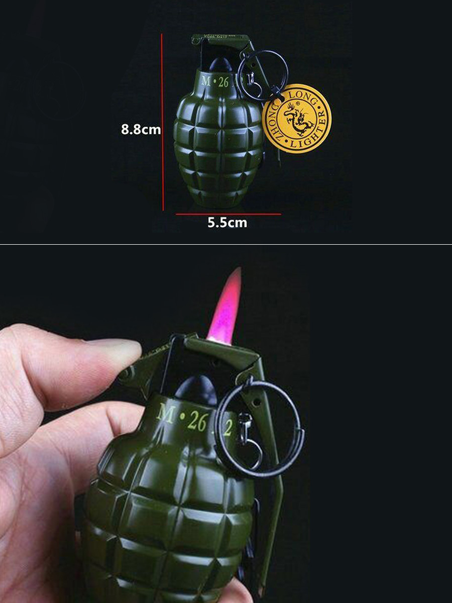 Газовая зажигалка - подарок в форме гранаты металлическая ( хаки, большая, m26a2)