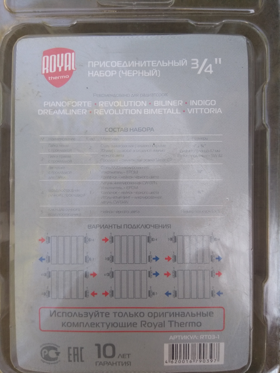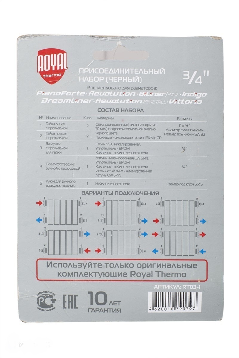 Монтажный комплект для радиатора Royal Thermo 3/4 универсальный черный