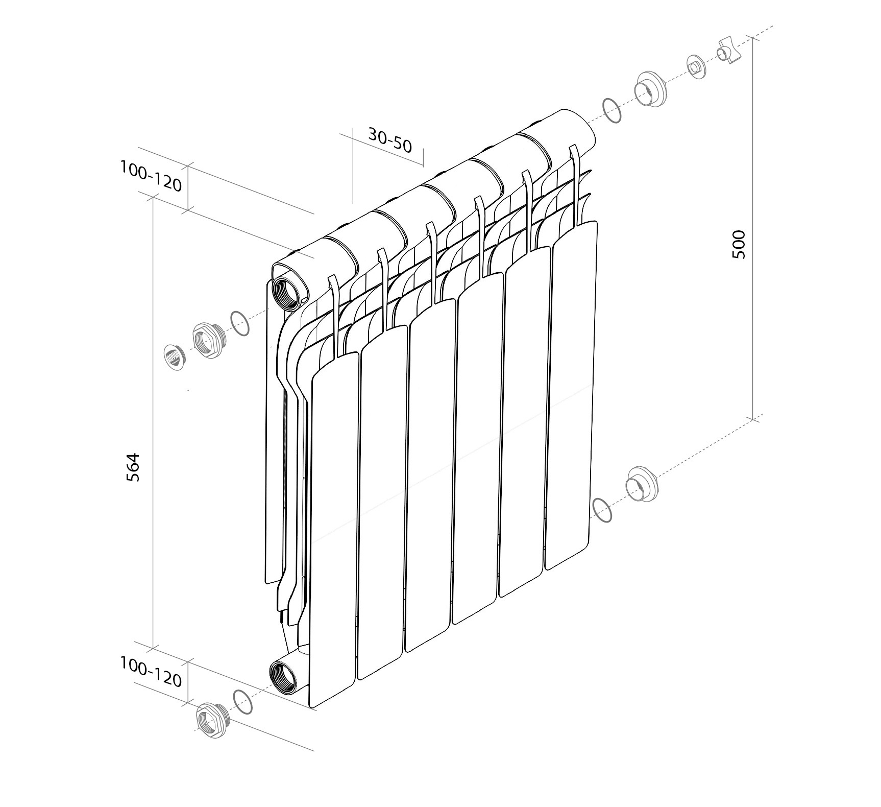 Секционный радиатор Биметалл Royal Thermo Revolution Bimetall 500, 4 секц.