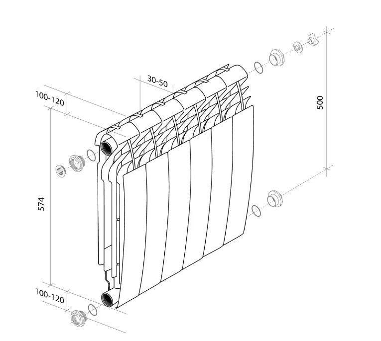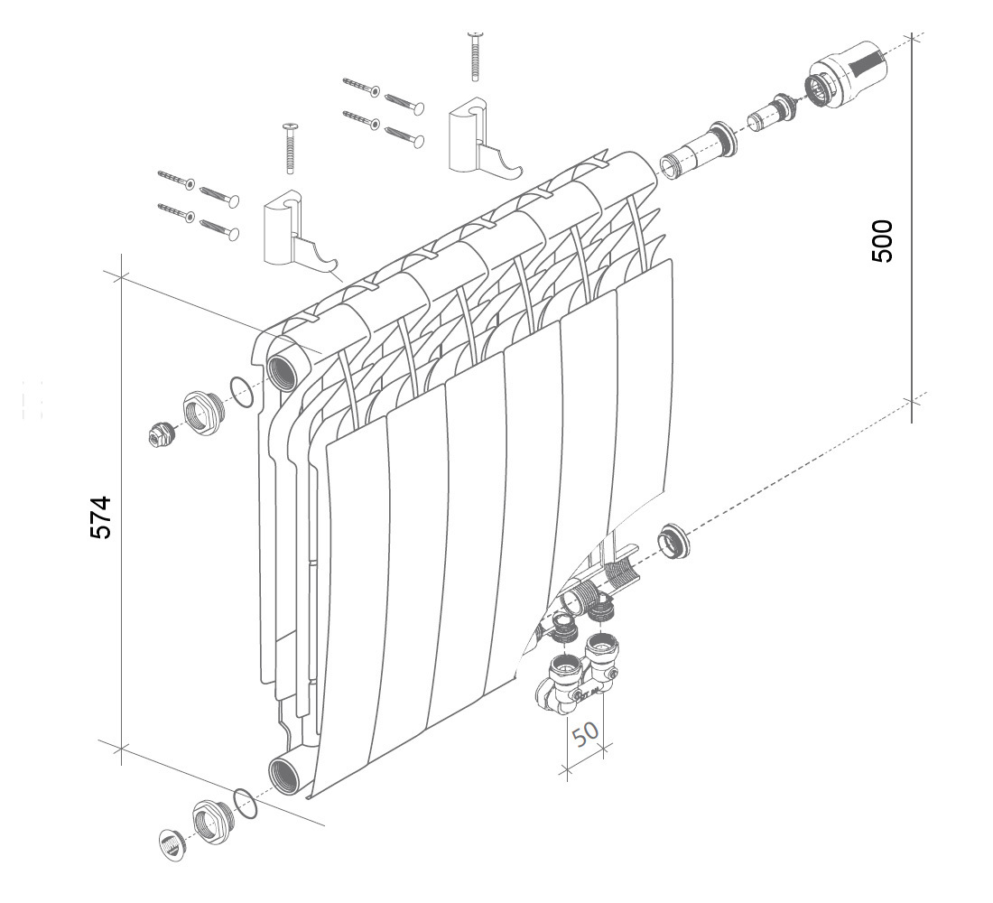Секционный радиатор Royal Thermo Revolution Bimetall 500, 8 секц., 8 секц.