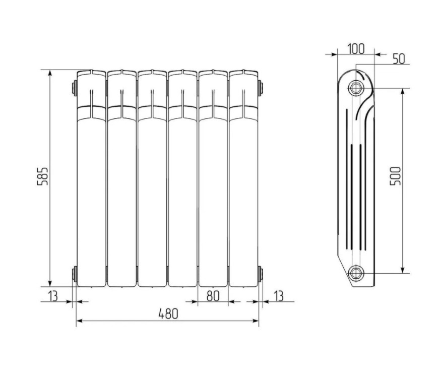 Секционный радиатор Биметалл Royal Thermo Revolution 500 правое, 6 секц.
