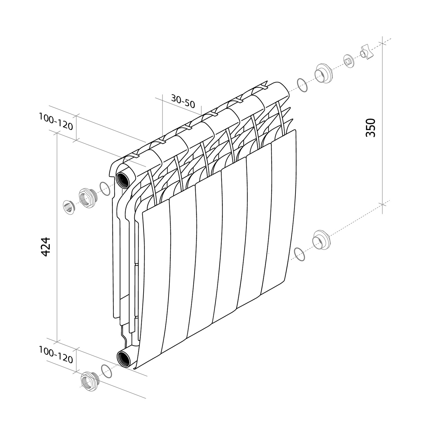 Секционный радиатор Биметалл Royal Thermo Revolution Bimetall 350 - 4 секции, 4 секц.