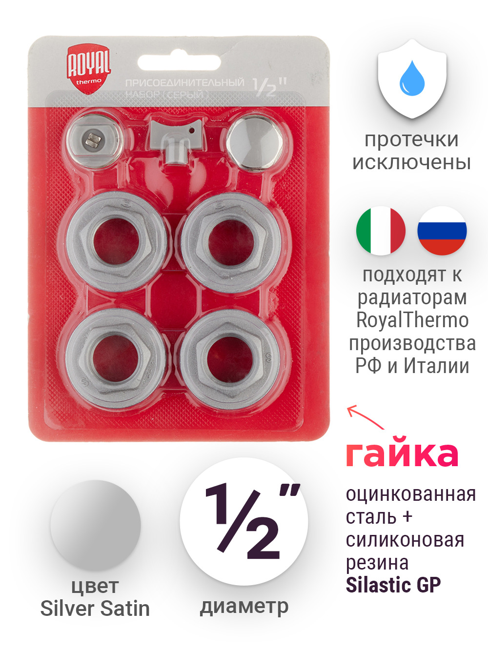 Секционный радиатор Royal Thermo Набор присоединительный 1/2 серебристый