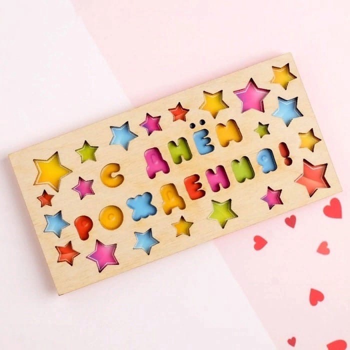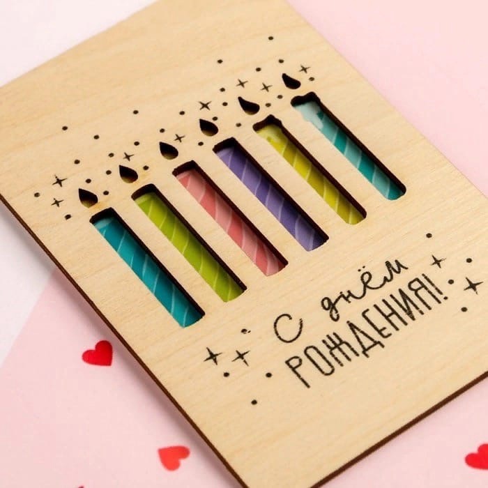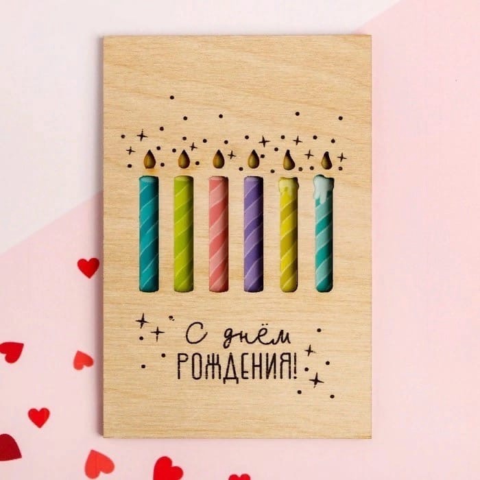 Деревянная открытка "С Днём Рождения!" свечи, 10х15 см