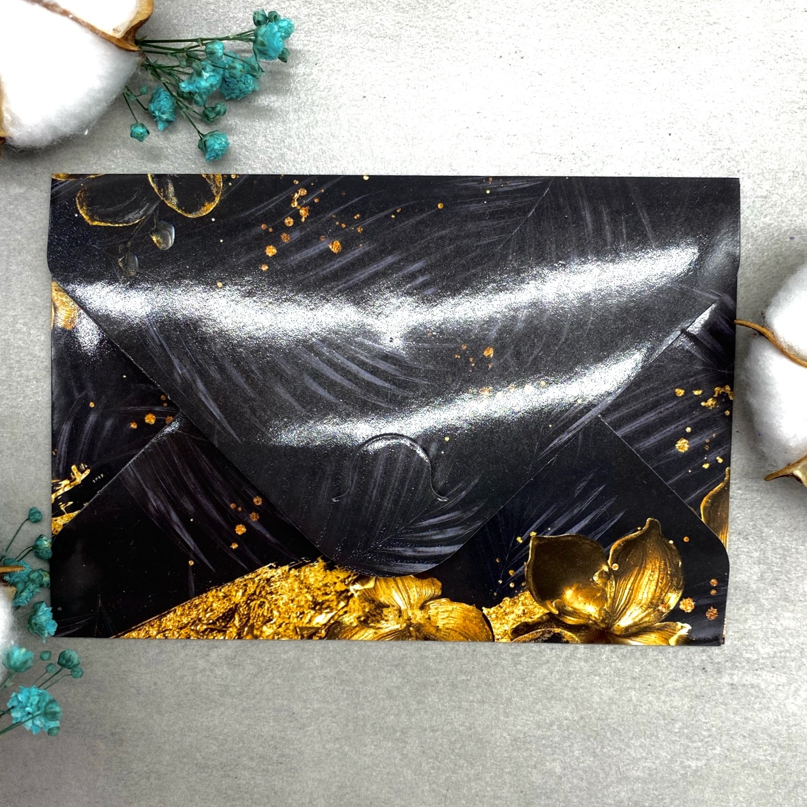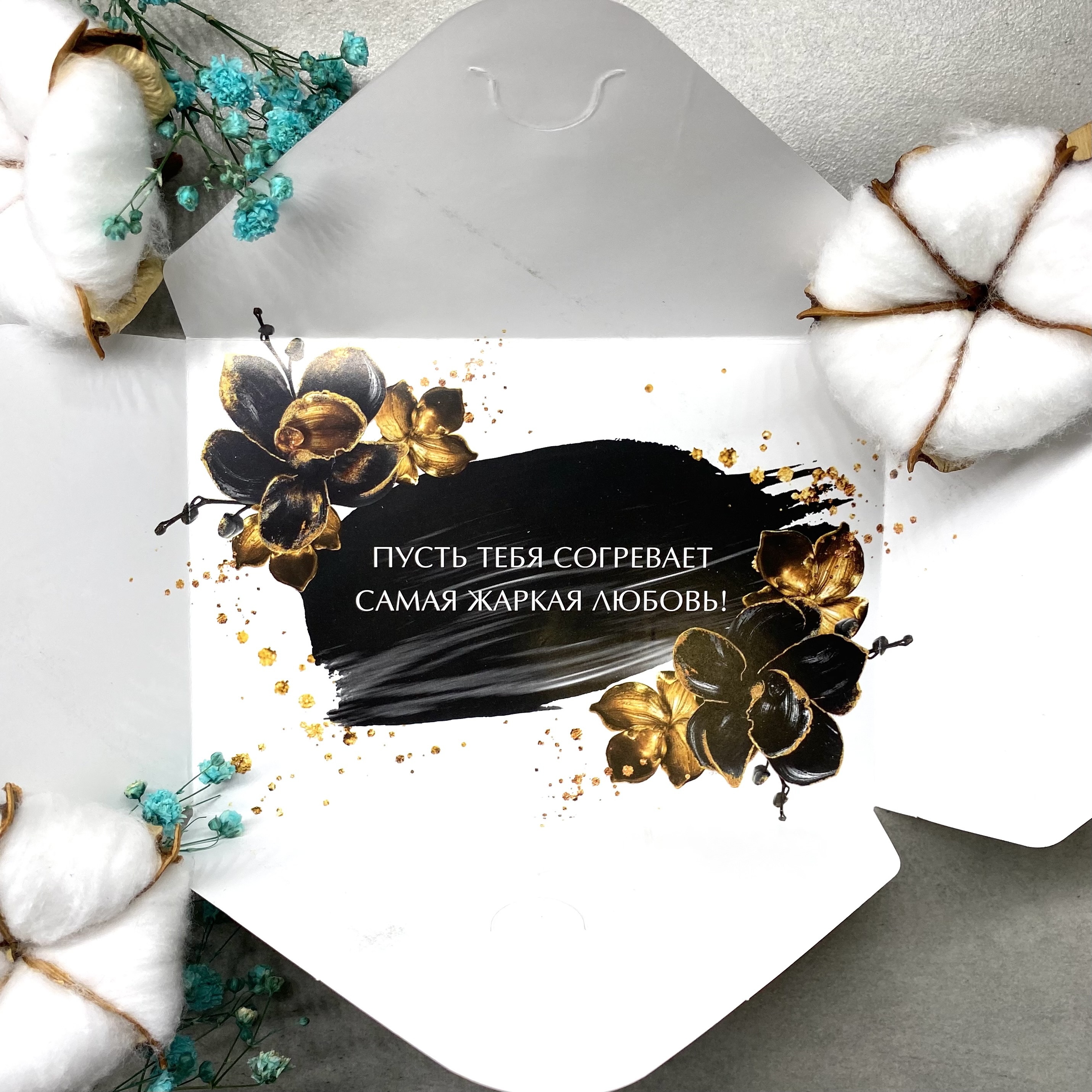 Оригинальная открытка-конверт по любому поводу "Открой за чашкой кофе", чёрный люкс, 1 шт, 13х9 см