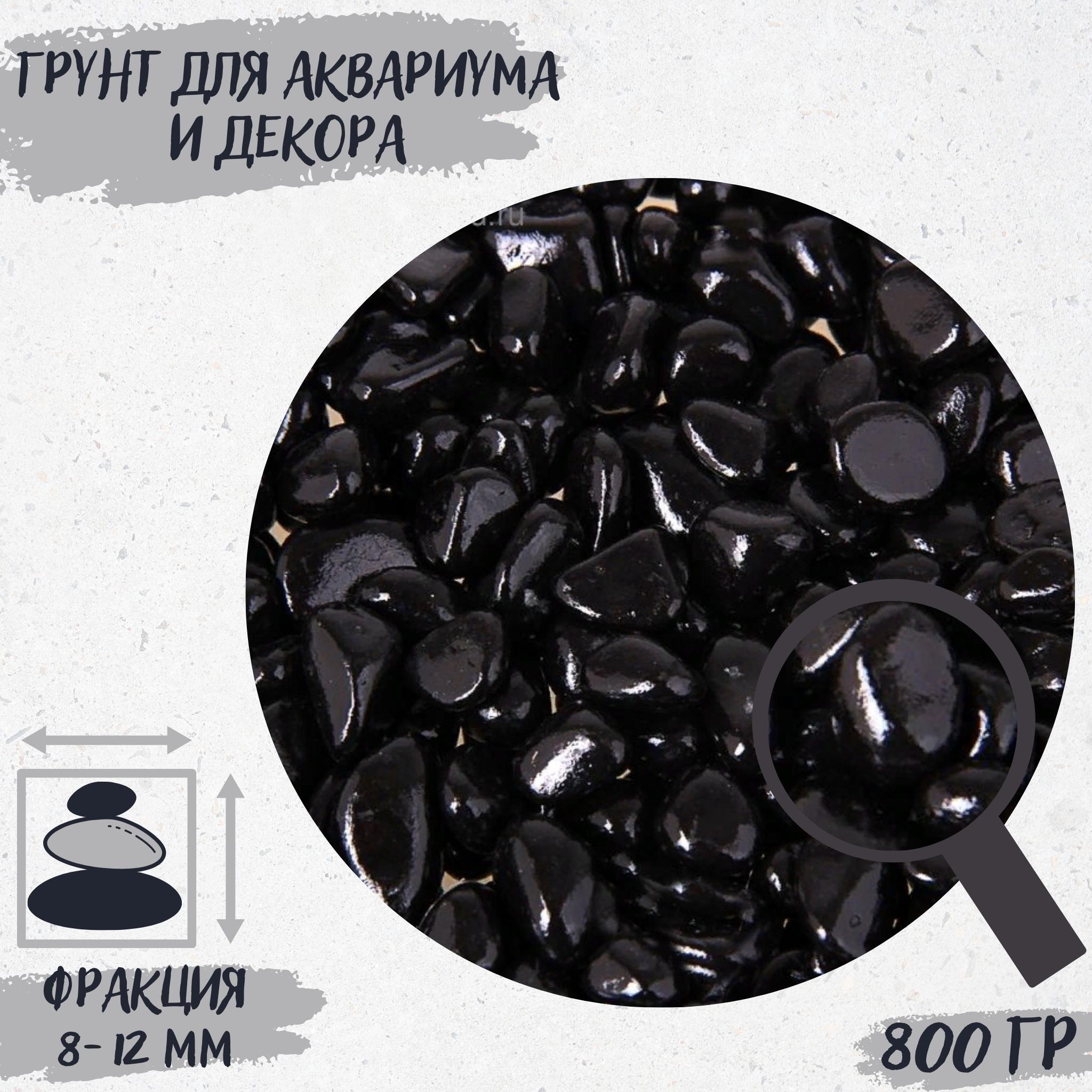Грунт для аквариума и декора "Галька цветная, черная", 800г, фракция 8-12 мм