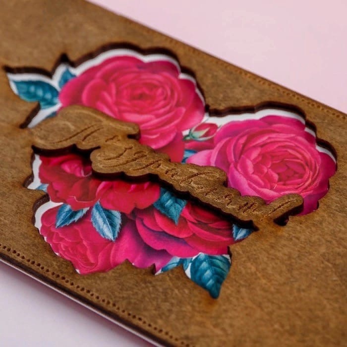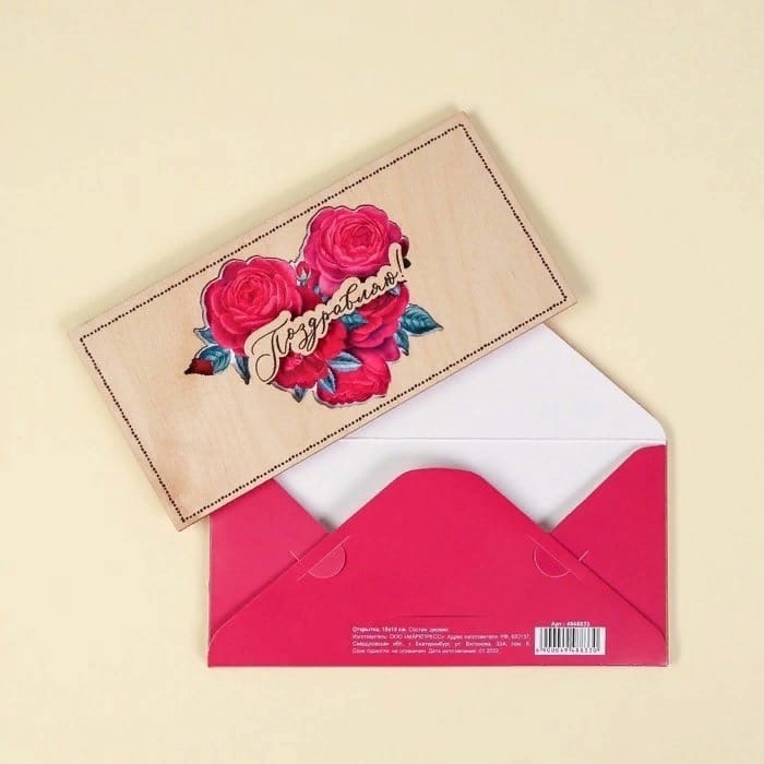 Конверт для денег с деревянным элементом "Поздравляю!" цветы, сердце, 16,5 х 8 см