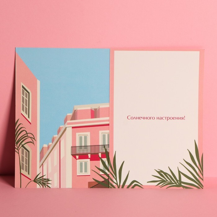 Открытка универсальная "Трамвай" с пожеланием "Солнечного настроения!", 12х18 см