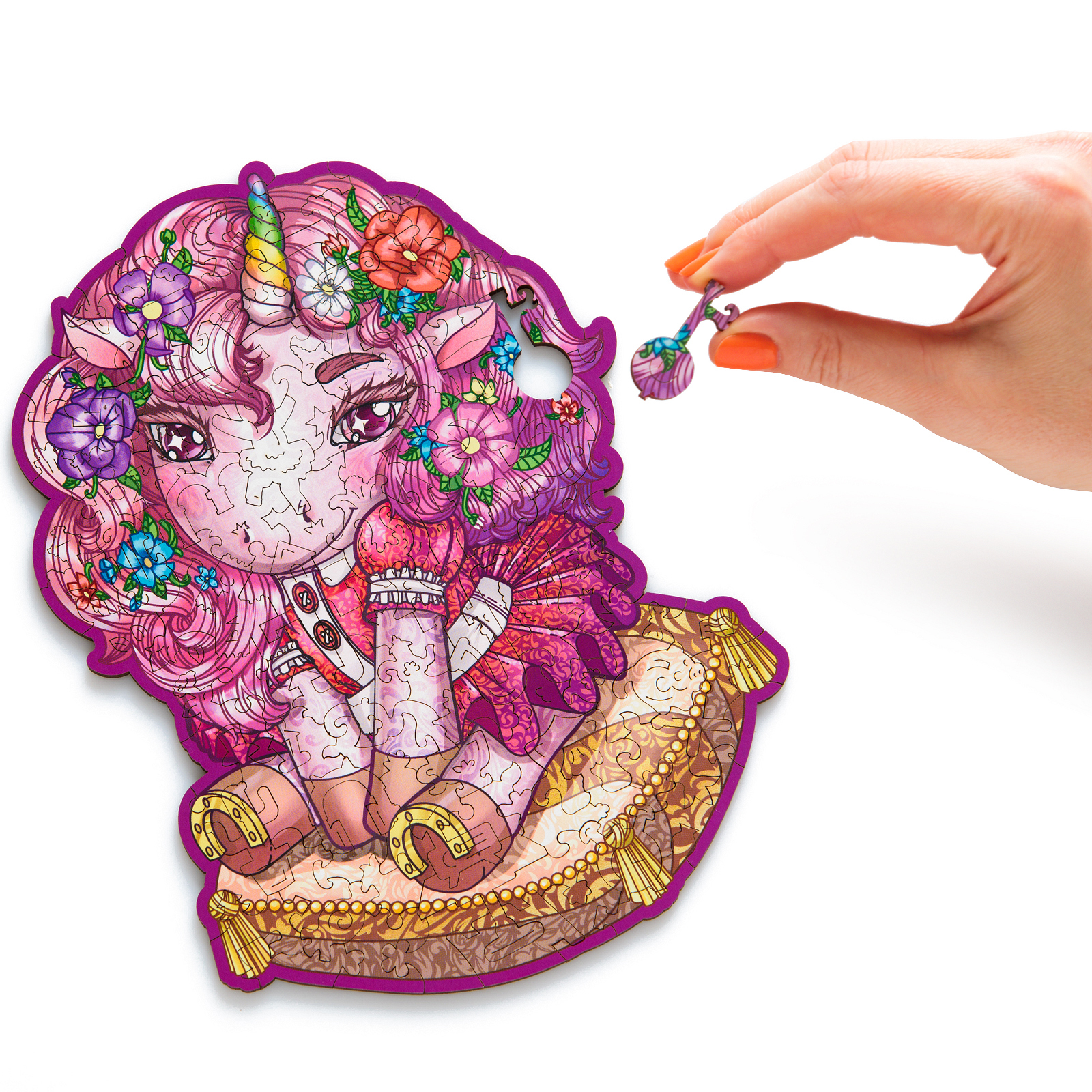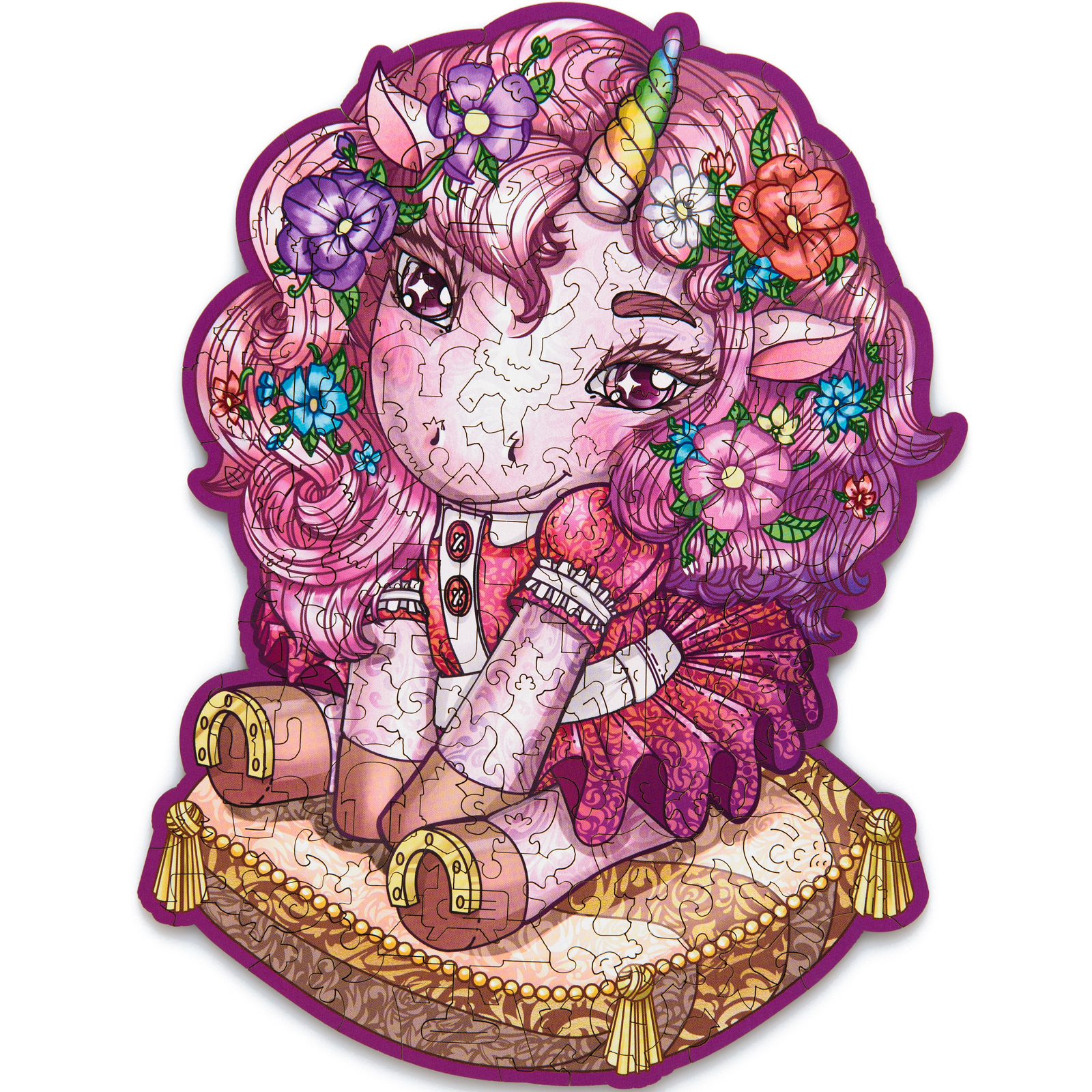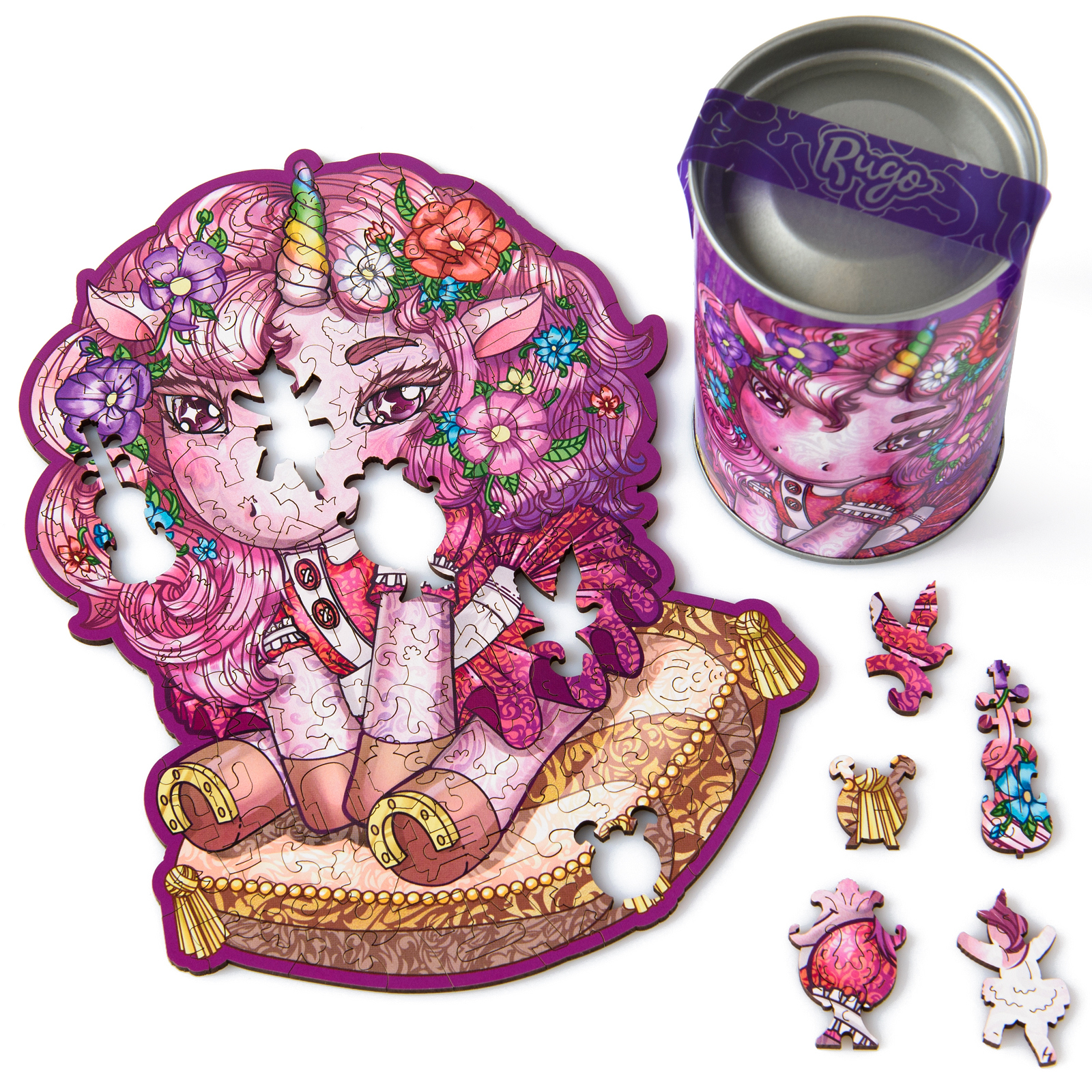 Пазл из дерева для детей и взрослых Rugo Единорог 17х23 см, 105 деталей в виде животных и растений