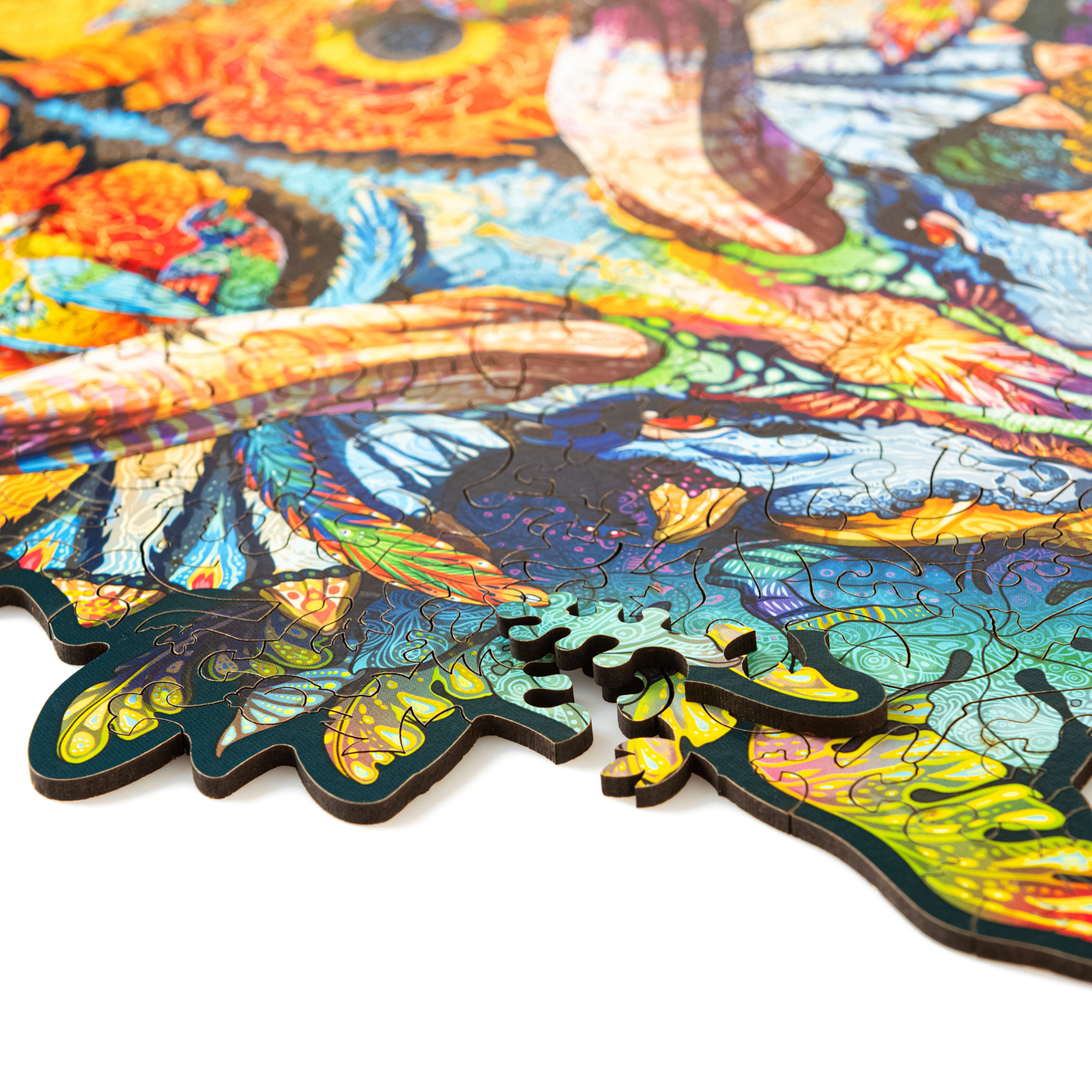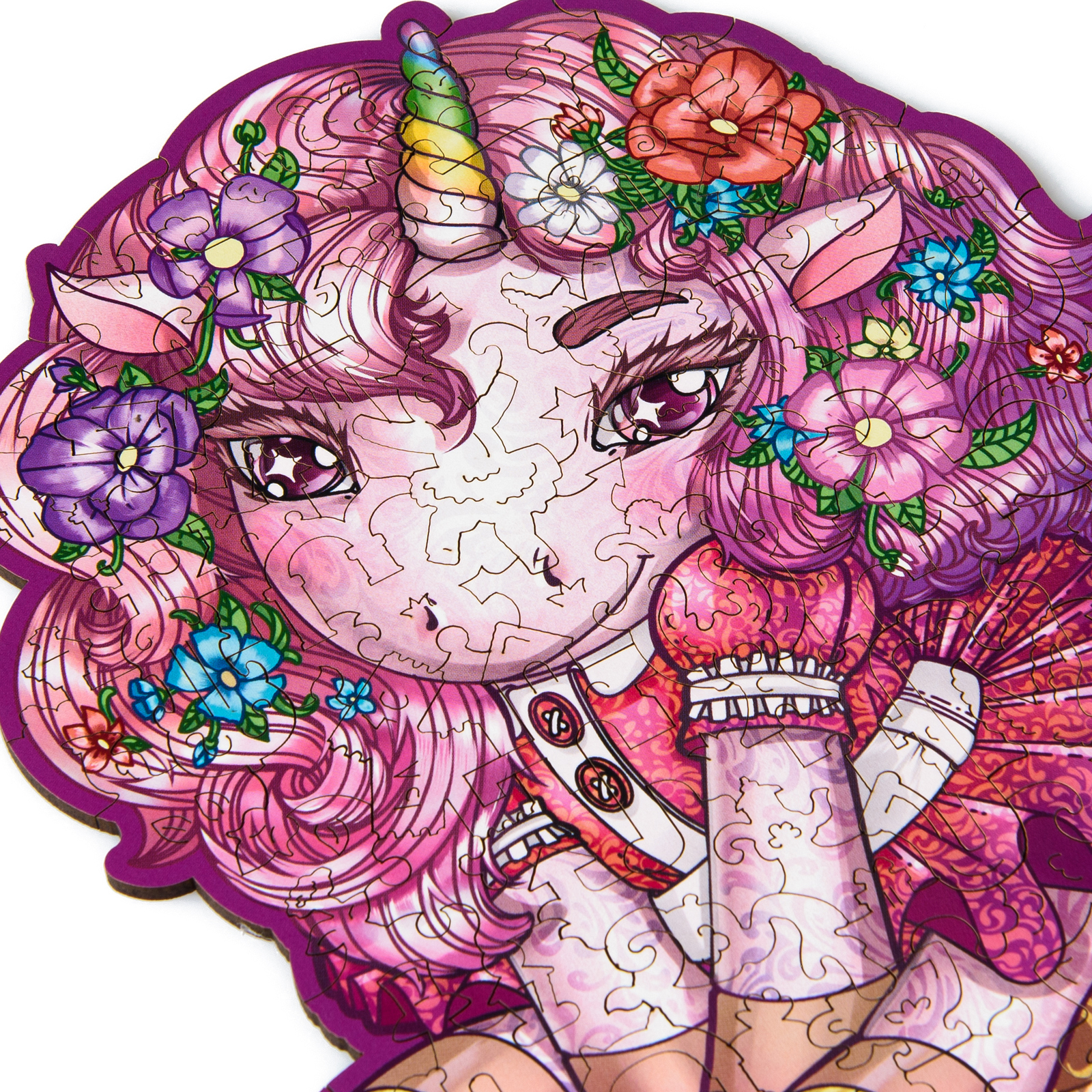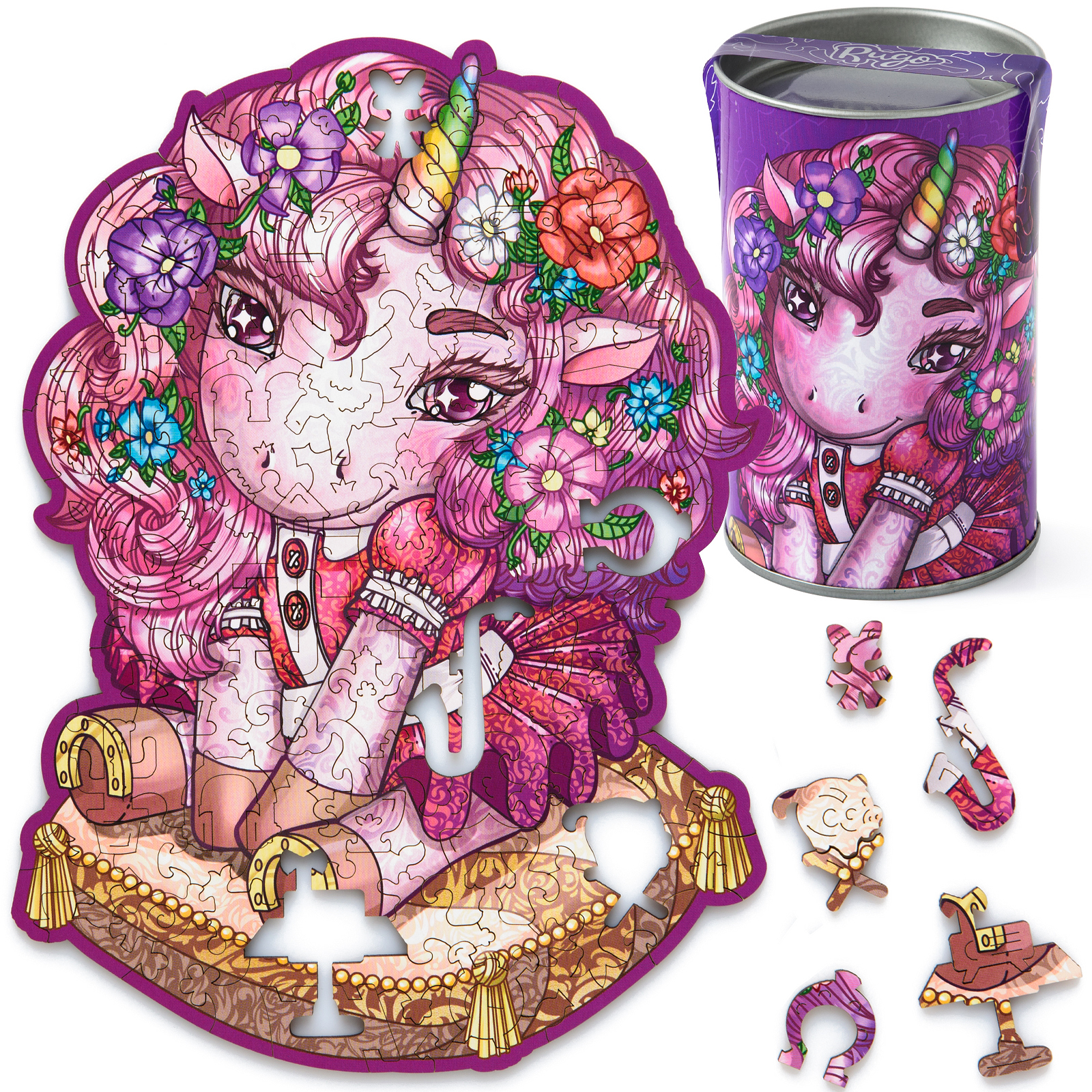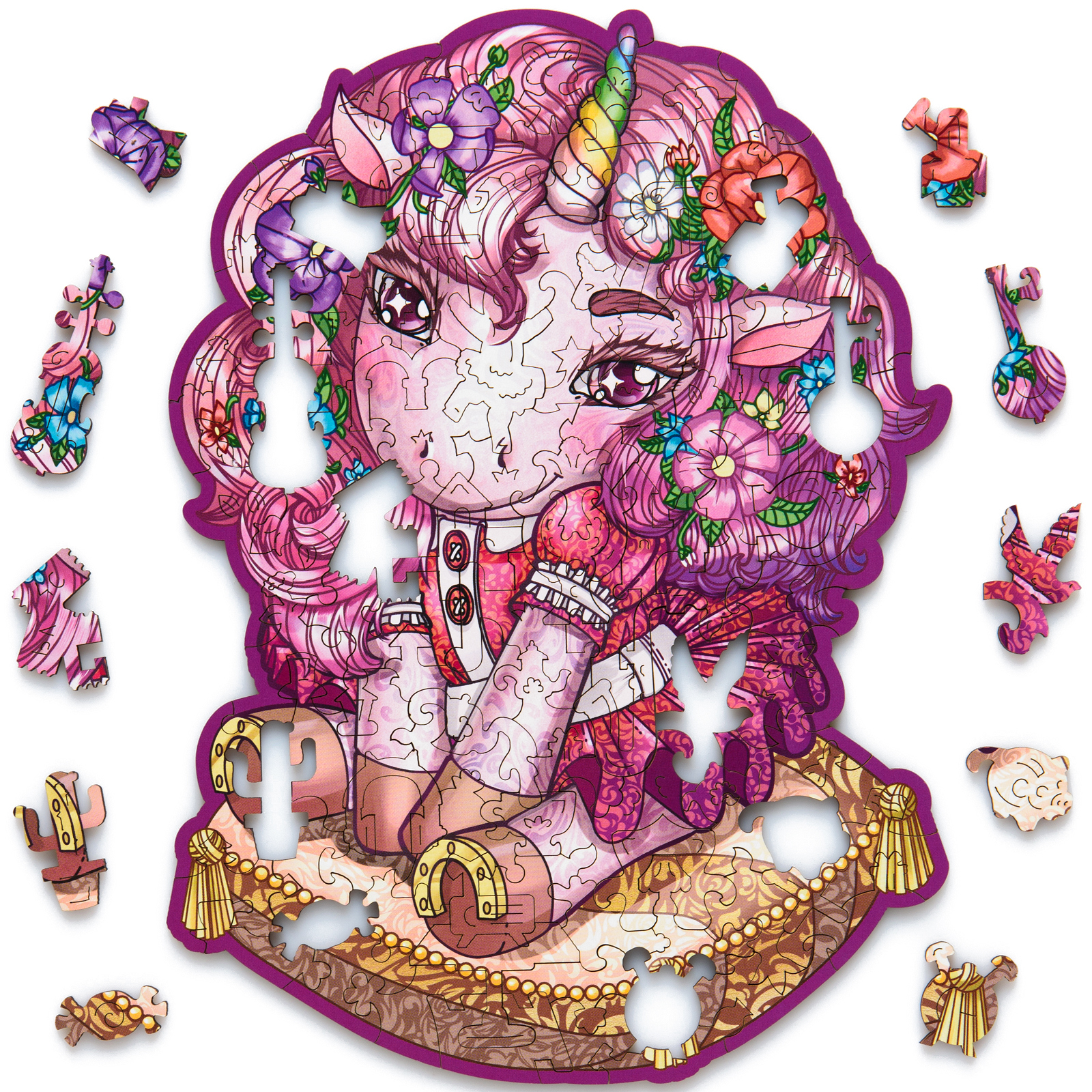 Пазл из дерева для детей и взрослых Rugo Единорог 17х23 см, 105 деталей в виде животных и растений