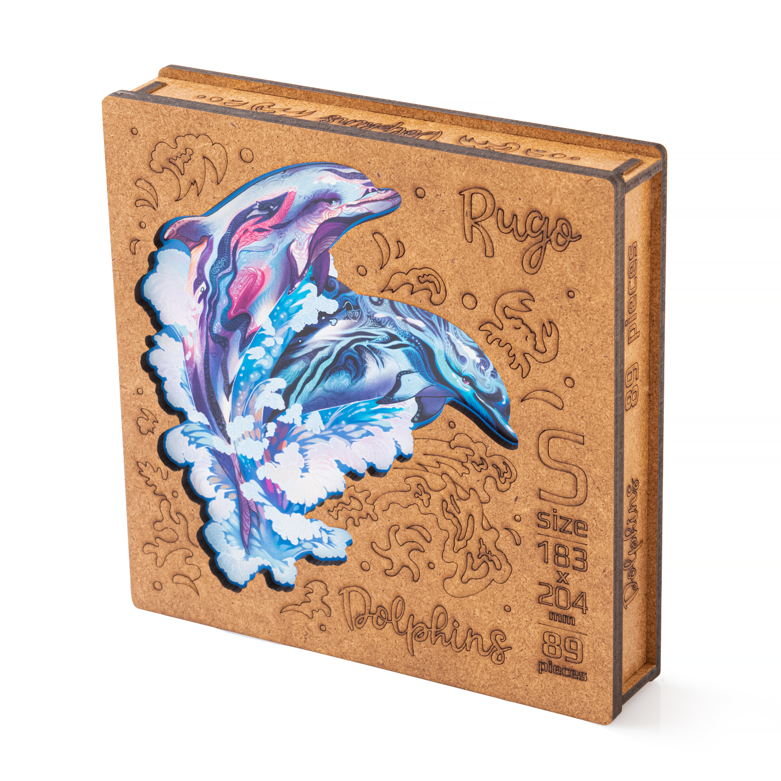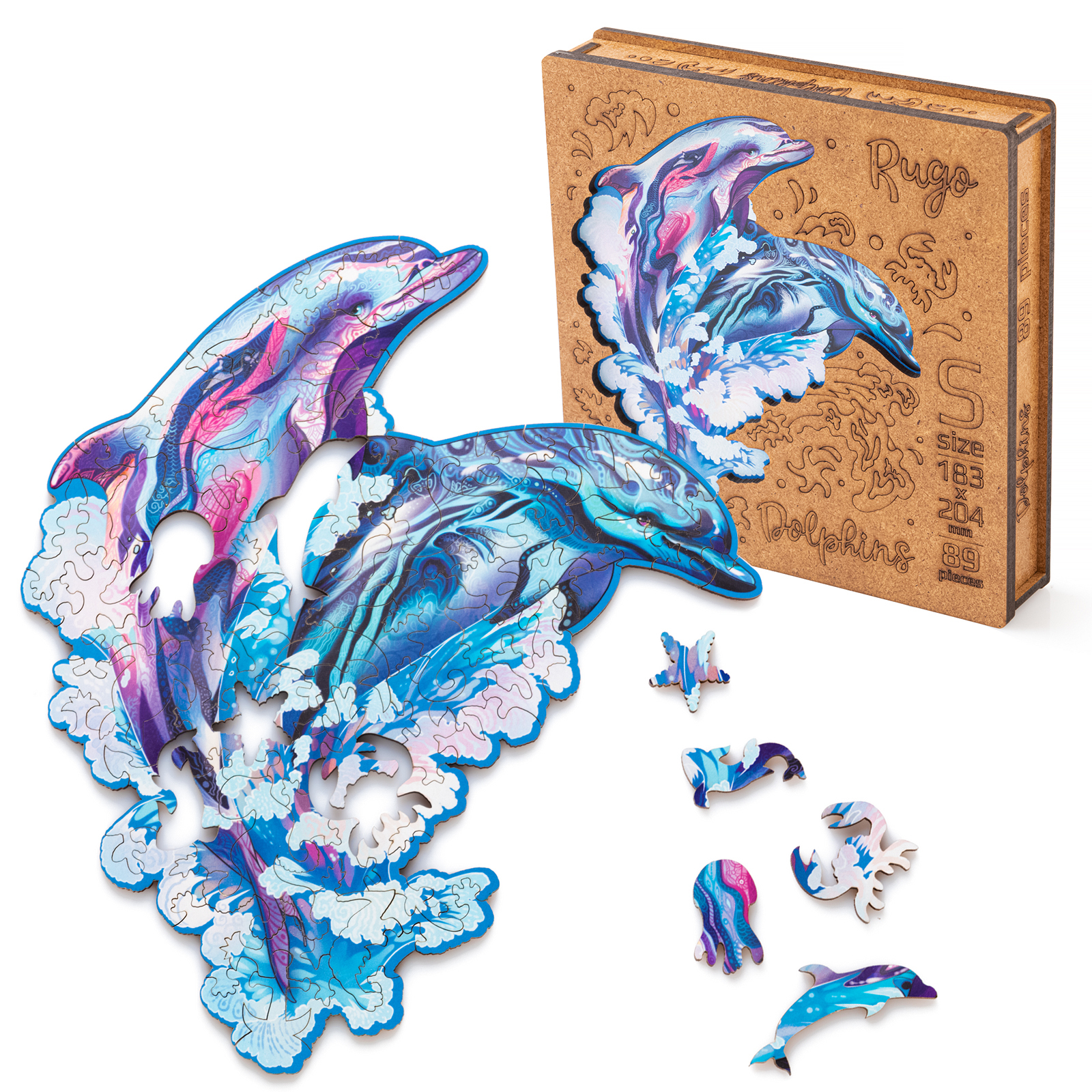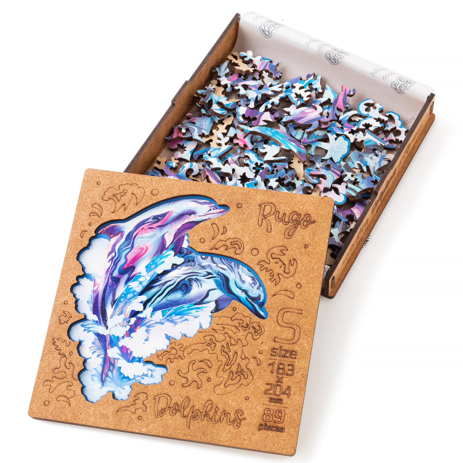 Деревянный пазл для детей и взрослых / Rugo "Дельфины" 18х20 см, 89 уникальных деталей