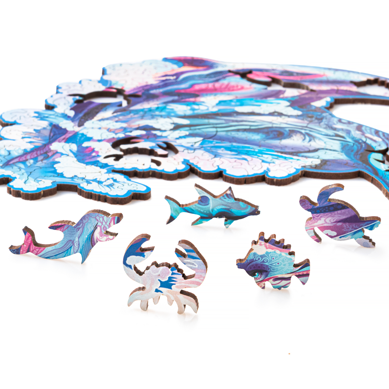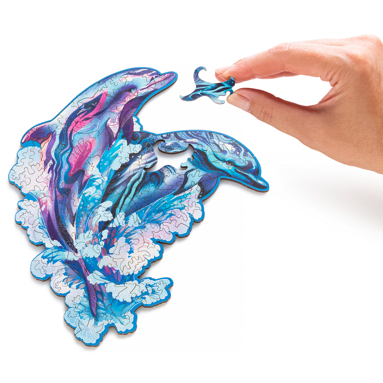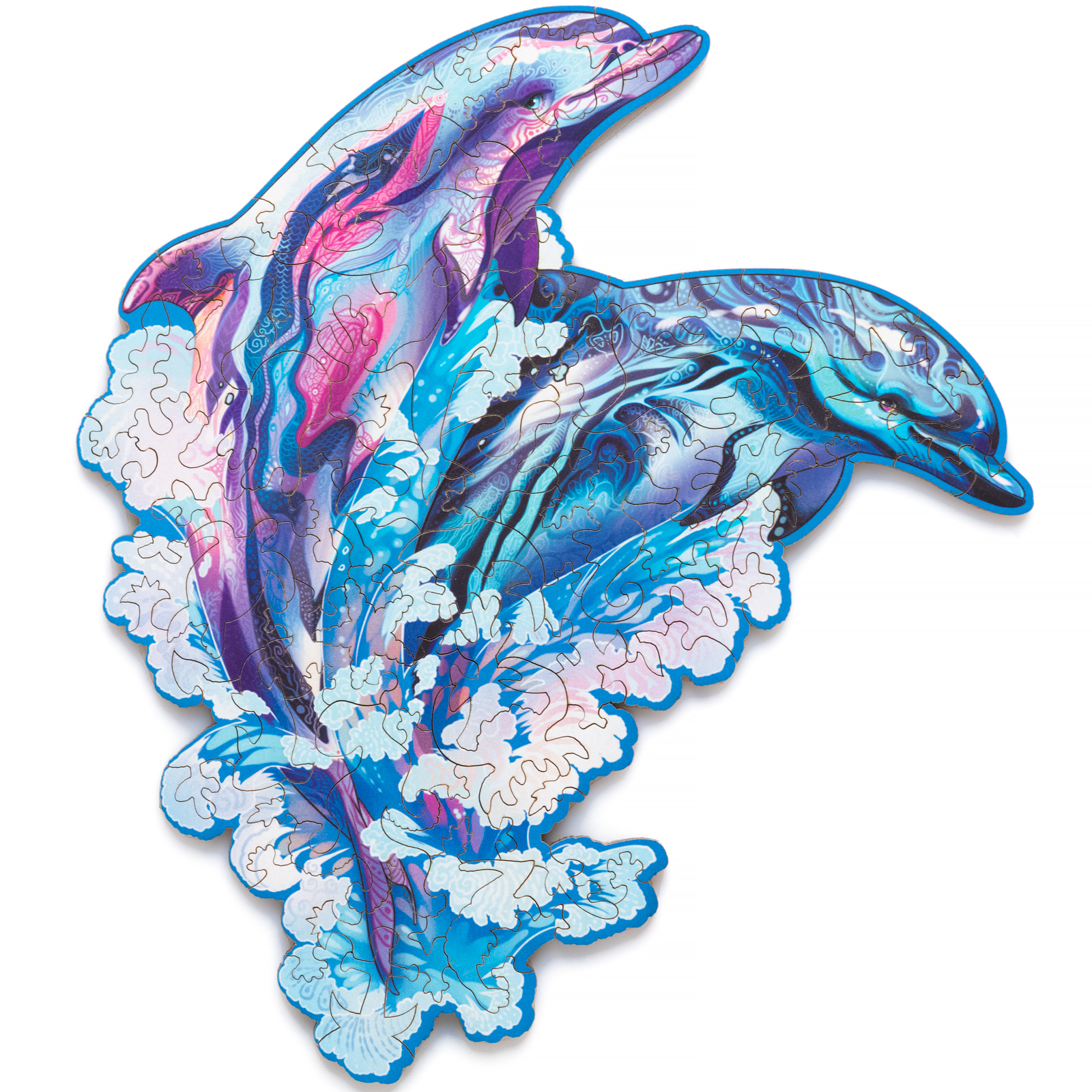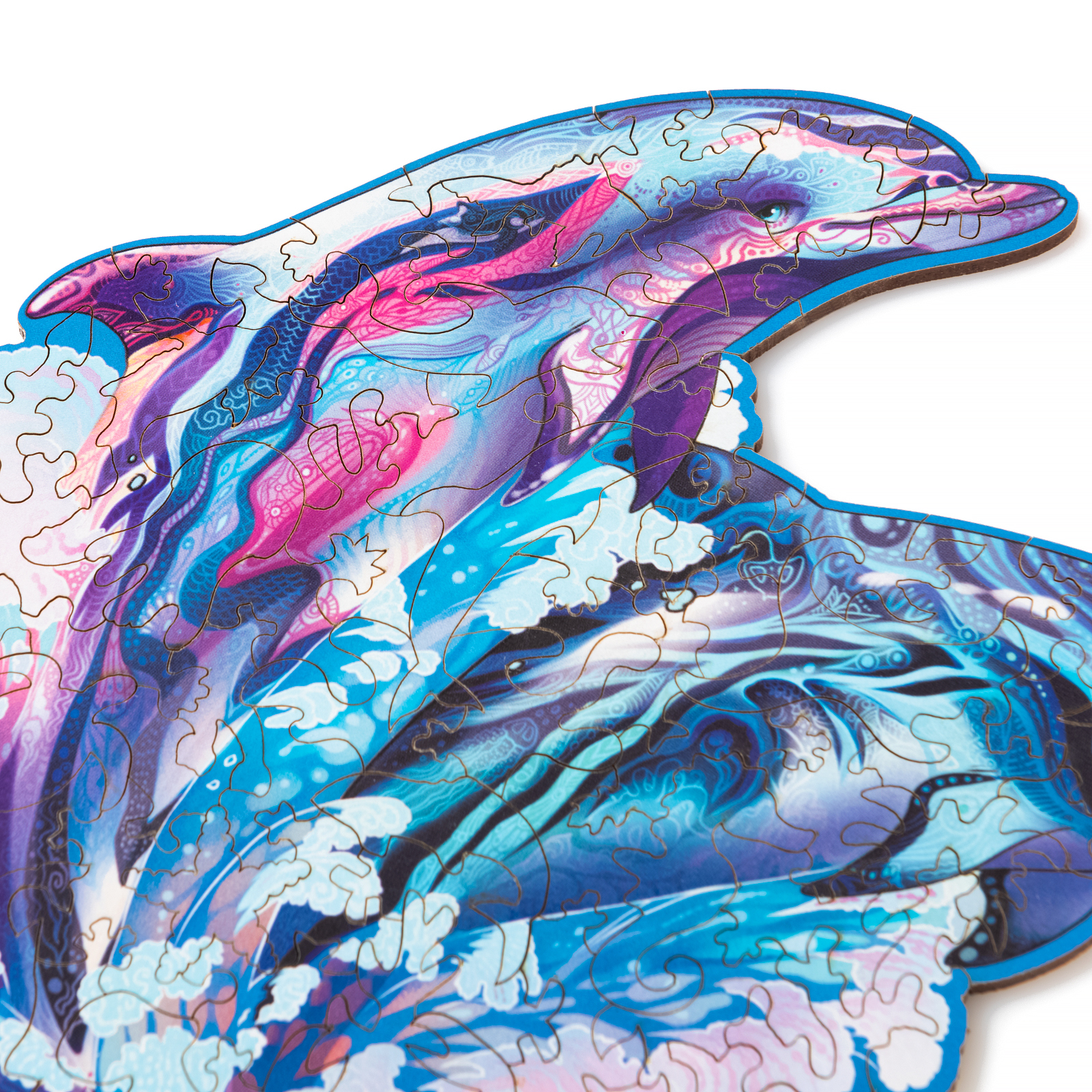 Деревянный пазл для детей и взрослых / Rugo "Дельфины" 18х20 см, 89 уникальных деталей