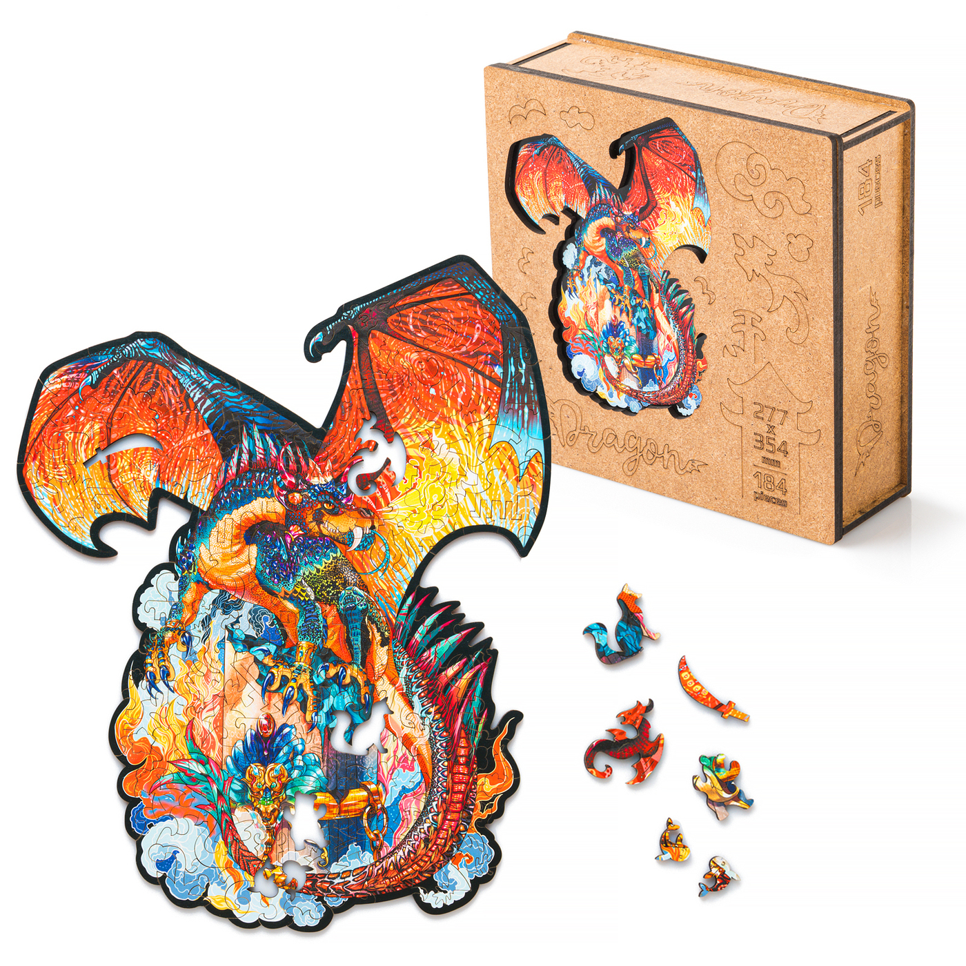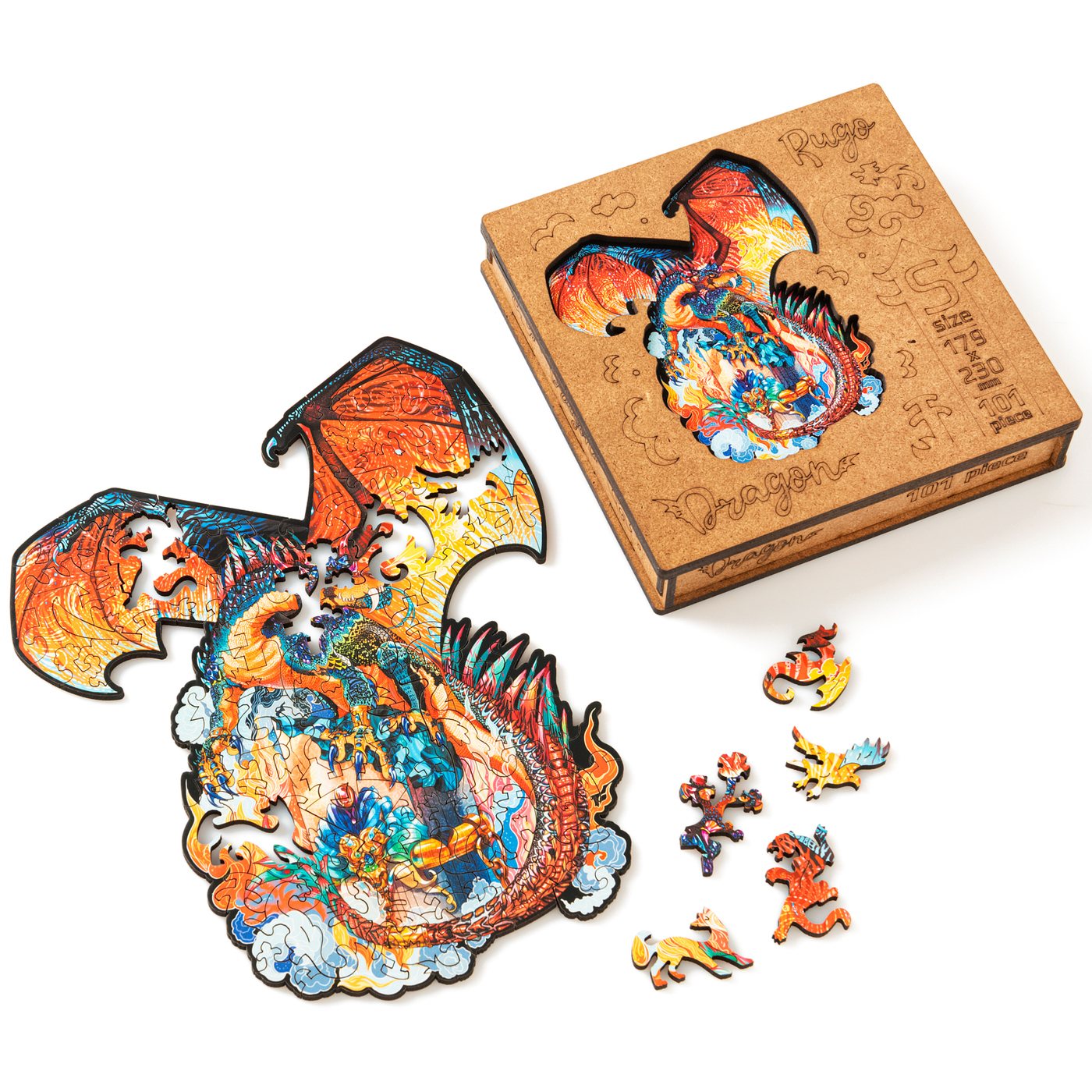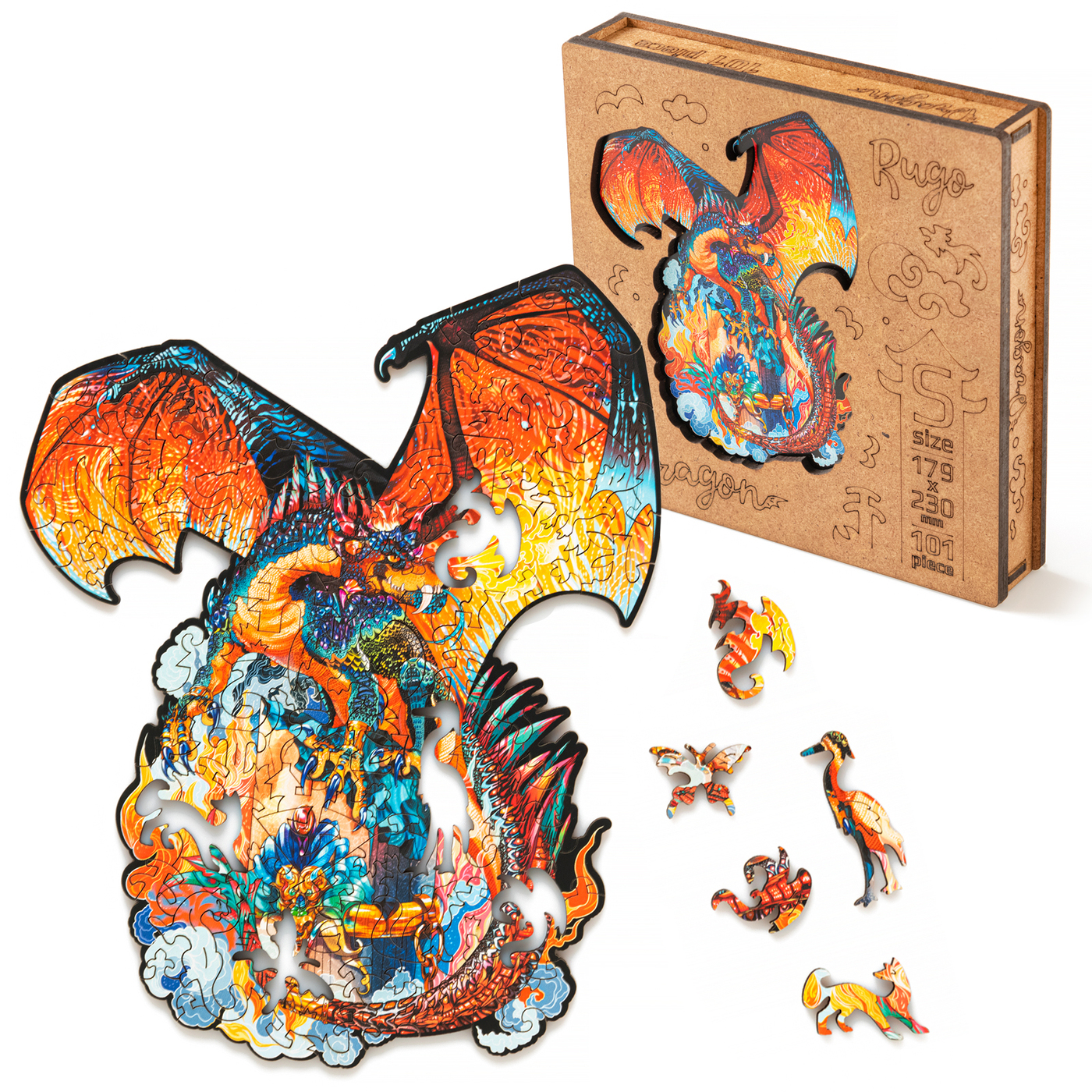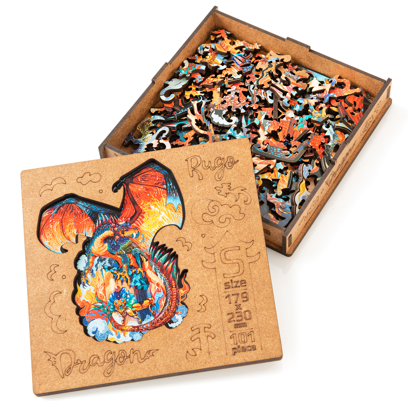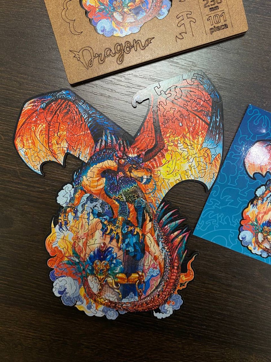 Деревянный пазл для детей и взрослых / Головоломка / Rugo "Дракон" 18х23 см, 101 уникальная деталь