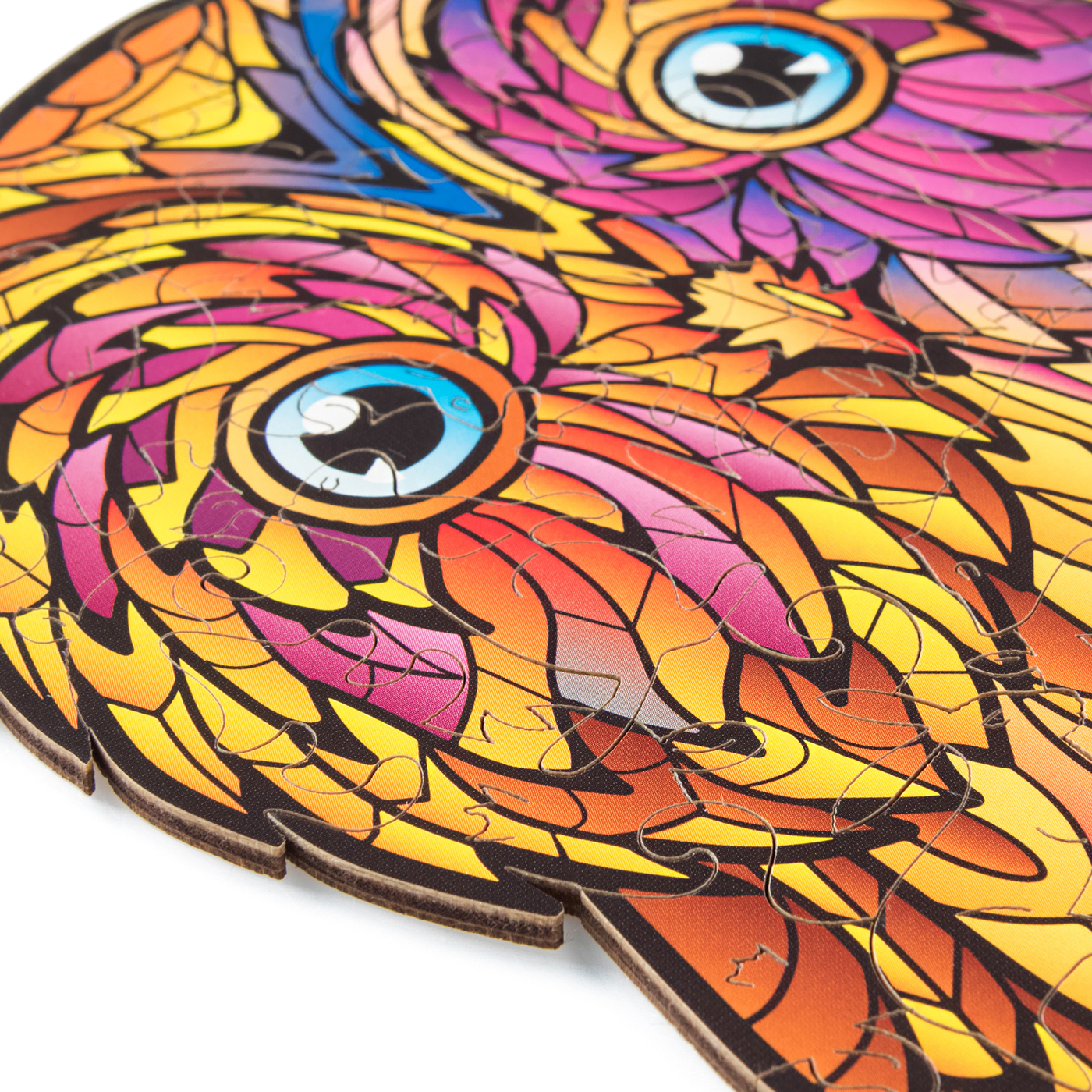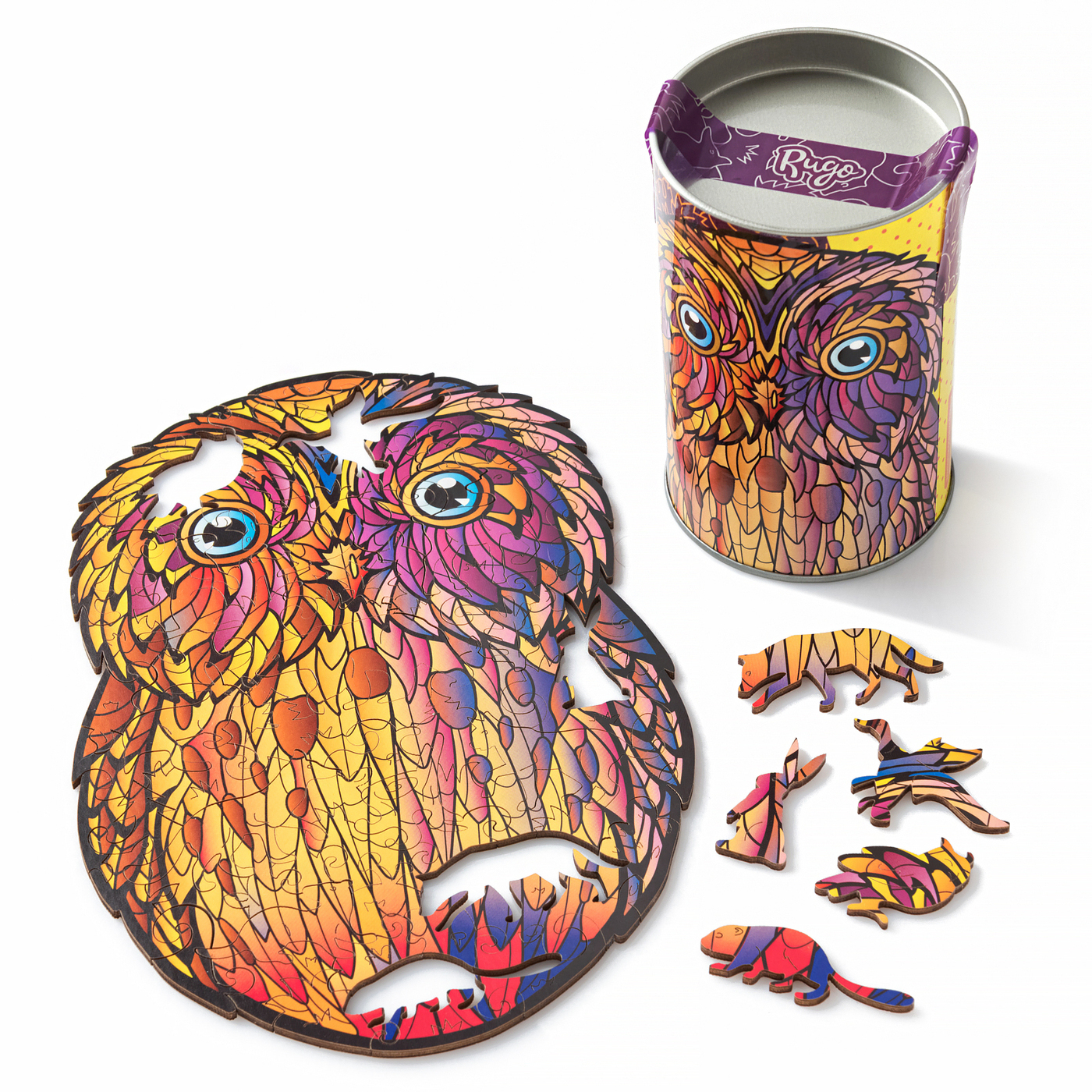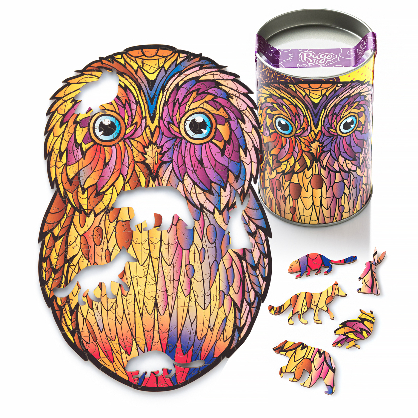 Пазл из дерева для детей и взрослых Rugo Сова 16х23 см, 84 детали в виде животных и растений