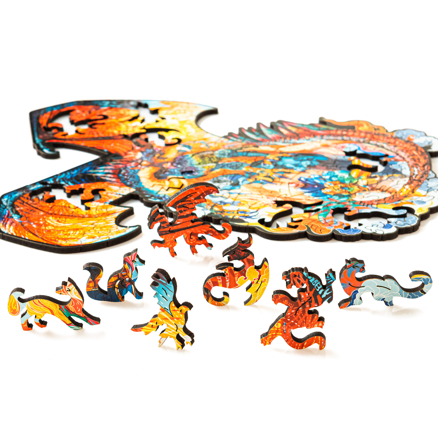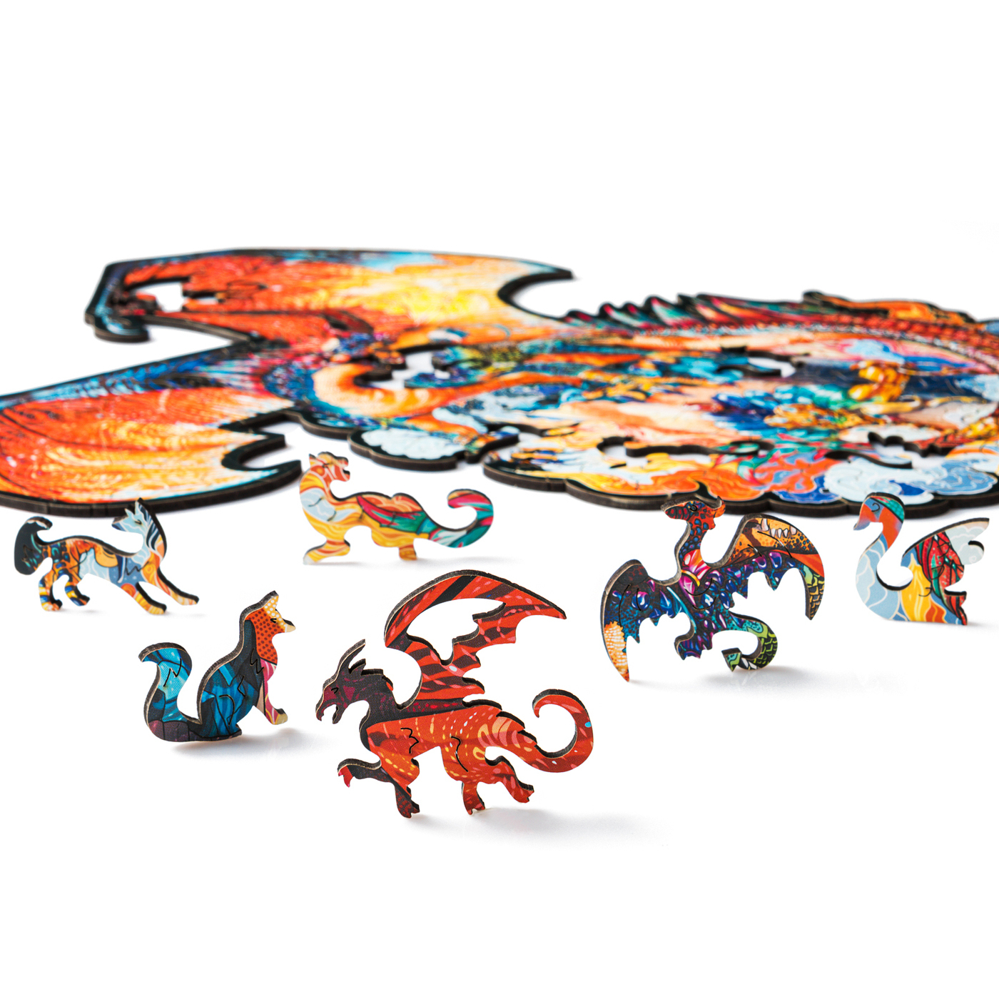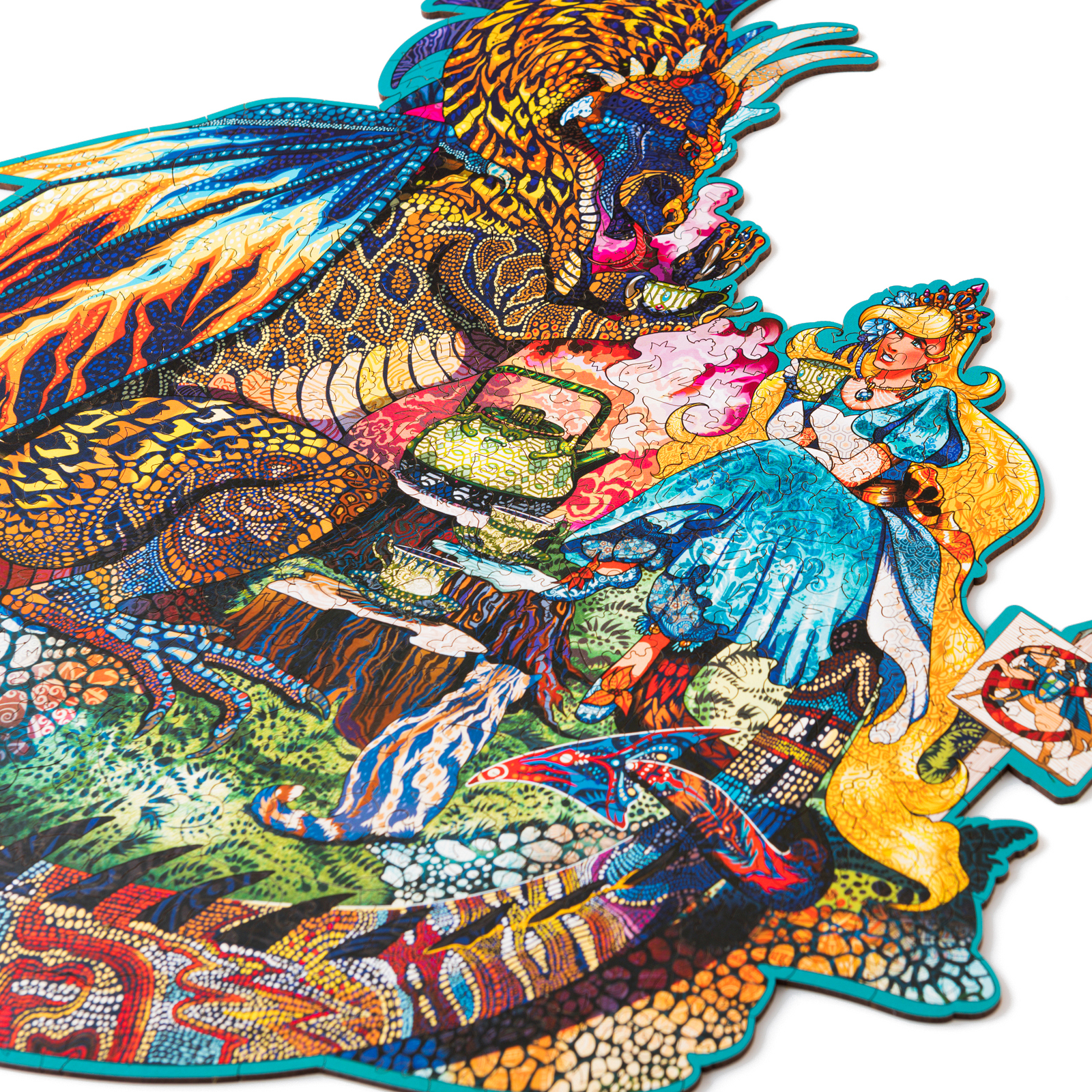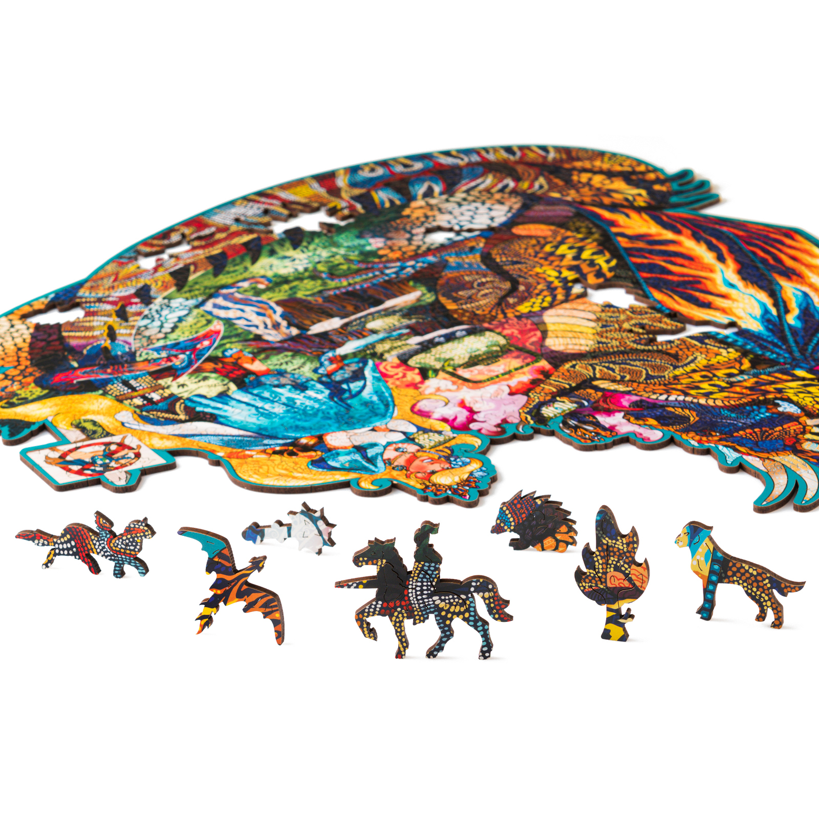Деревянный пазл для детей и взрослых Rugo "Дракон" 28х35 см, детали в виде животных и растений