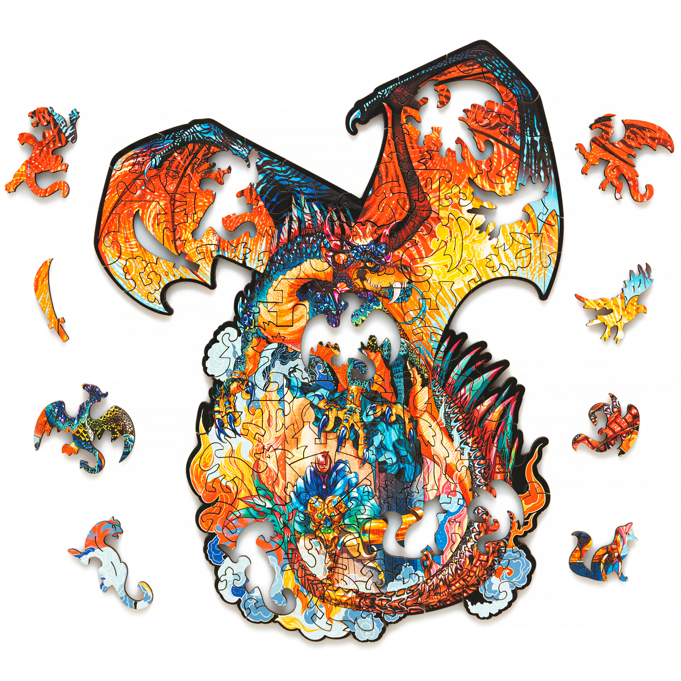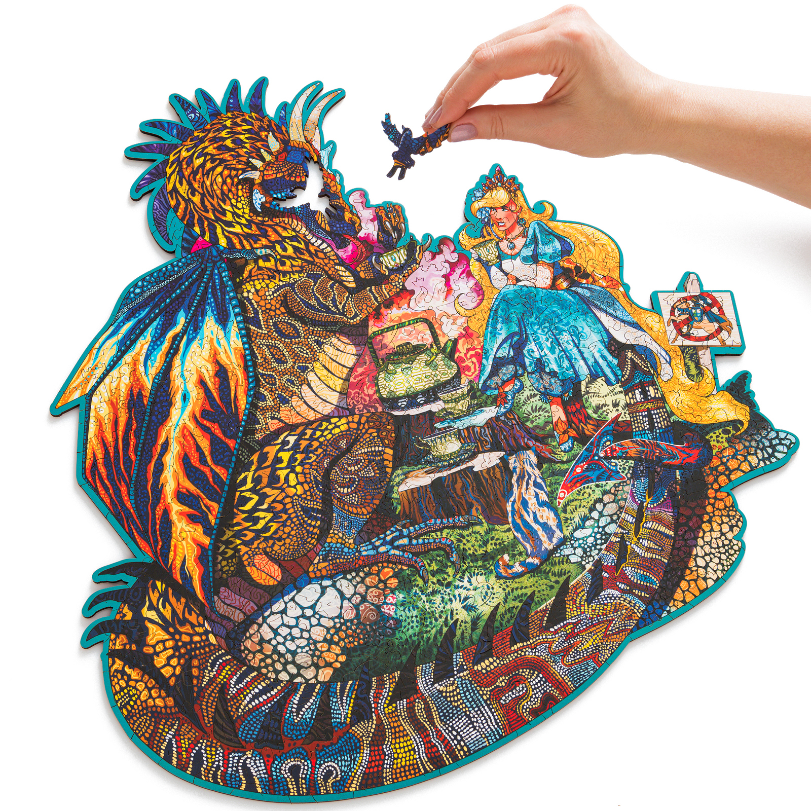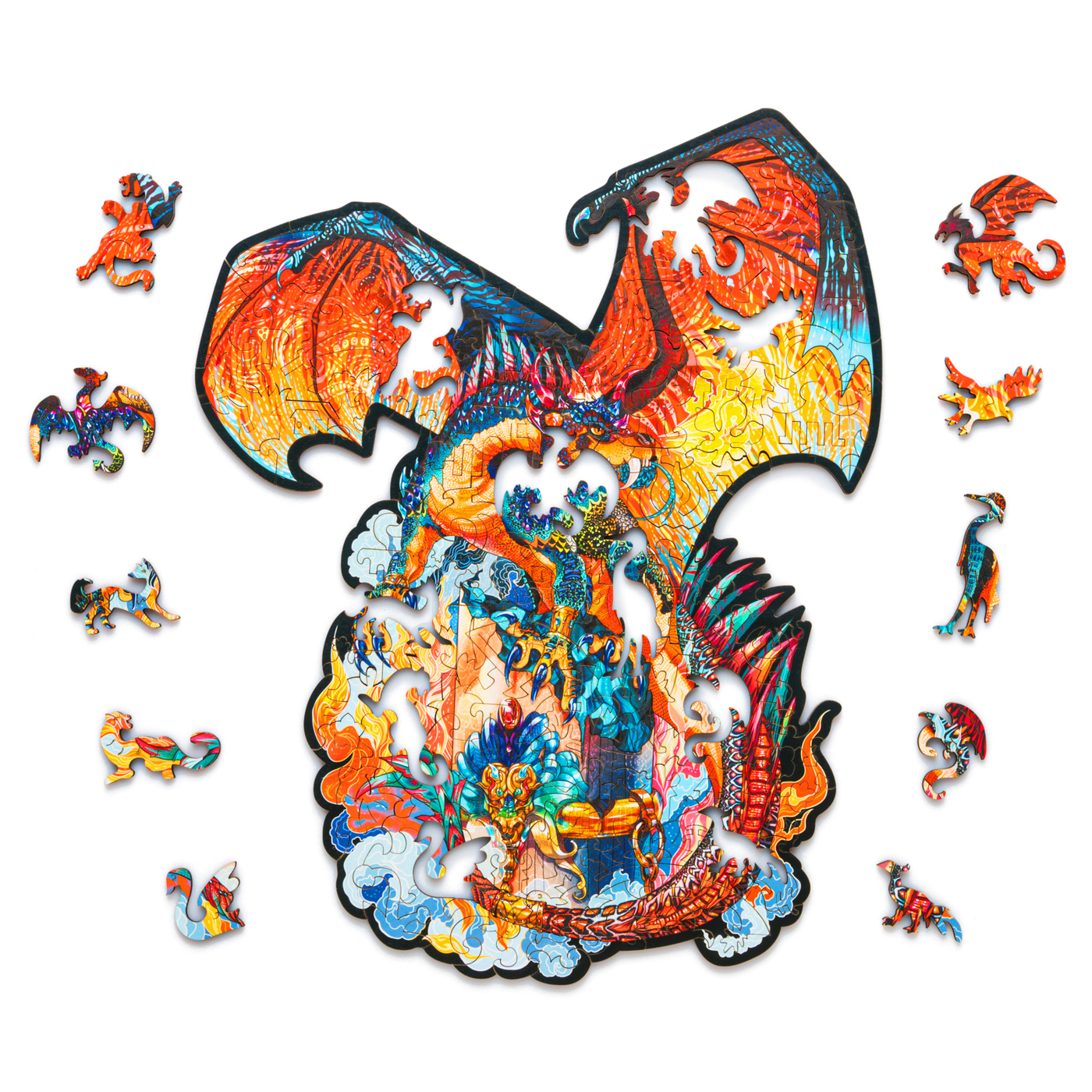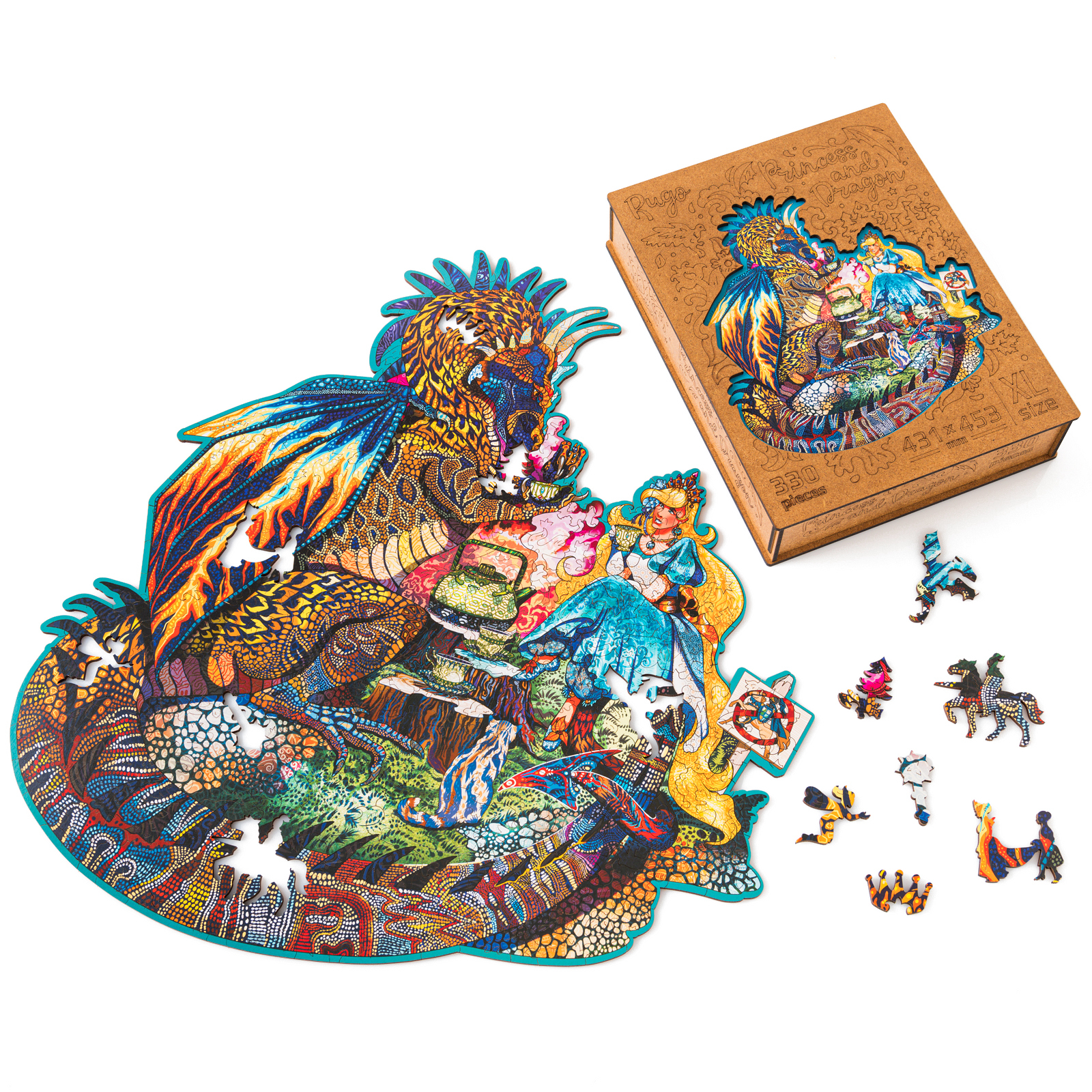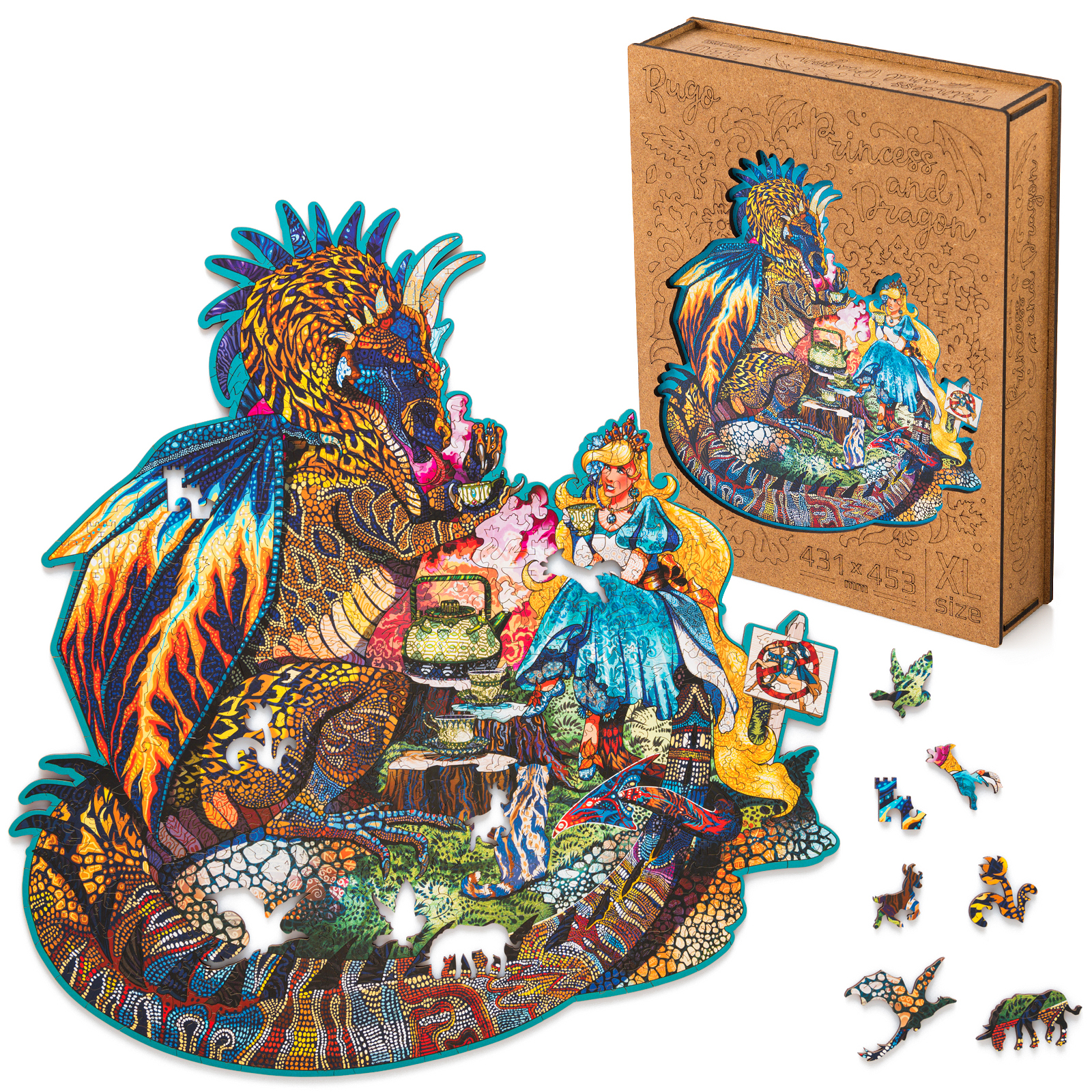 Деревянный пазл для детей и взрослых Rugo "Дракон" 28х35 см, детали в виде животных и растений