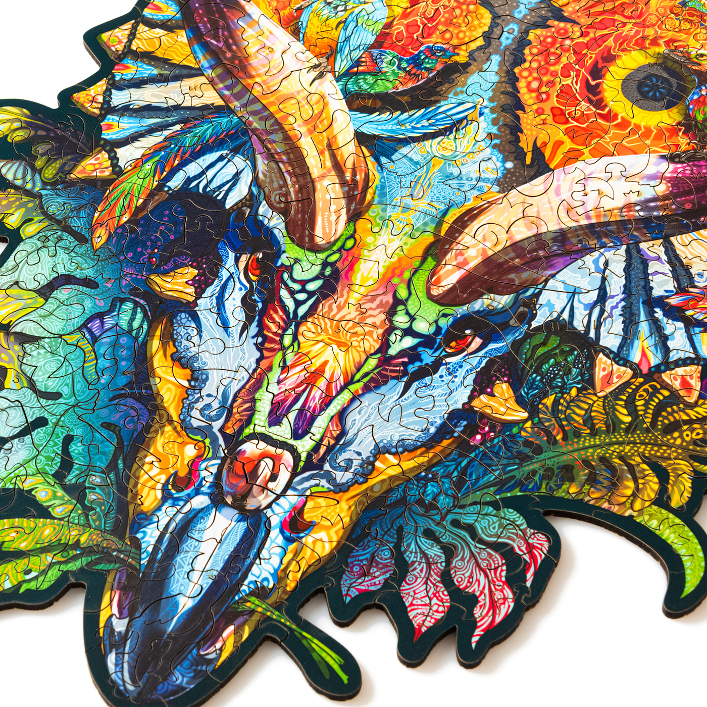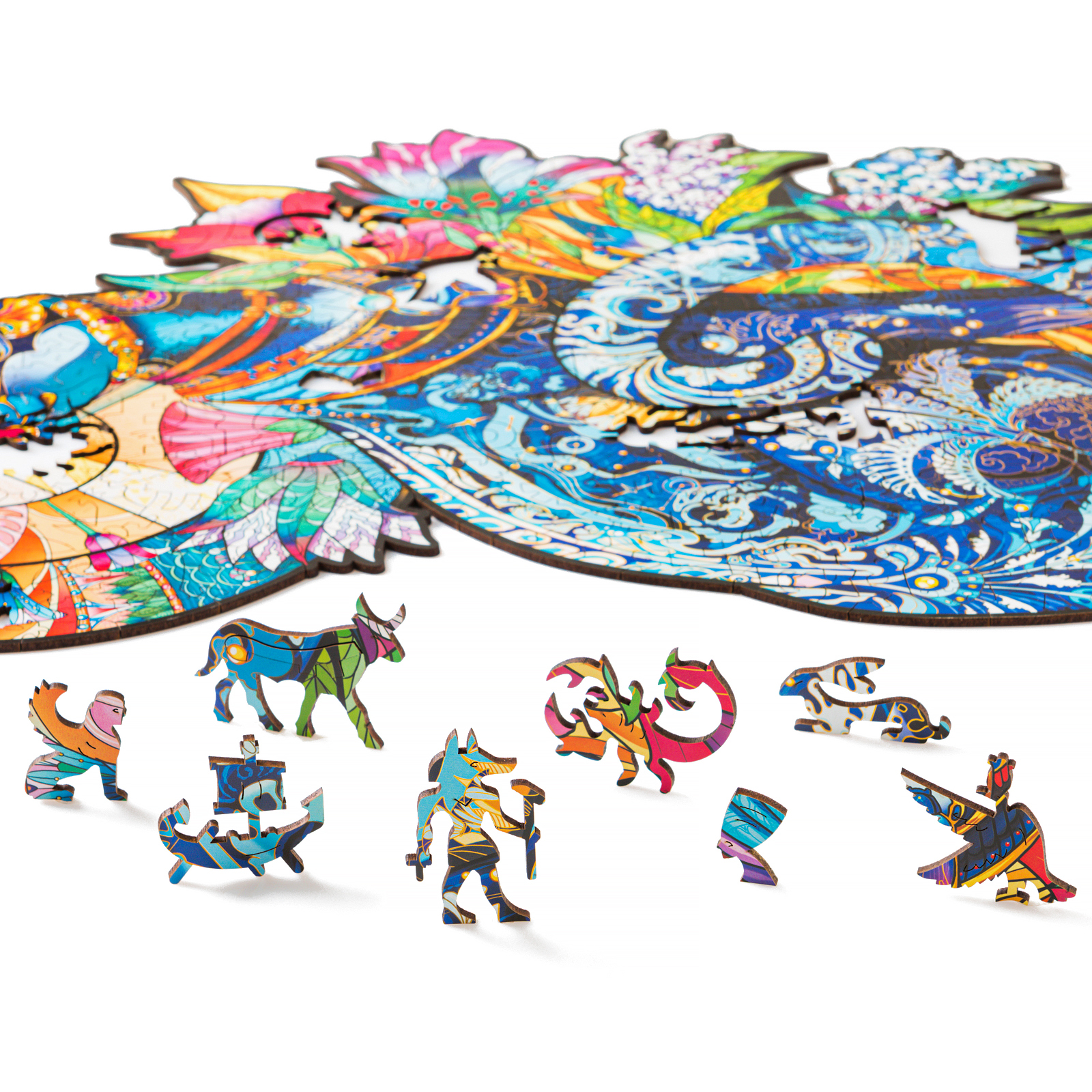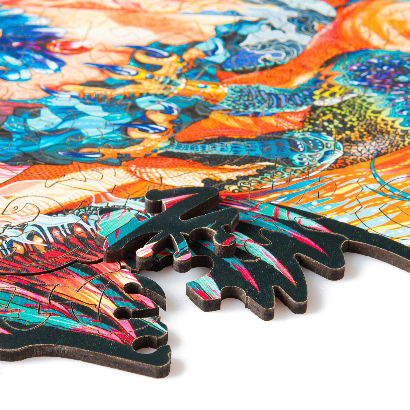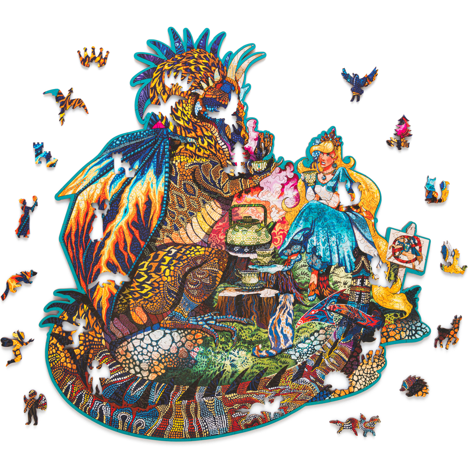 Деревянный пазл для детей и взрослых Rugo "Дракон" 28х35 см, детали в виде животных и растений