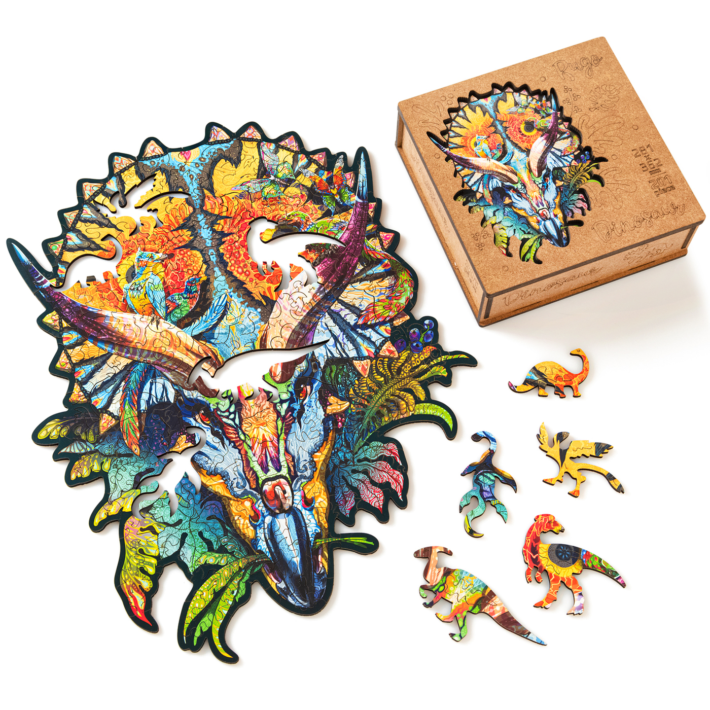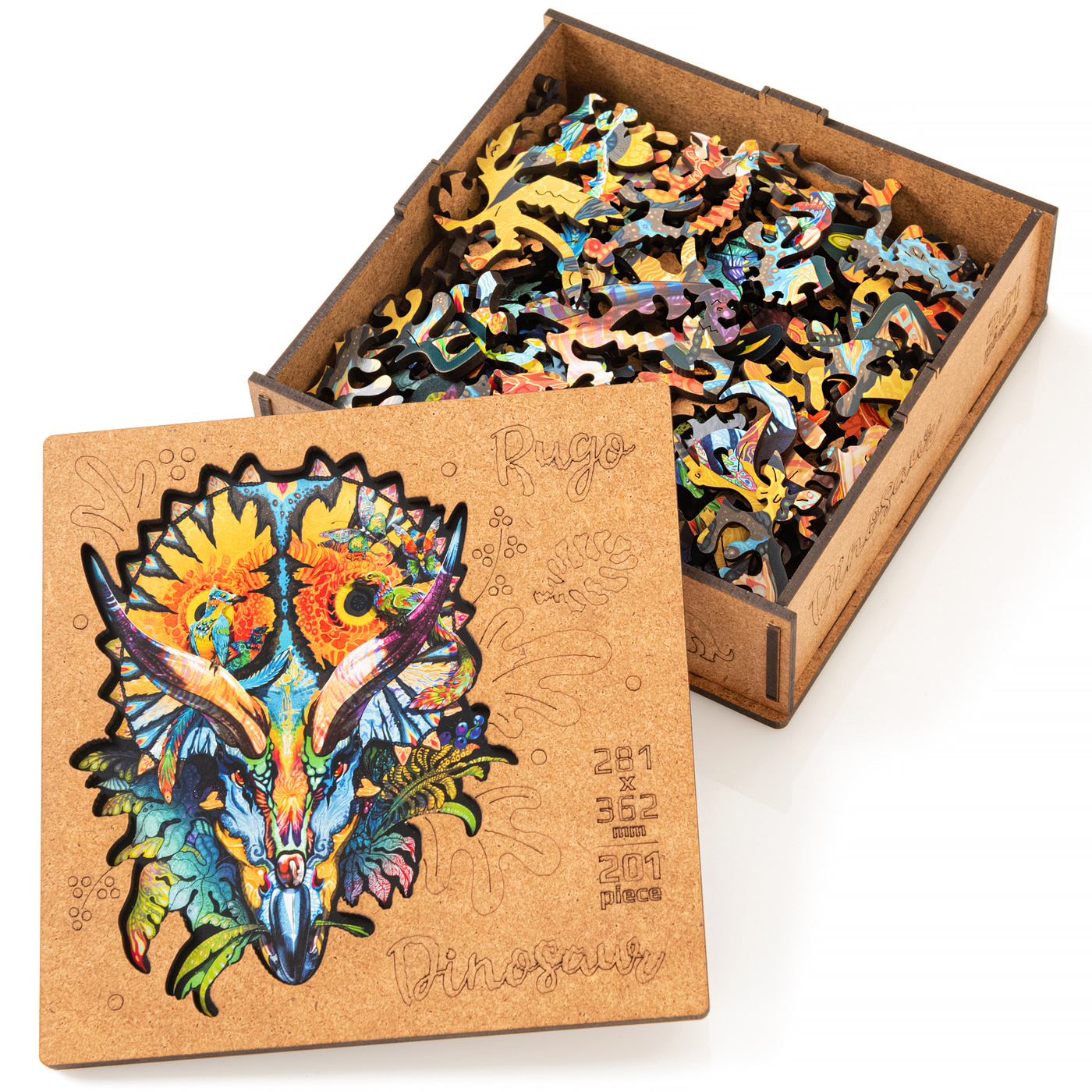 Деревянный пазл для детей и взрослых Rugo "Динозавр" 28х31 см, 201 уникальная деталь