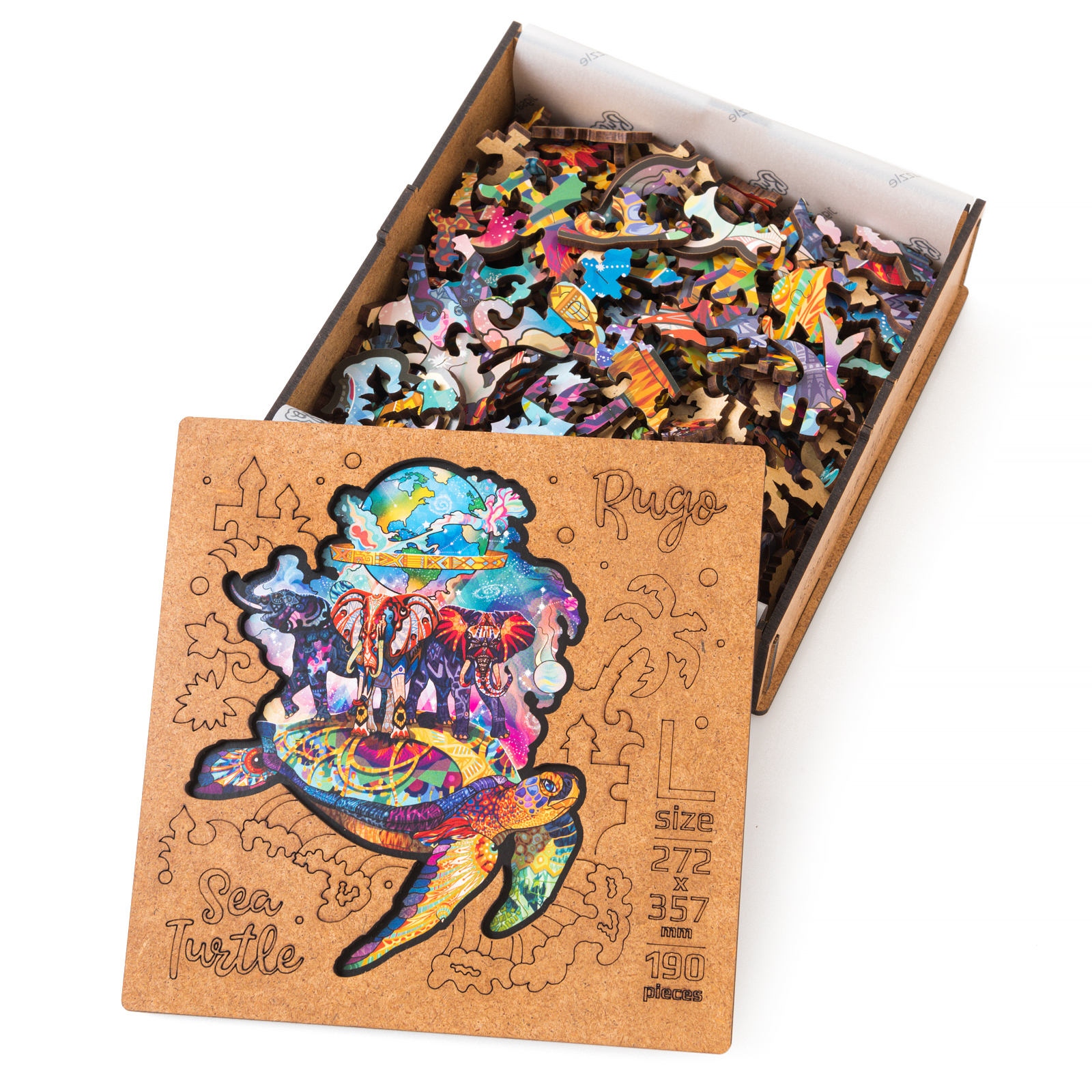 Деревянный пазл для детей и взрослых / Rugo "Древняя Черепаха" 27х36 см, 190 уникальных деталей