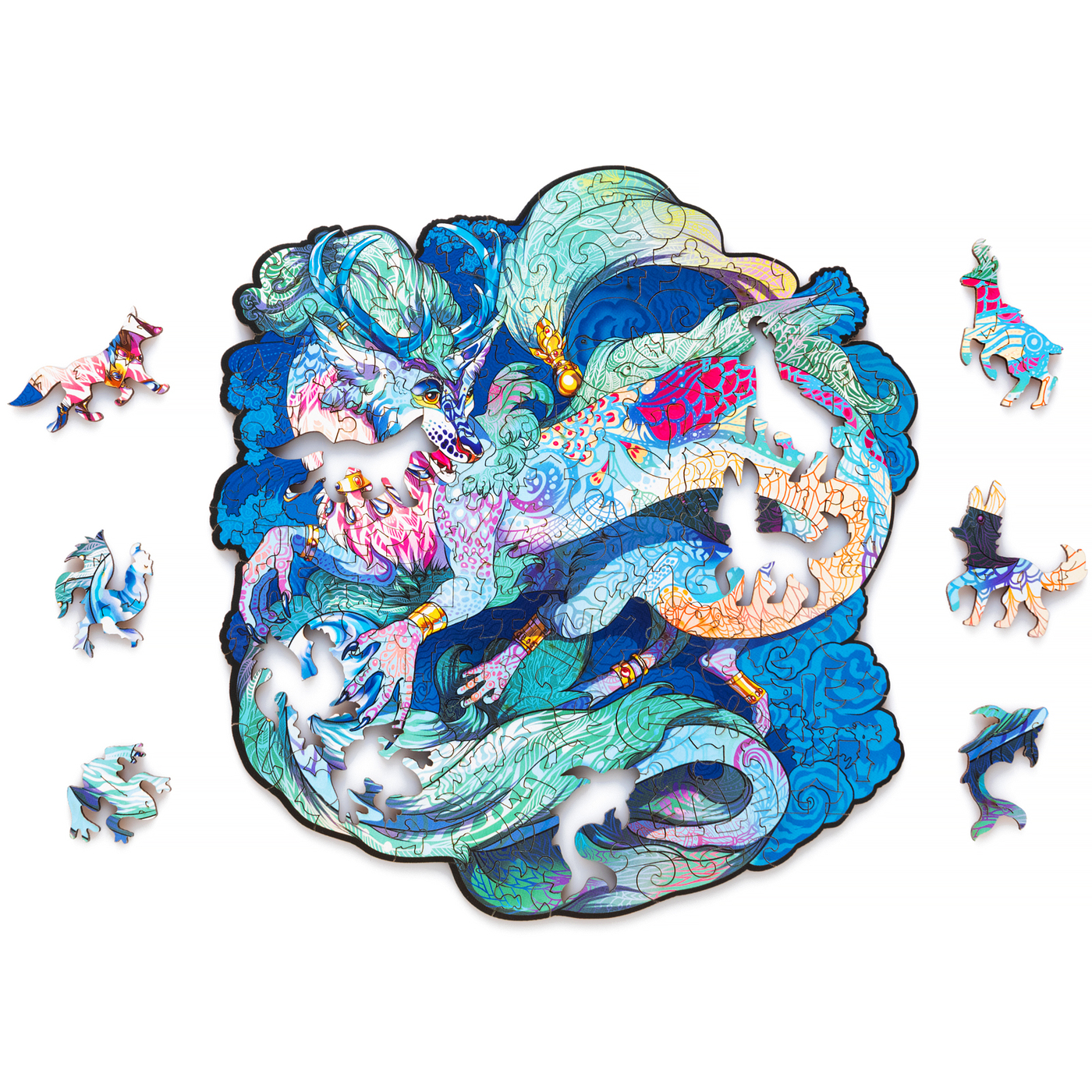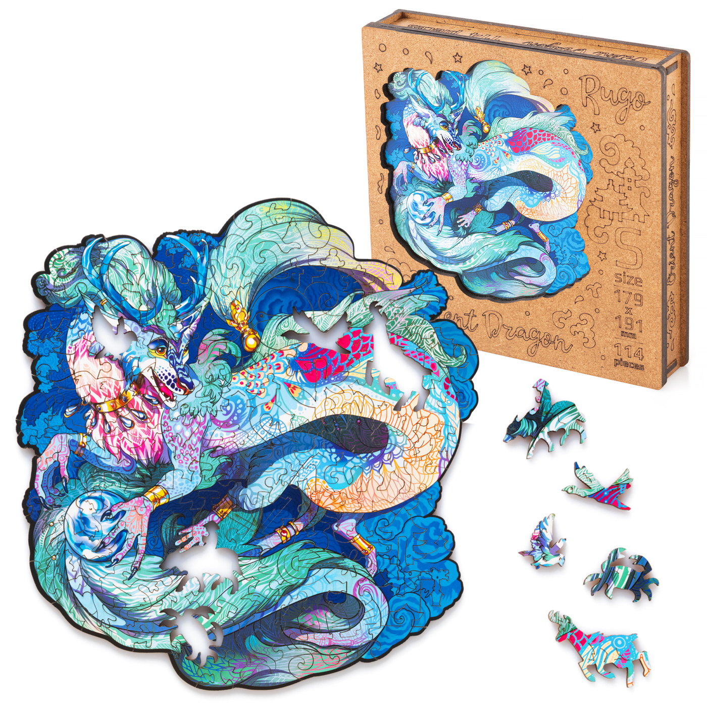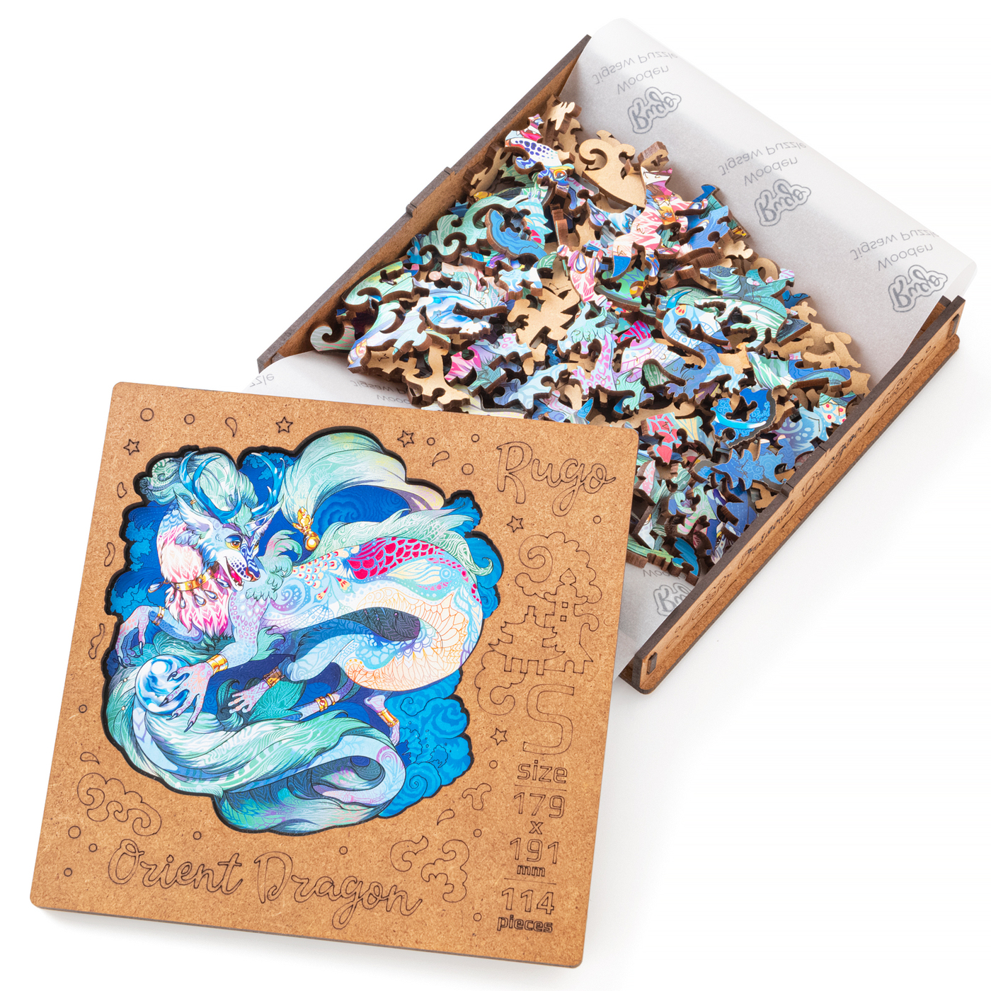 Деревянный пазл для детей и взрослых / Rugo "Восточный Дракон" 18х19 см, 114 уникальных деталей