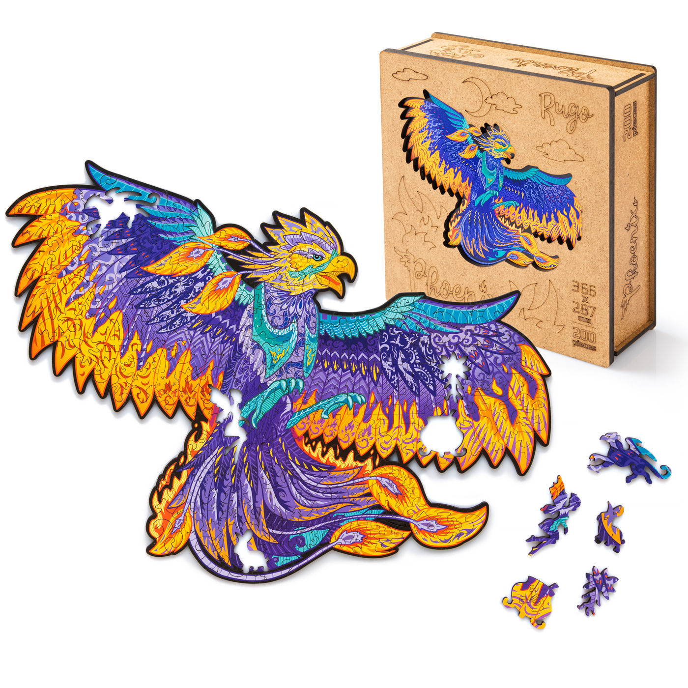 Фигурный пазл для детей и взрослых Rugo "Феникс" 29х37см, 200 деталей в виде животных и растений