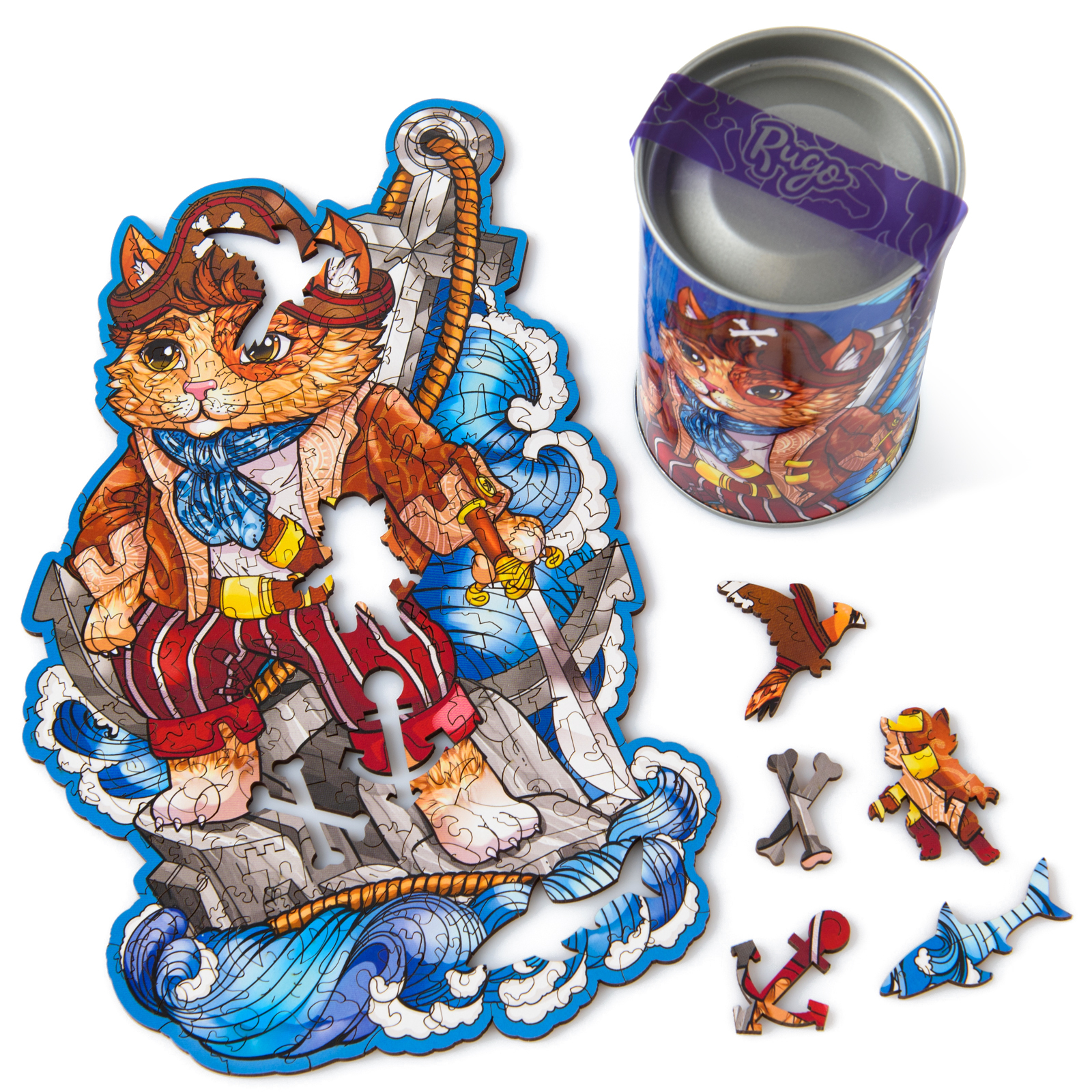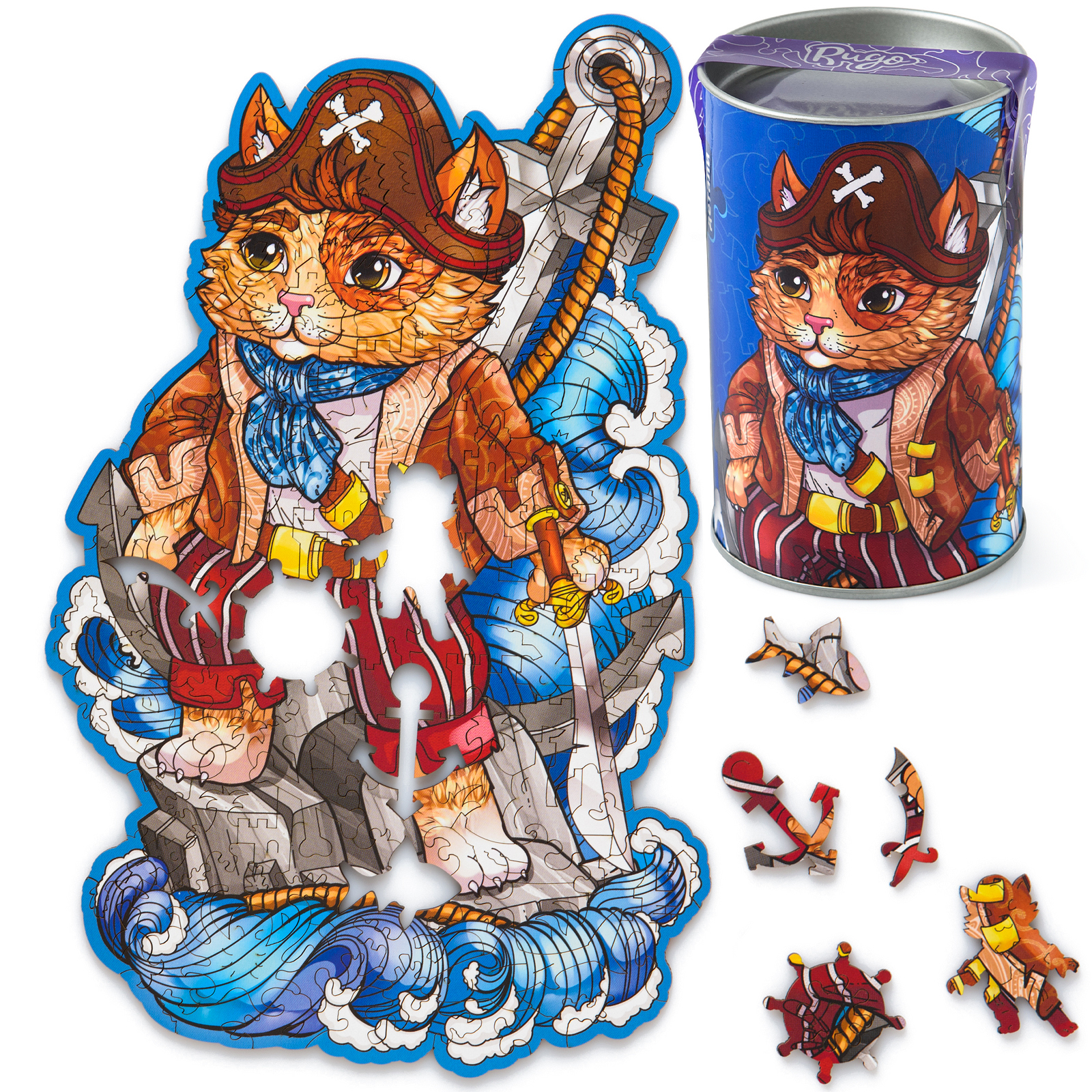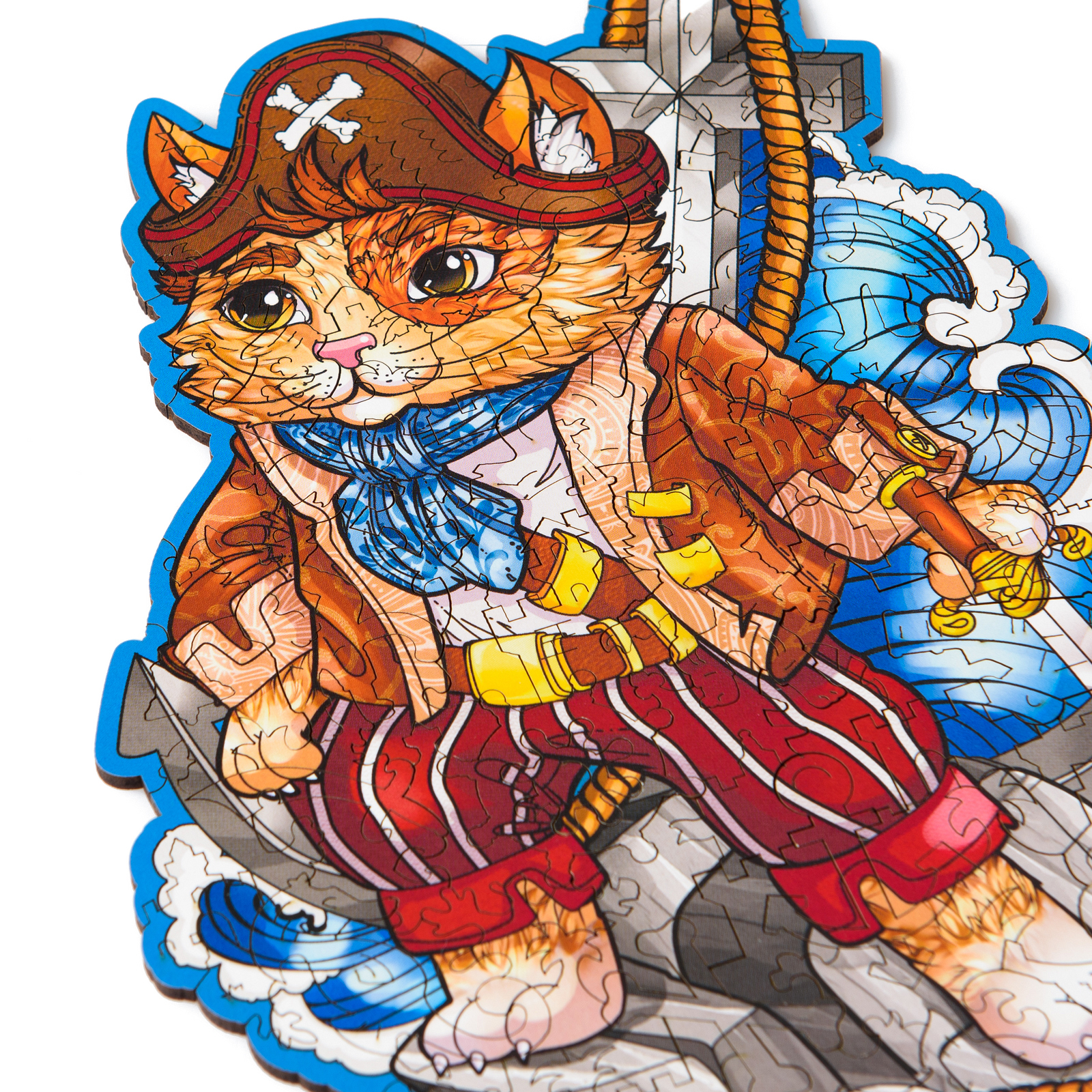 Пазл из дерева для детей и взрослых Rugo Кот Пират 17х27 см, 123 детали в виде животных и растений