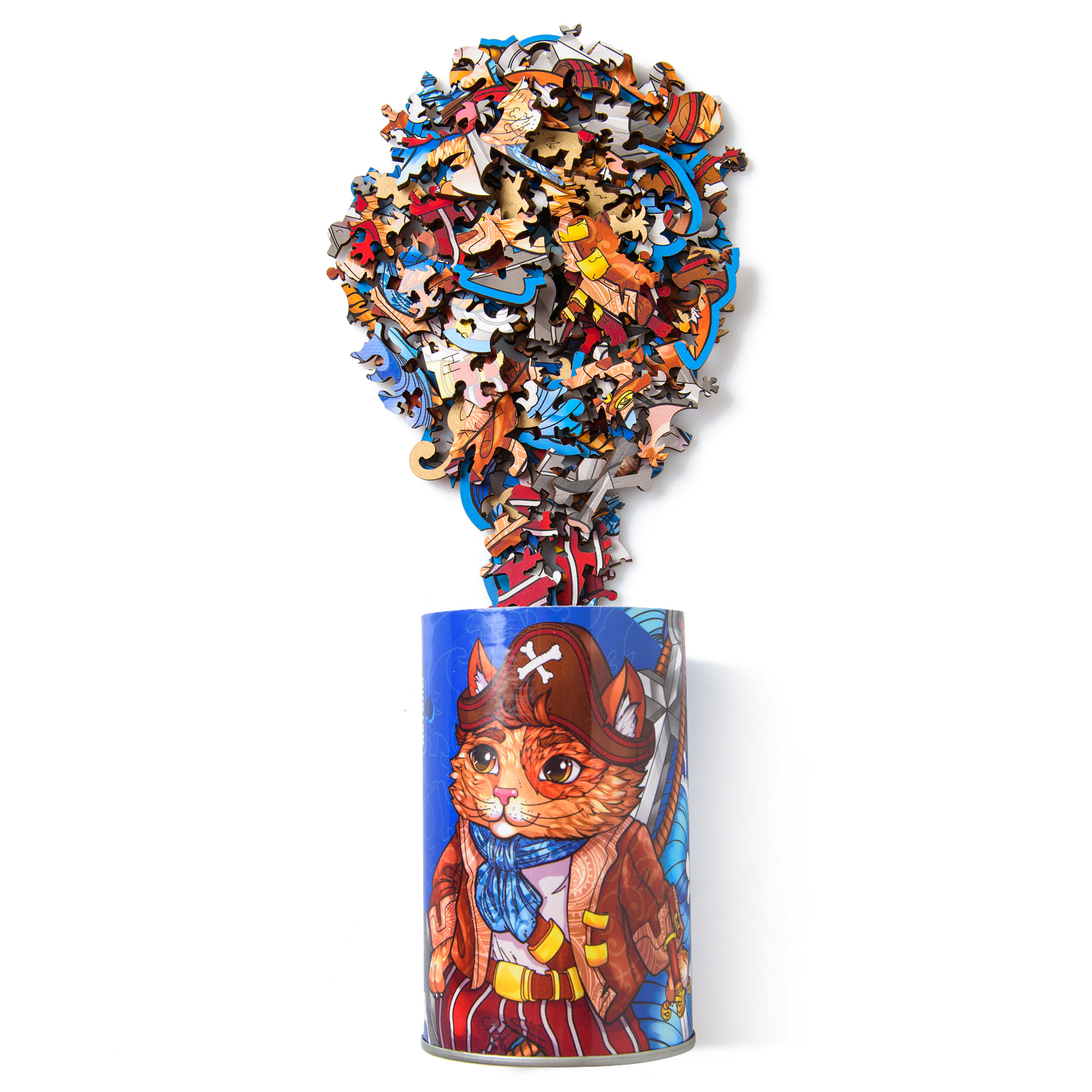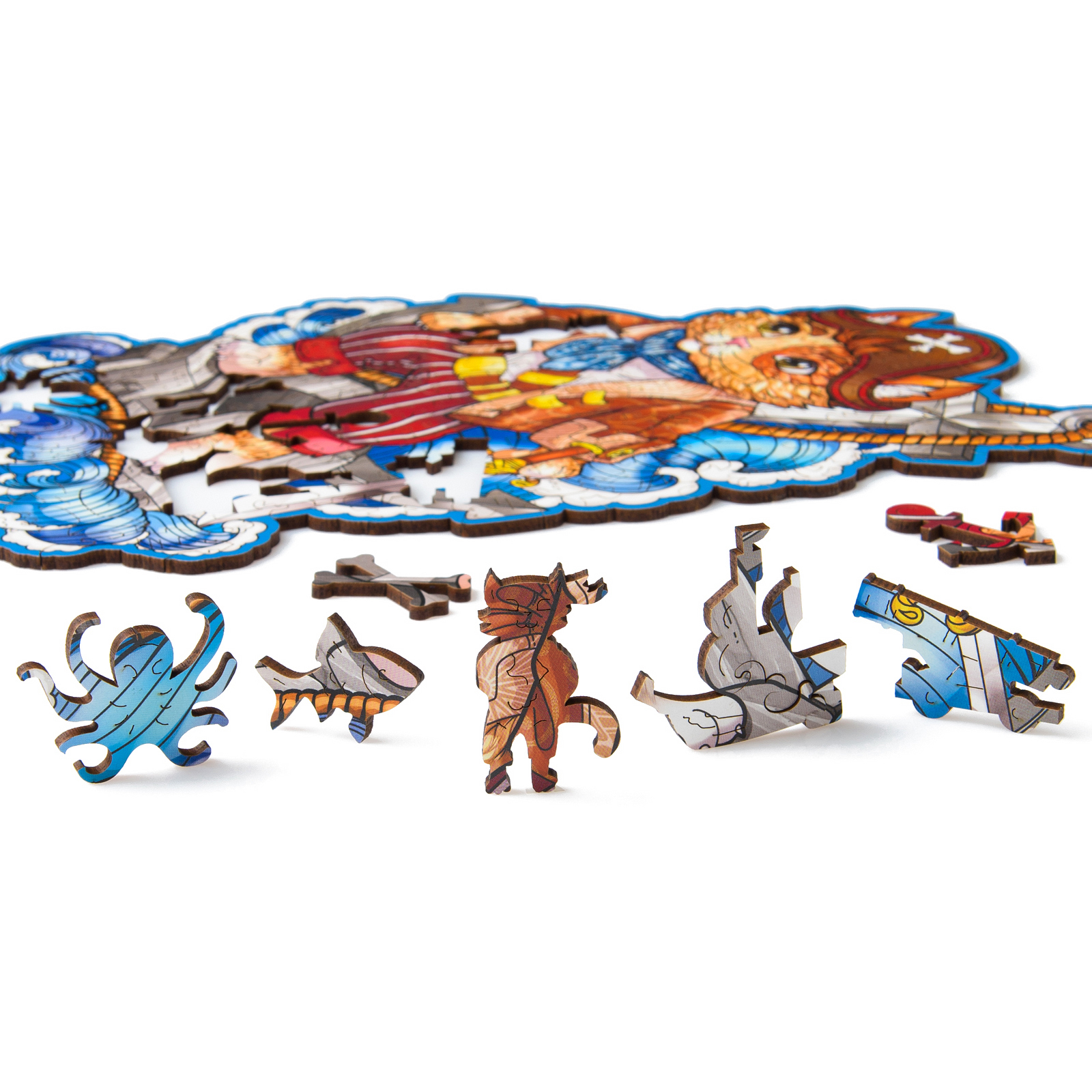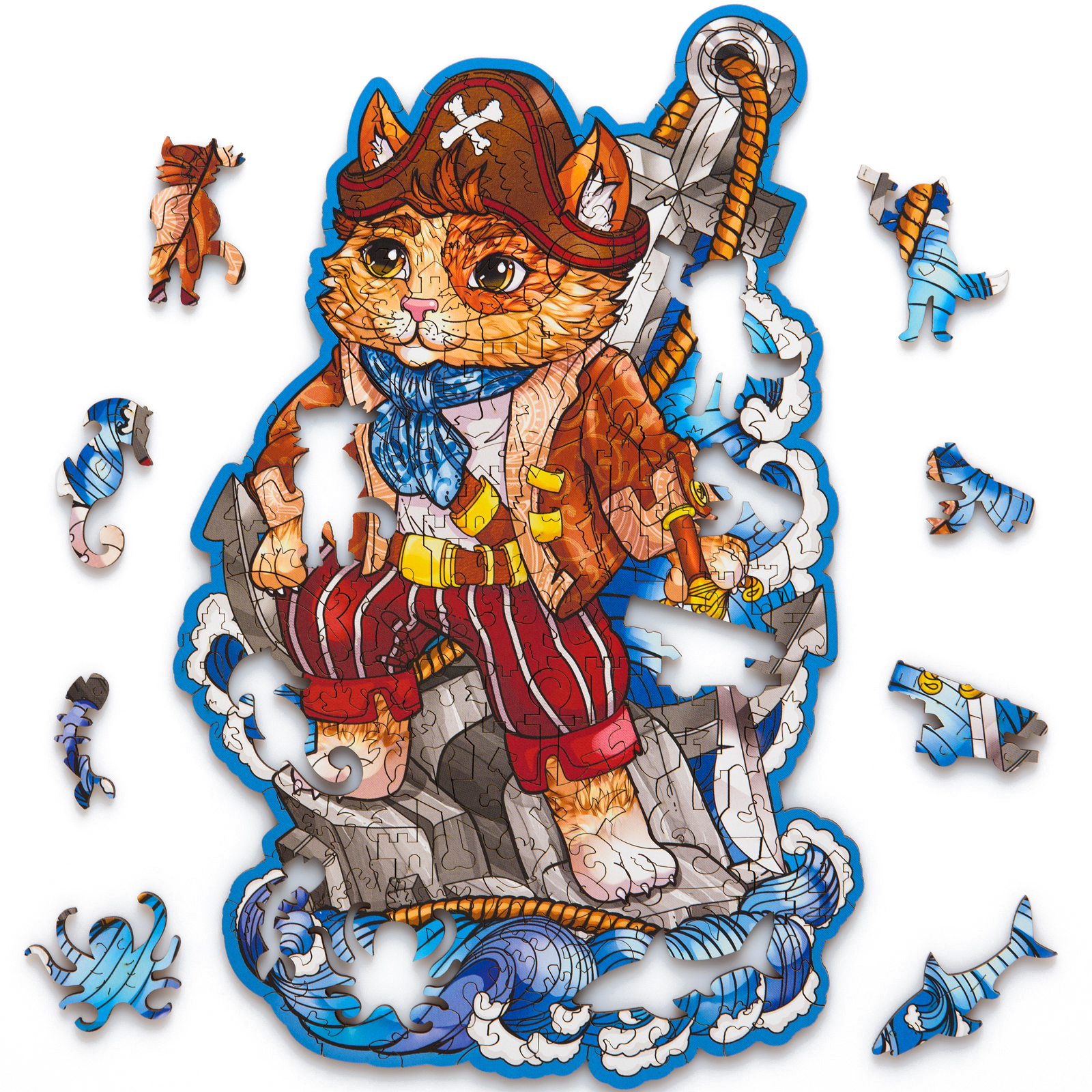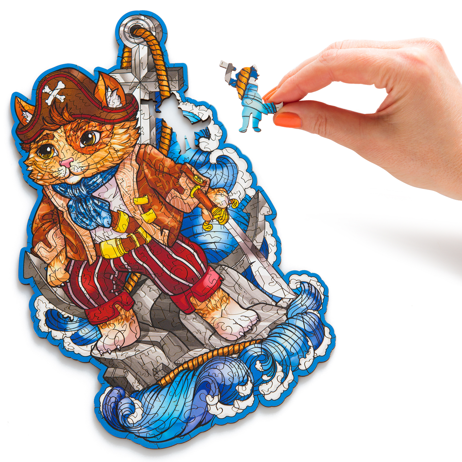 Пазл из дерева для детей и взрослых Rugo Кот Пират 17х27 см, 123 детали в виде животных и растений