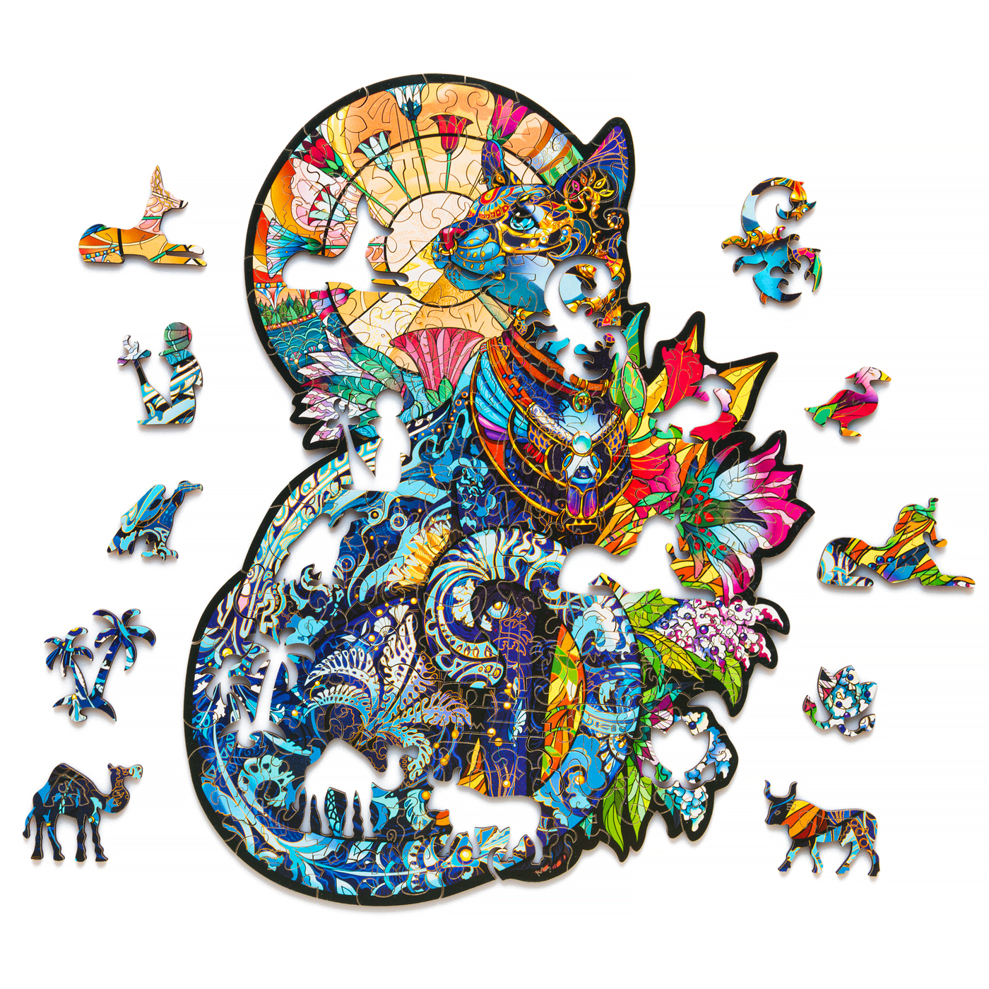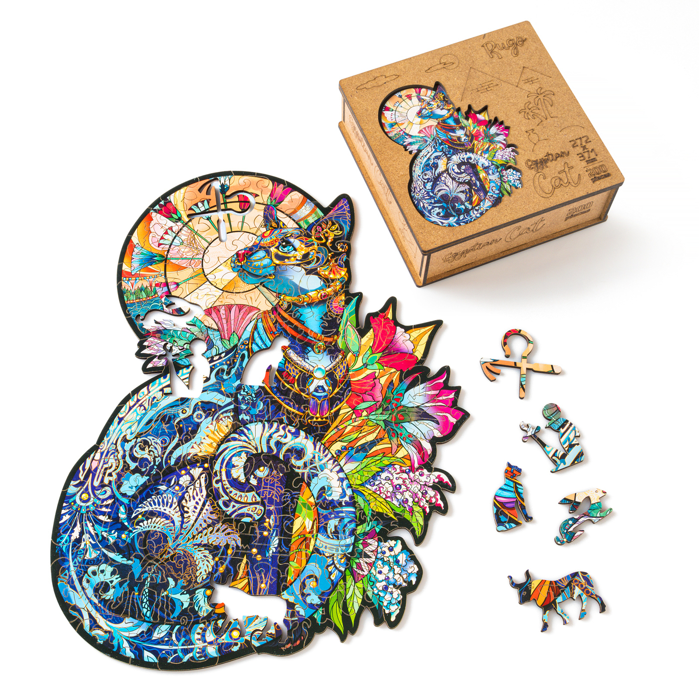 Пазл из дерева для детей и взрослых Rugo "Кошка" 27х37 см, детали в виде животных и растений